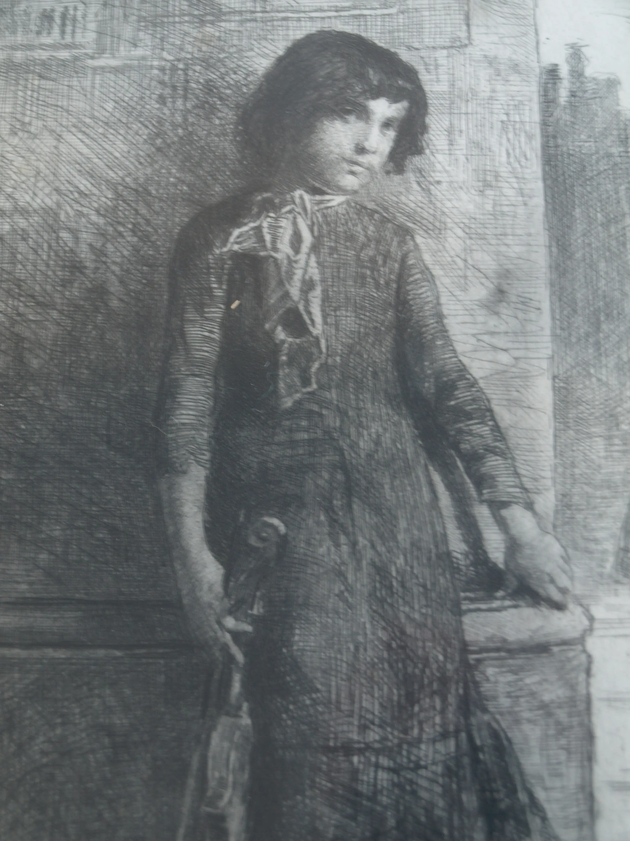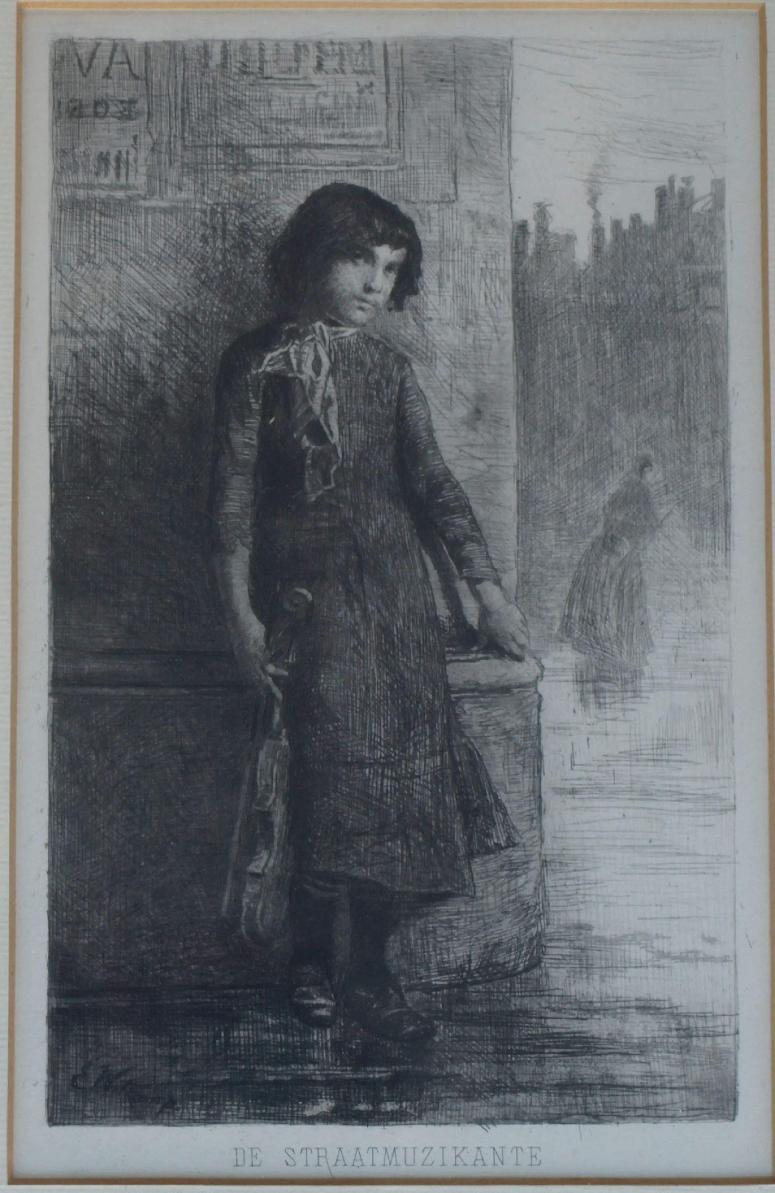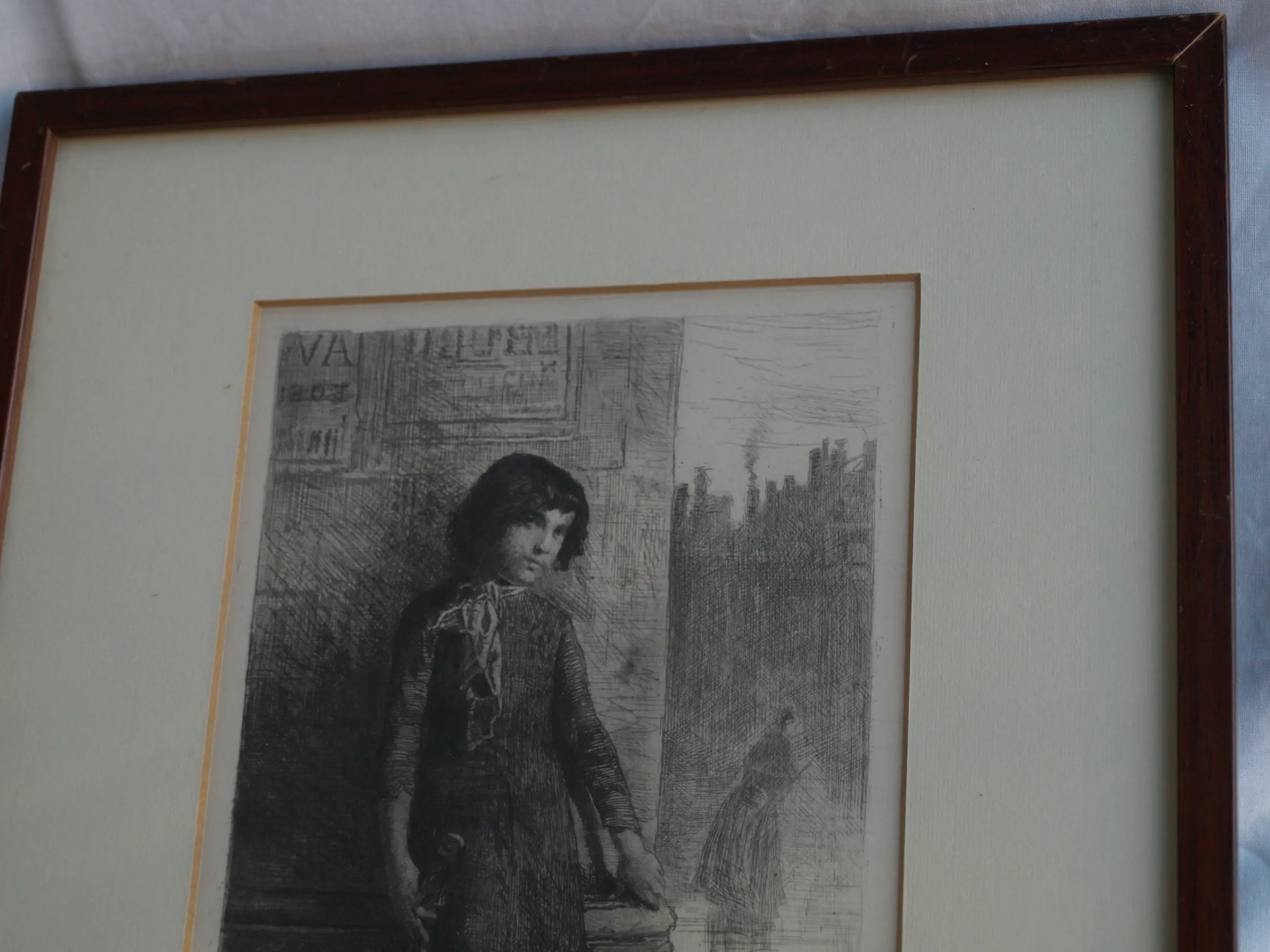 Een ingelijste ets van de Nederlandse kunstenaar Ernst Witkamp (1854-1897).