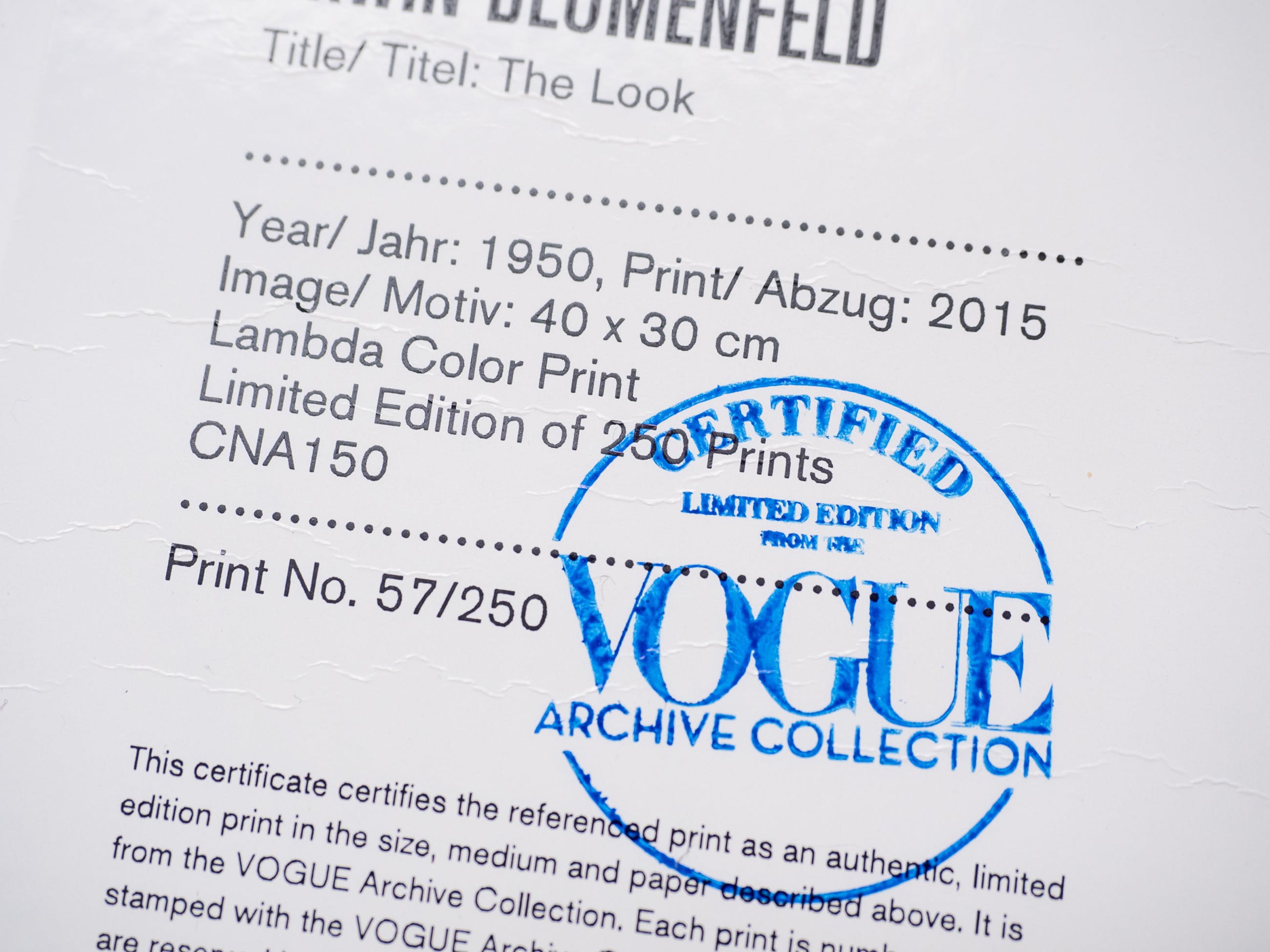 Formaat: 44cm x 36cm Lambda Color Print op Fujicolor Crystal Archive photo paper Nummer 57 van 250 Authorized Vogue/Condé Nast Verlag print Afgedrukt in 2014 door Whitewall in opdracht van galerij Lumas Zeer goede staat, nooit ingelijst of opgehangen Rechstreeks aangekocht in de galerij, originele factuur beschikbaar ter inzage (of als kopie)