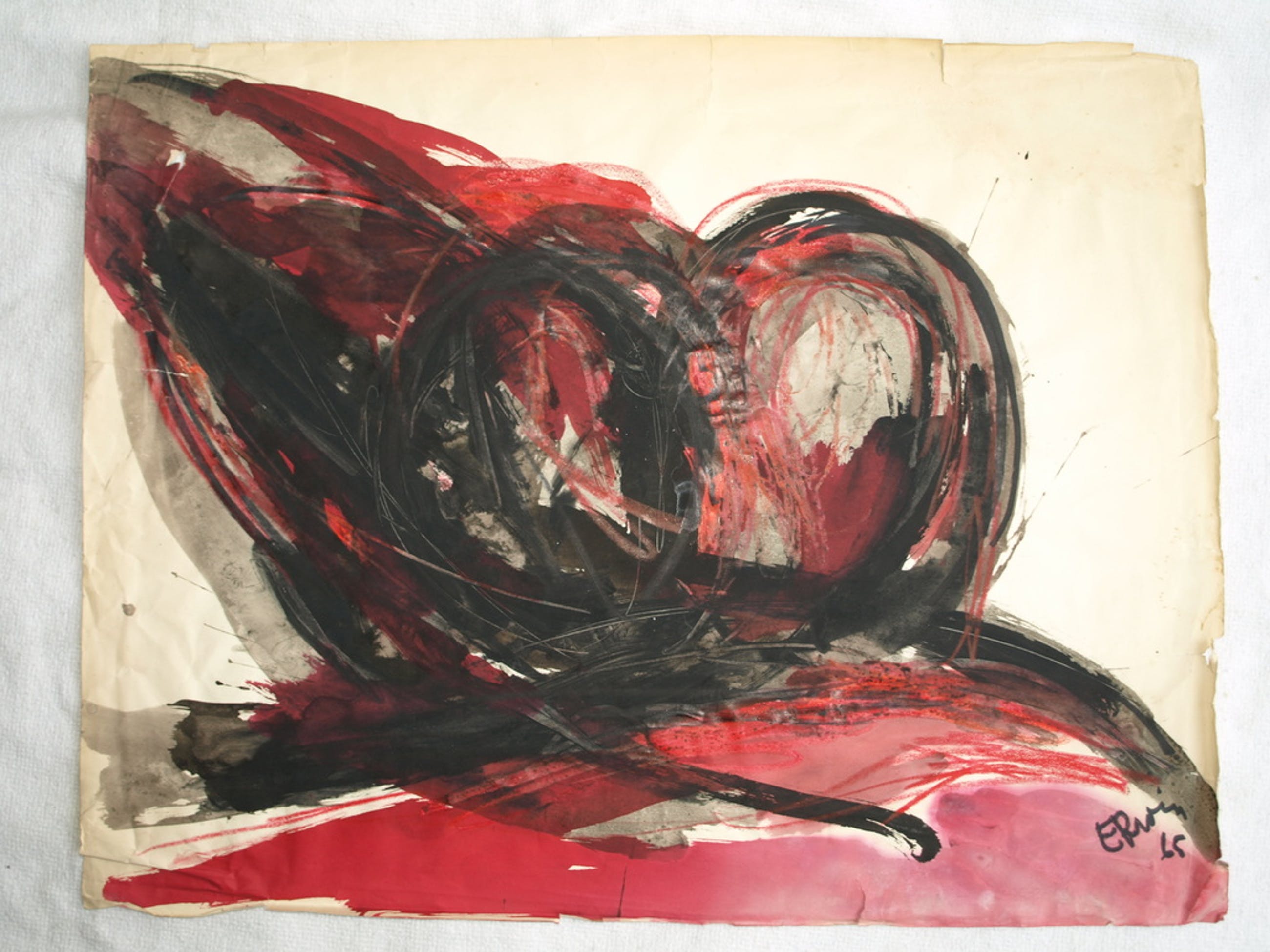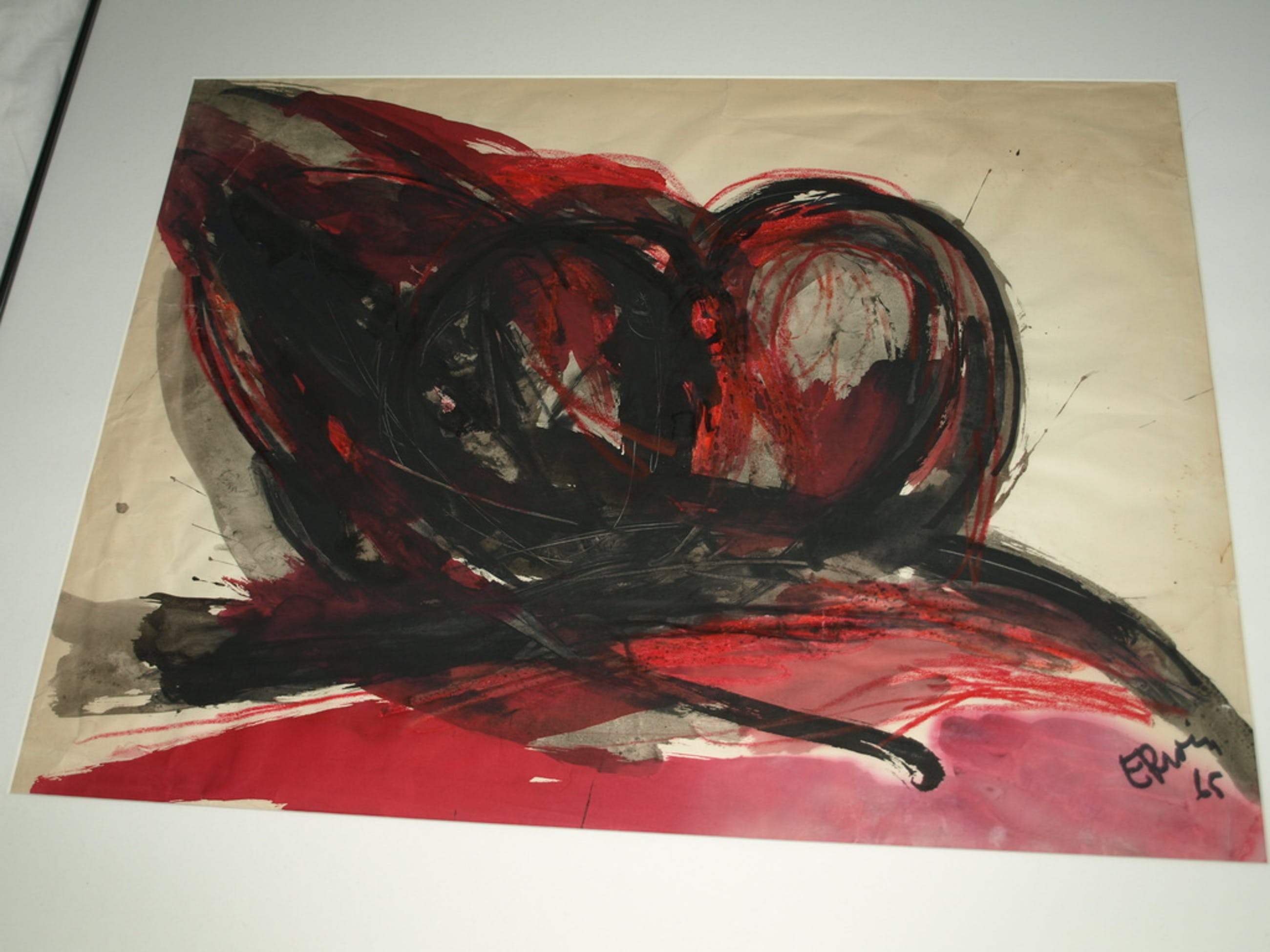 Techniek: Gemengde techniek (krijt en verf) op papier.
