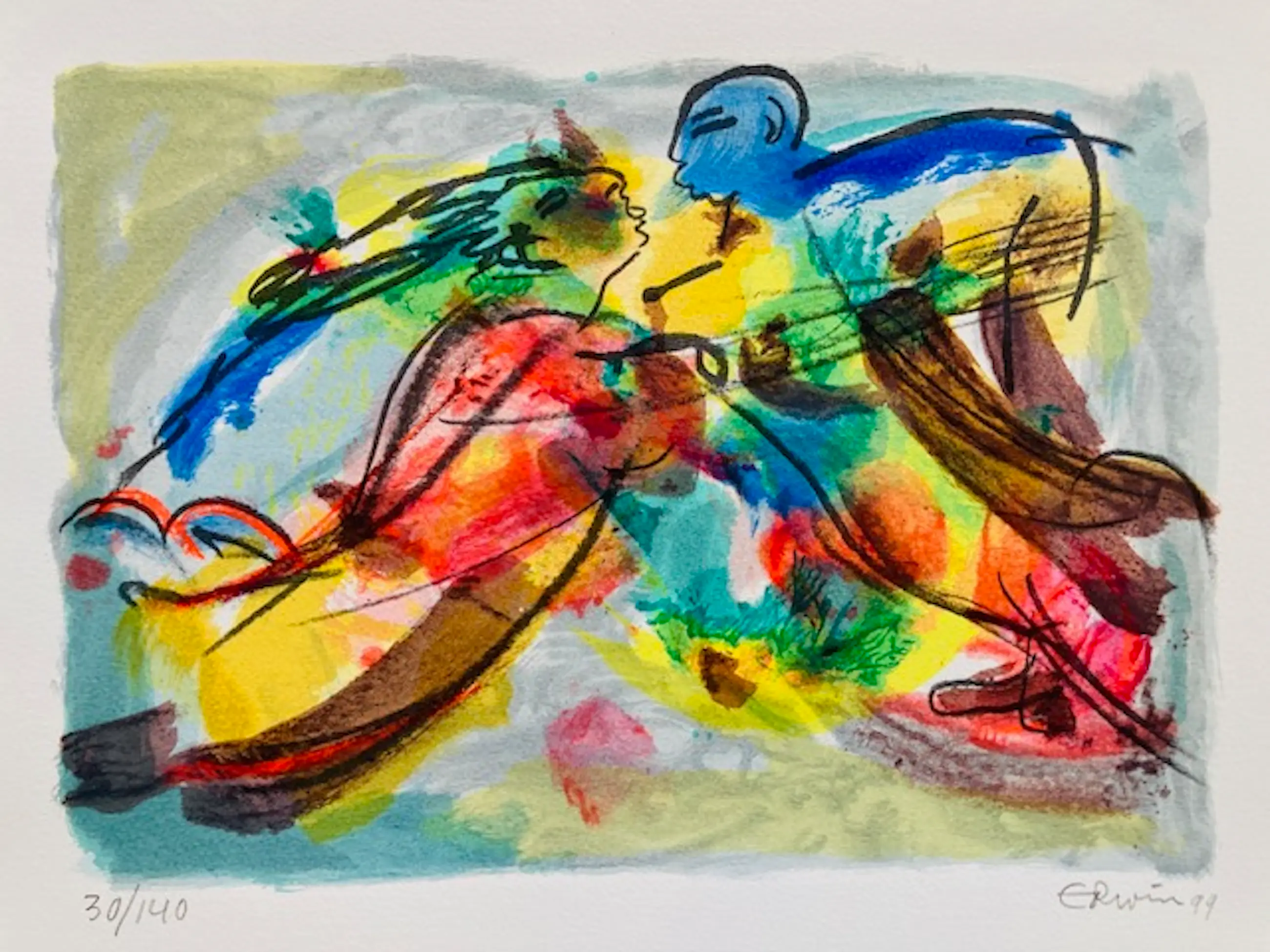 Kleurrijke zeefdruk van de Surinaamse kunstenaar Erwin Jules de Vries in zeer goede staat. Het werk is gesigneerd en genummerd. U kunt het werk vooraf komen bekijken in de schatkamer van galerie Rotor in Gorinchem of na aankoop ophalen. Het werk kan ook verzonden worden via aangetekende post. Ook kunnen wij ondertussen uw inlijsting verzorgen. De nummering op de foto kan afwijken ivm onze grote collectie. De beschreven nummering is de juiste.