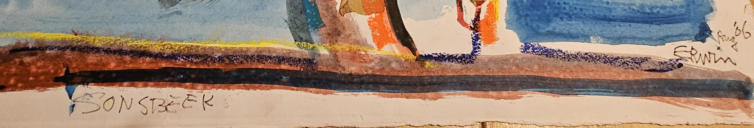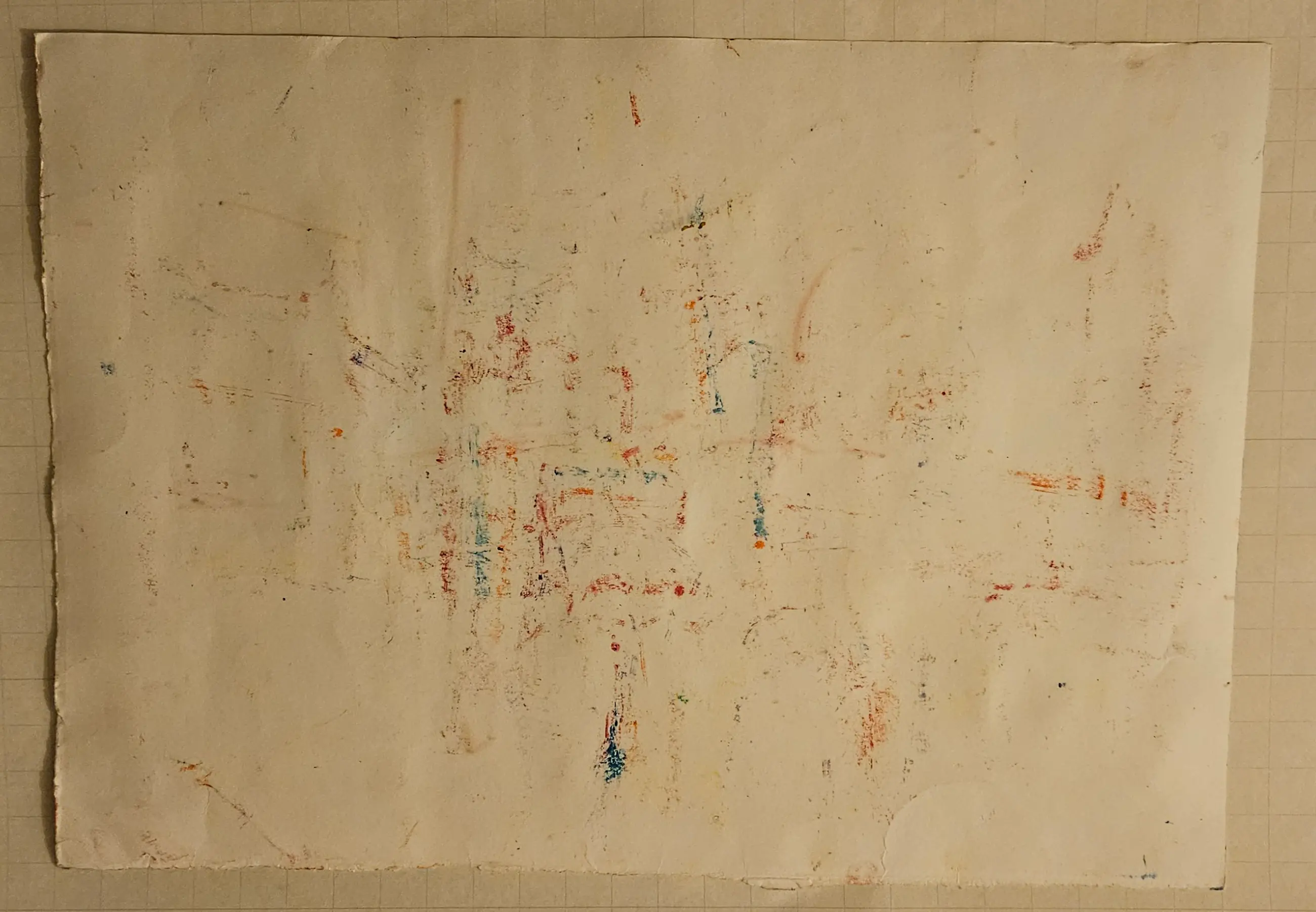 Abstracte boom, aquarel/waskrijt/gekleurd papier. Atelierwerk, nooit gepubliceerd.