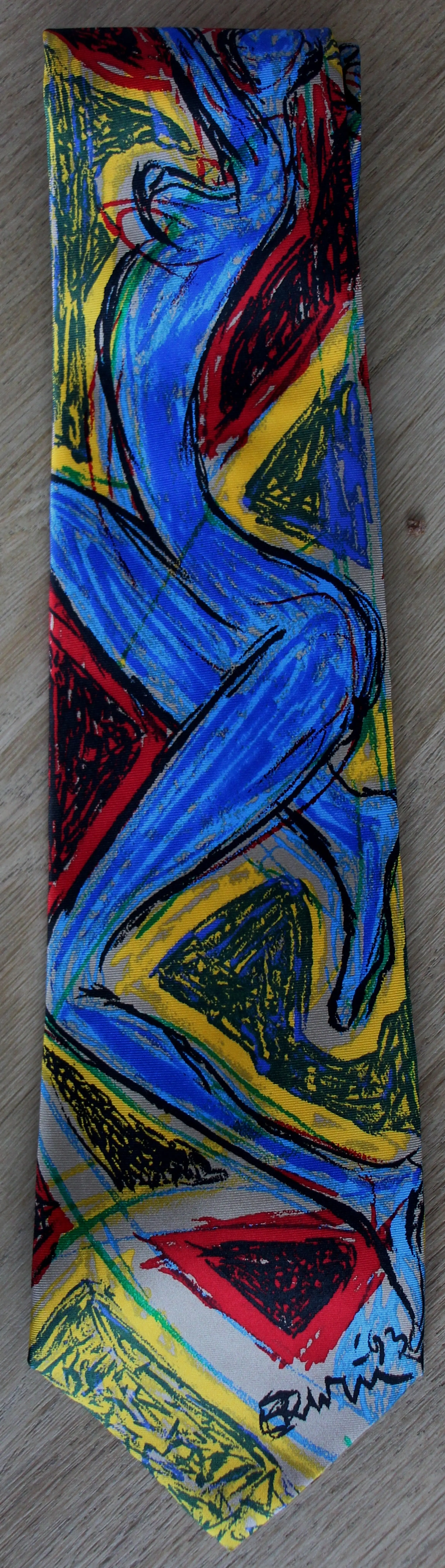 Nieuwe gesigneerde (in de druk) stropdas van Erwin de Vries. Speciaal ontworpen voor The Society Shop. Jaar: 1993. Afmetingen stropdas: H40 x b8cm. De stropdas is, voorop gesigneerd(in de druk), door de kunstenaar. De authenticiteit van het aangeboden werk wordt volledig gegarandeerd. Een certificaat van echtheid kan, op aanvraag, worden gemaild.