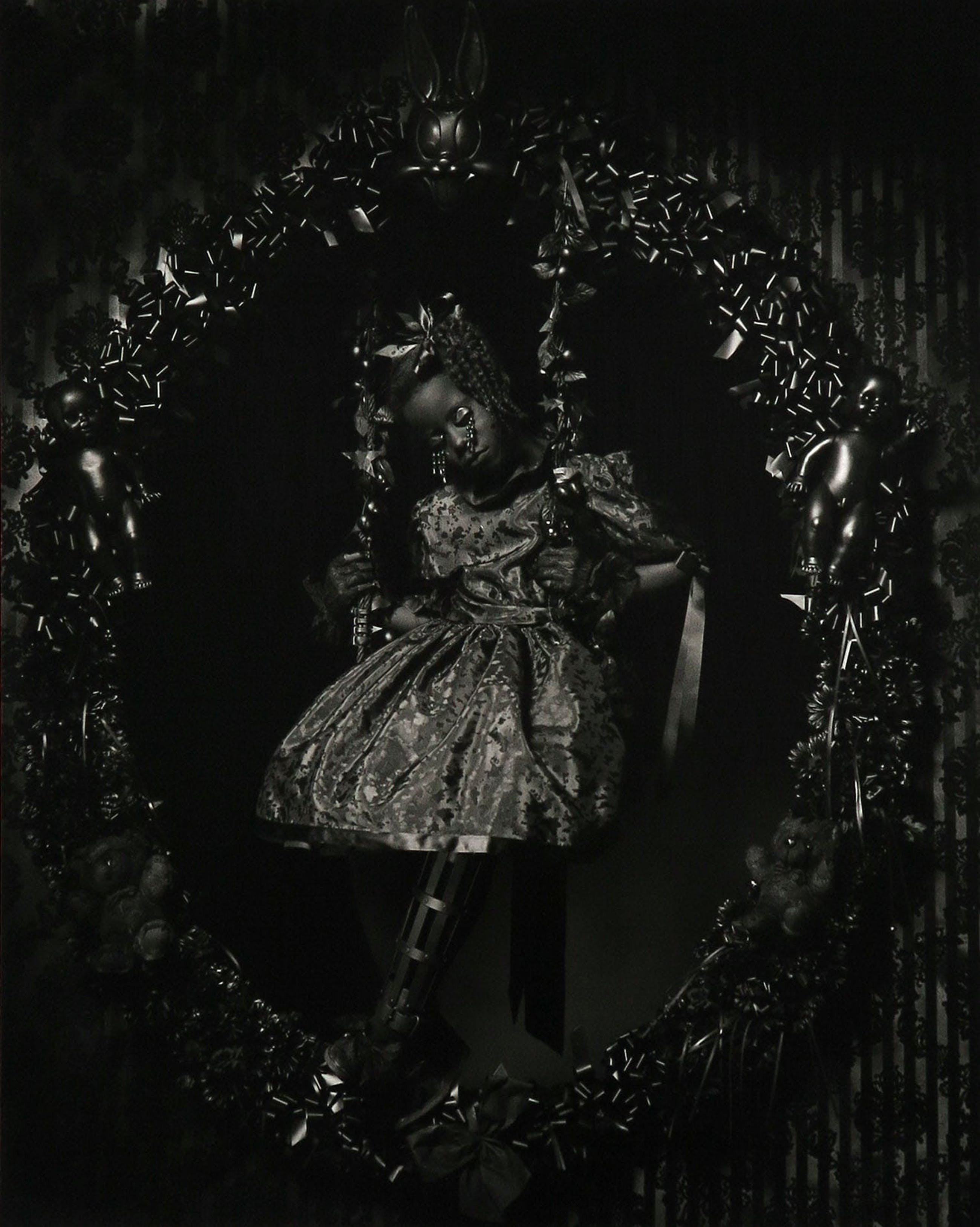 Het werk is onderdeel van de serie ''Blacks'', een serie portretten van figuren in een rouwkrans opgebouwd uit diverse objecten, in zwarttinten gefotografeerd.
