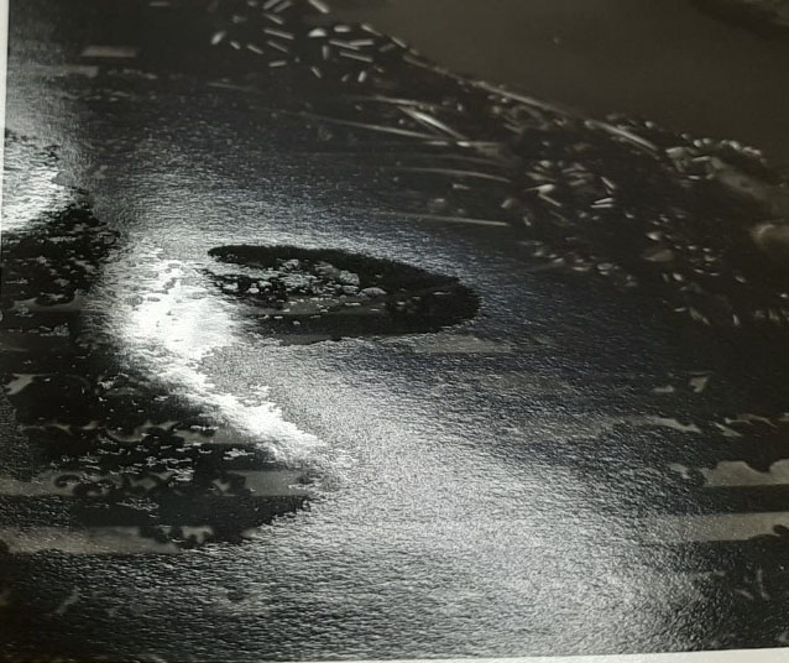 | In redelijke conditie. Langs de onderste is er een reactie aangegaan met het fotopapier, het is helaas onbekend of dit later ontstaan is, of dat dit tijdens het vervaardigen van de afdruk is gebeurd. Dit is zichtbaar met strijklicht, maar van vooraf gezien niet tot nauwelijks zichtbaar. Zie de laatste foto's, waarbij het werk met een lage invalshoek is gefotografeerd, zodat het met strijklicht zichtbaar is. | |||