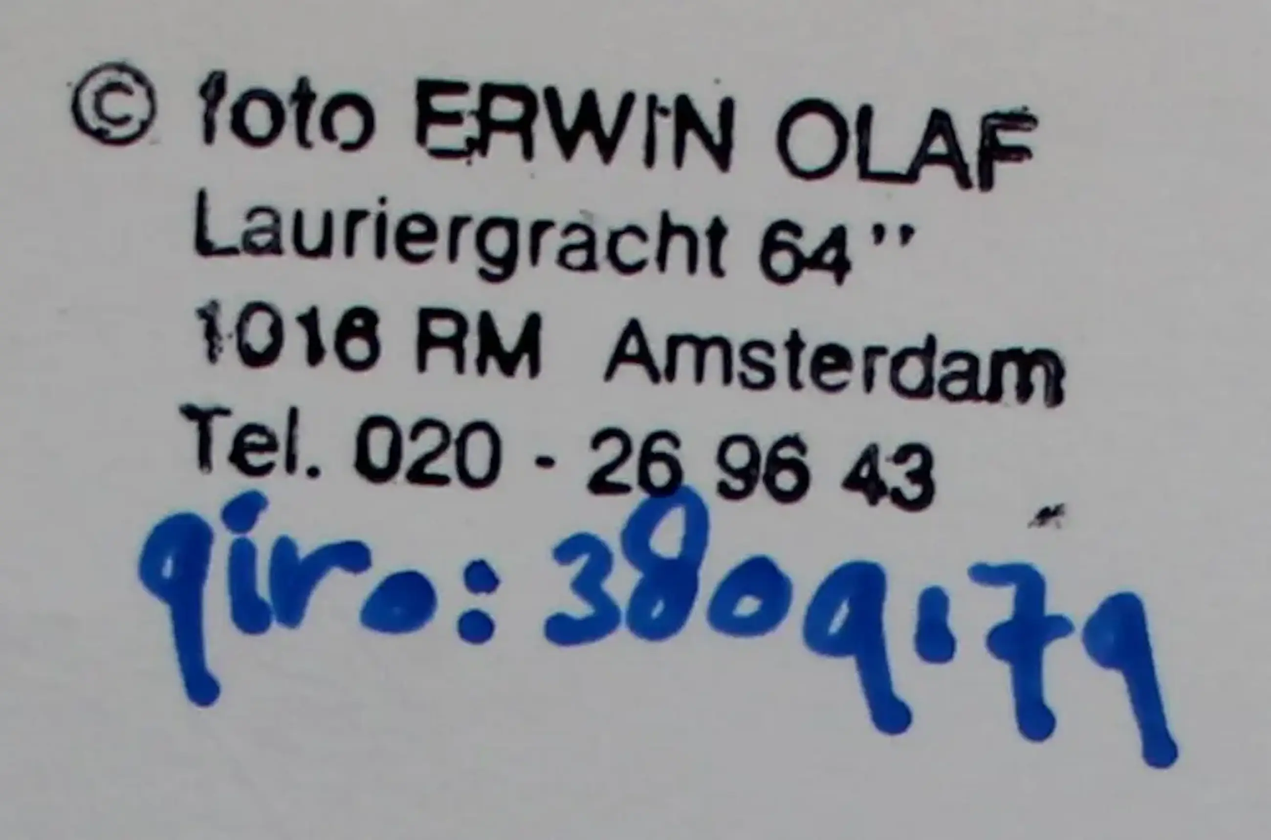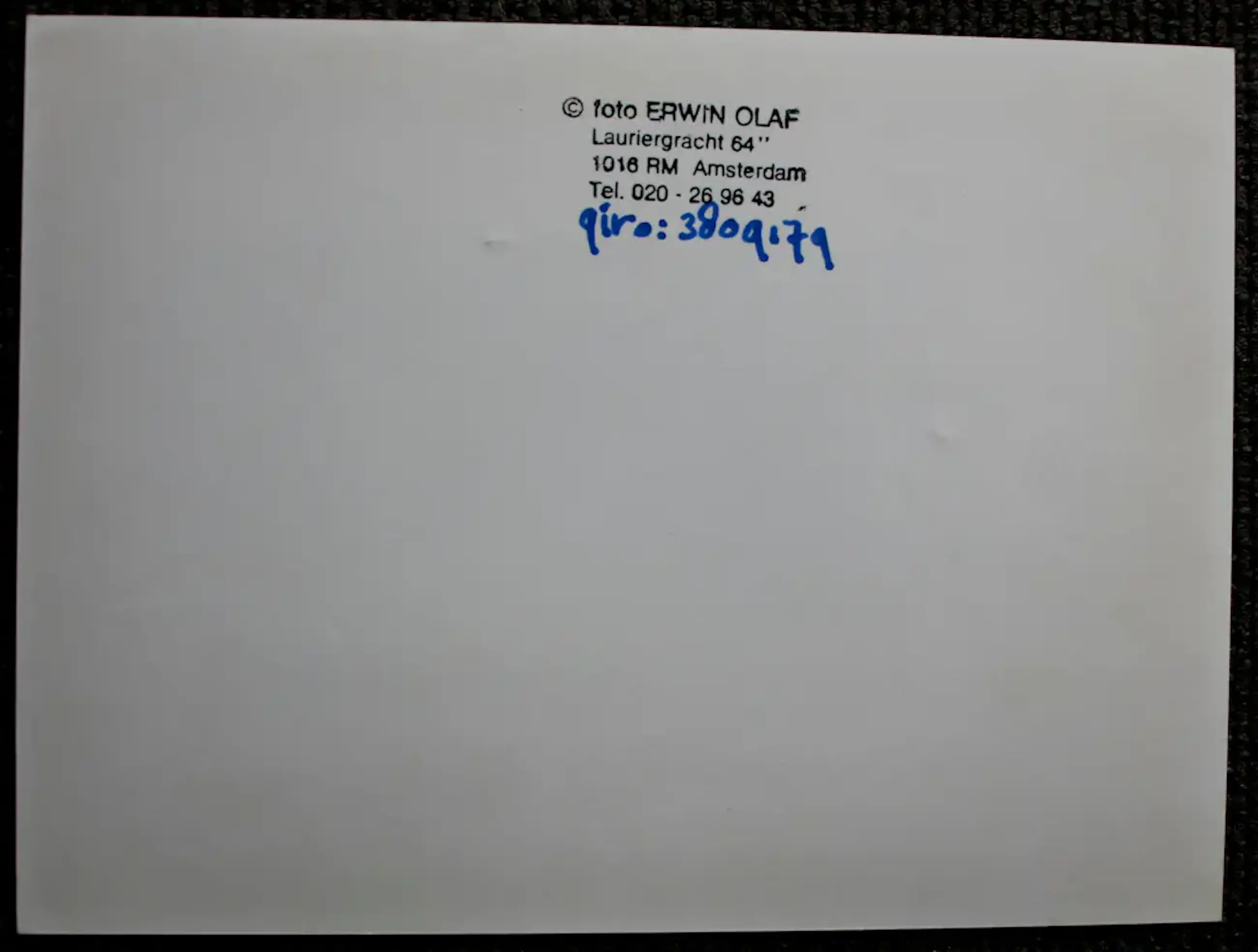Foto van Erwin Olaf. Afmetingen foto: H17.5 x b24cm. Afmetingen voorstelling: H16.5 x b22.5 cm. De foto is achterop voorzien van een copyright/adres stempel van de fotograaf.