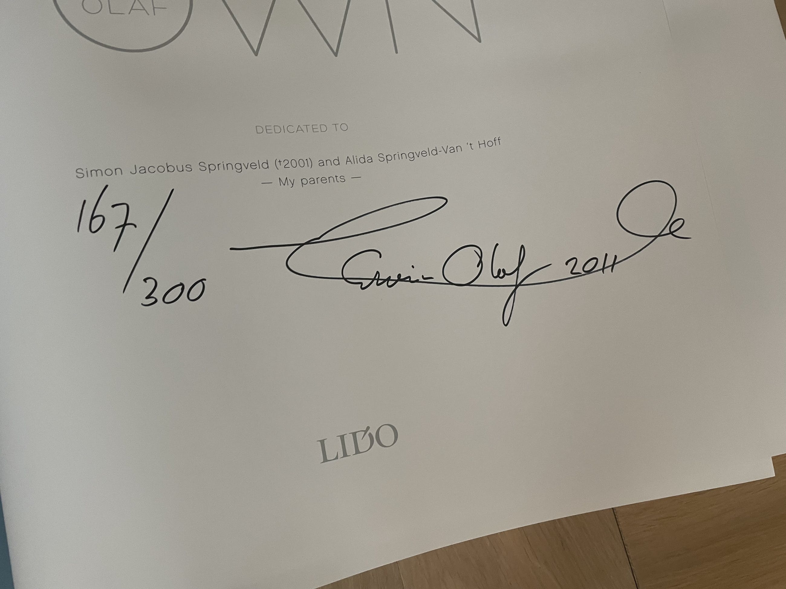 De kenner kent het: de sumo van erwin olaf. 24 Kg zwaar. 368 Paginas dik. Formaat 70 x 50 cm. Het oeuvre van de meester in een indrukwekkend naslagwerk. Uiteraaard genummerd en gesigneerd door de kunstenaar. Dit boek zit nog in de originele verzendverpakking Slechts 300 exemplaren gedrukt die alle binnen één dag waren uitverkocht. Het betreft nummer 167 . Harde kaft met stofomslag. Kan opgehaald worden in Purmerend
