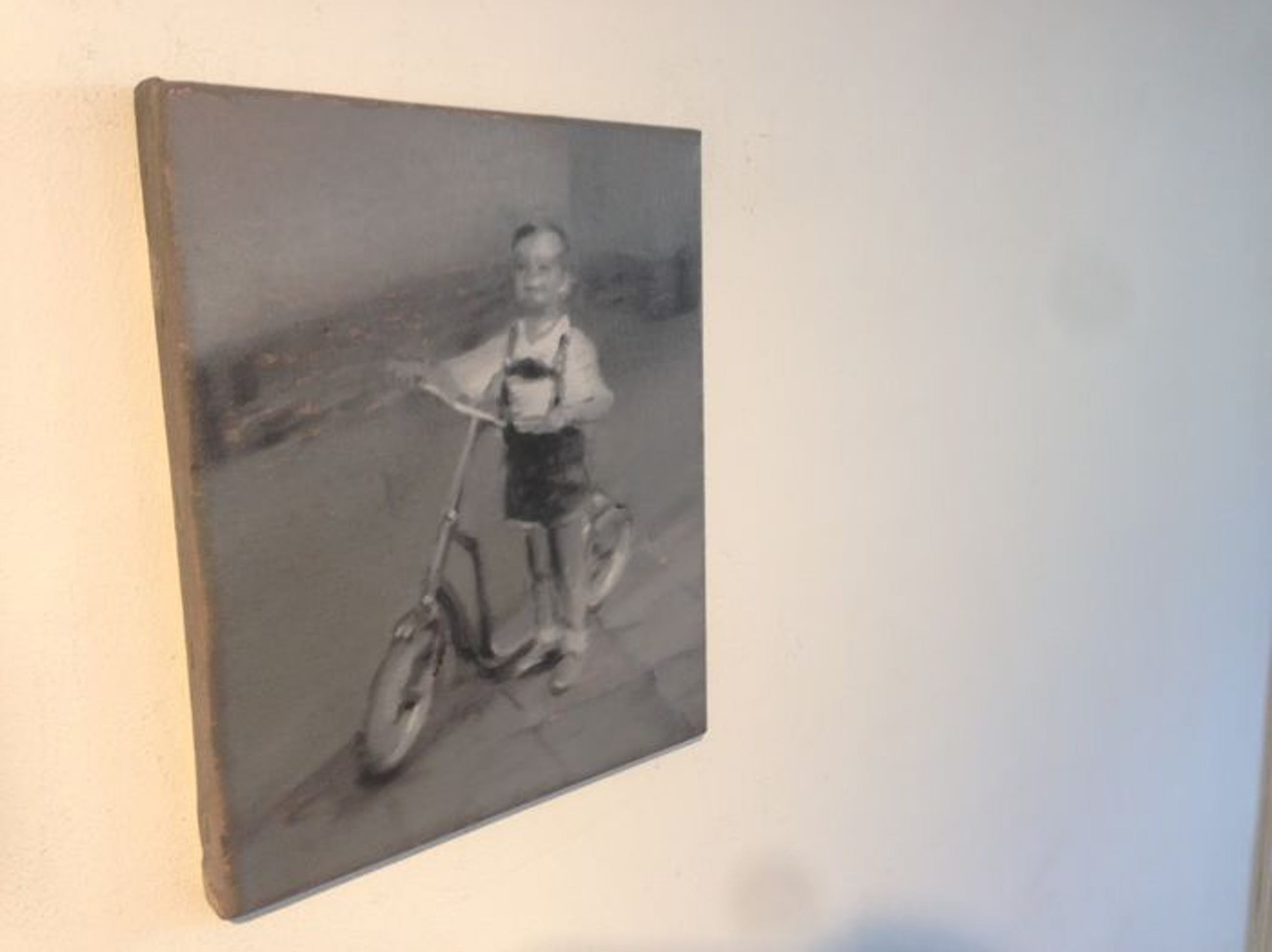 Boy on an autopedOil on linen30 x 25 cm.Signed on reverse Insured and trackable (DHL)