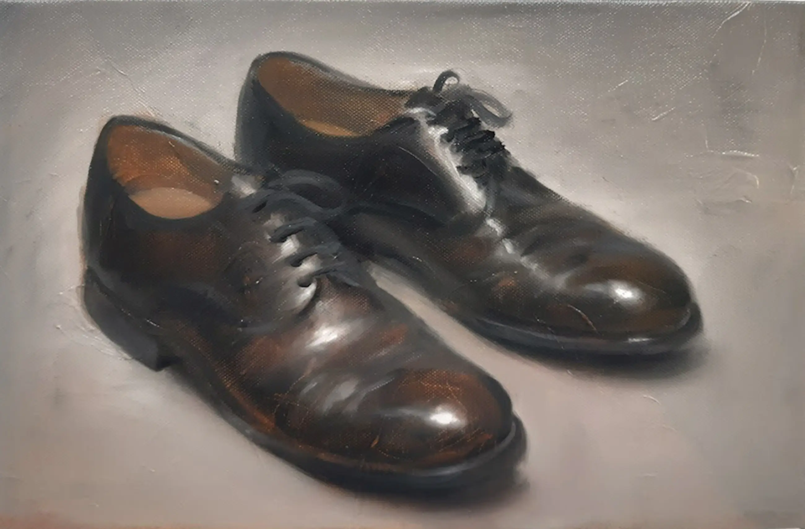 Shoes, 2026 Oil on canvas, mounted on panel 23 x 35 cm. Signed on reverse Shipped insured and trackable (DHL)