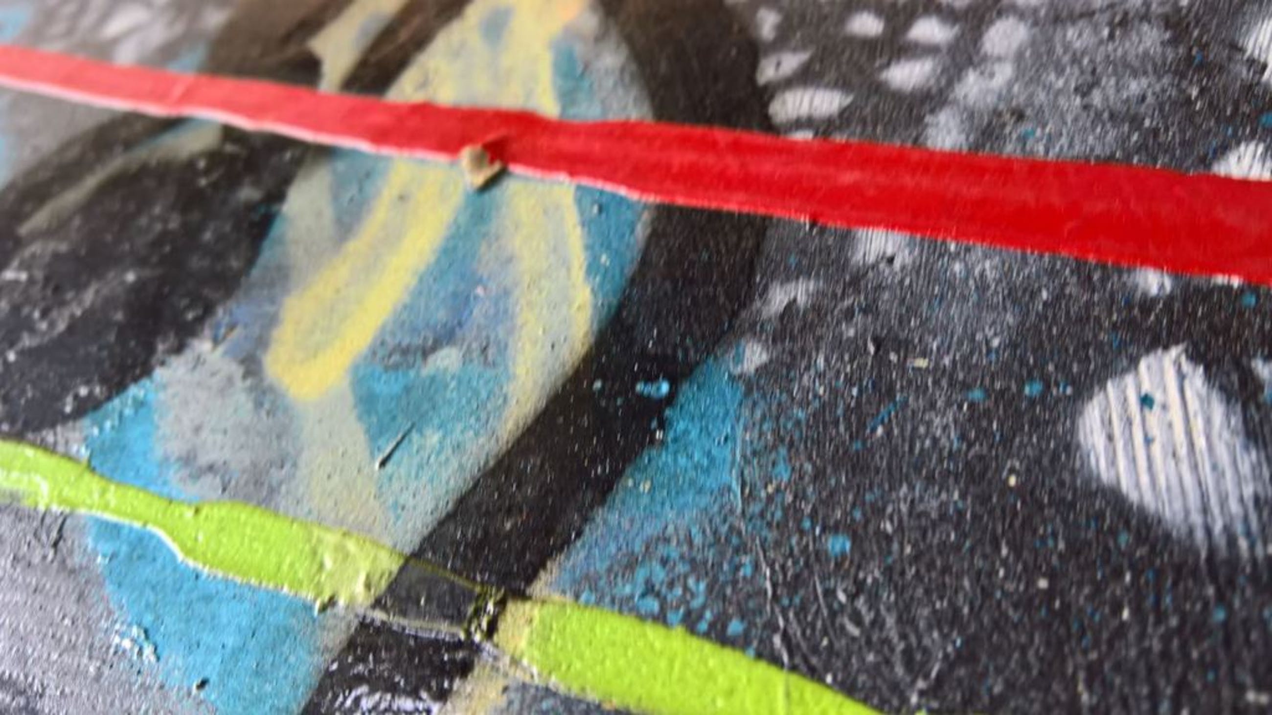 Het werk is gecertificeerd door de Kunstbron tevens prints waarop de nog frisse Espen te zien is met het (nog niet) opgespannen werk.