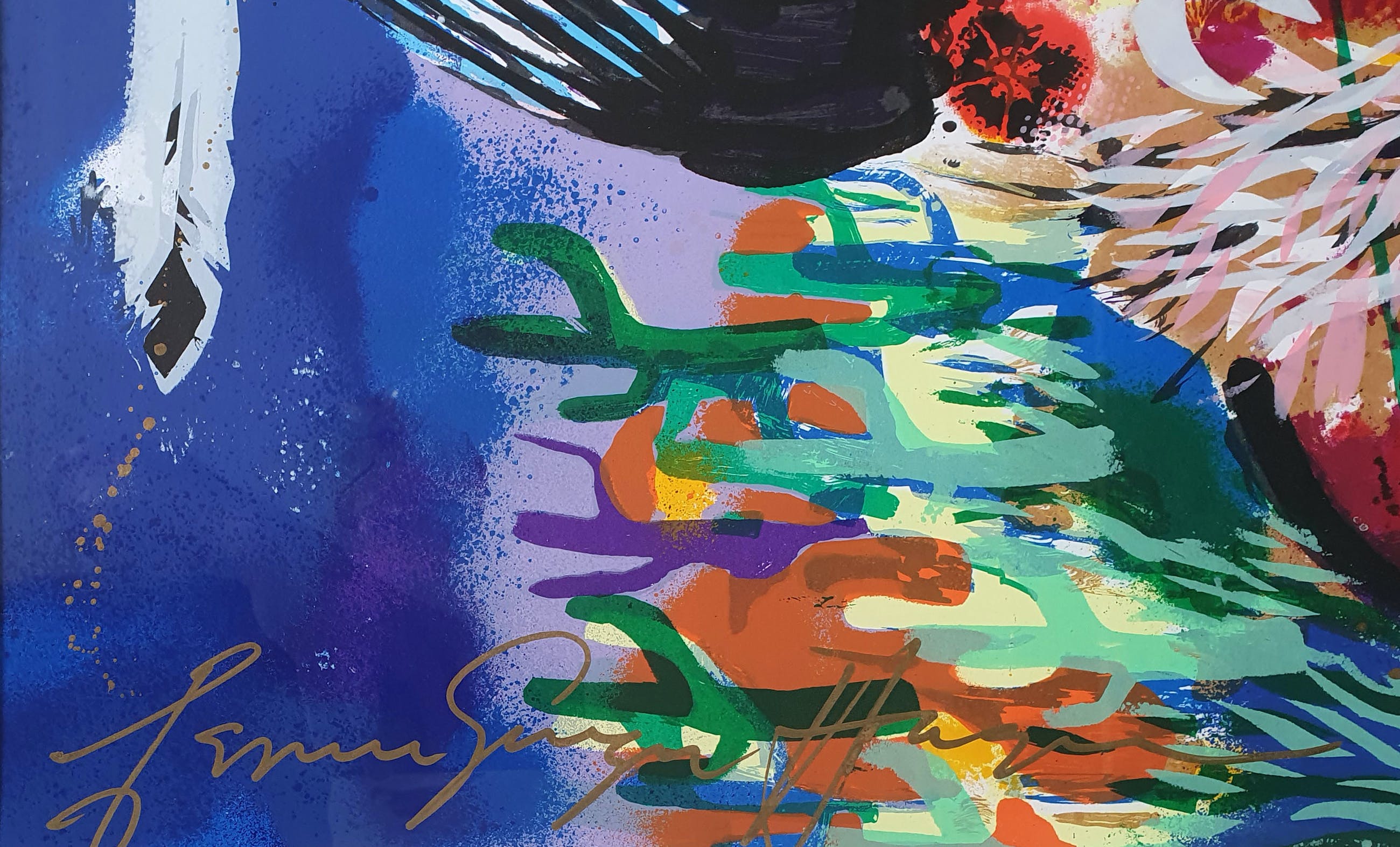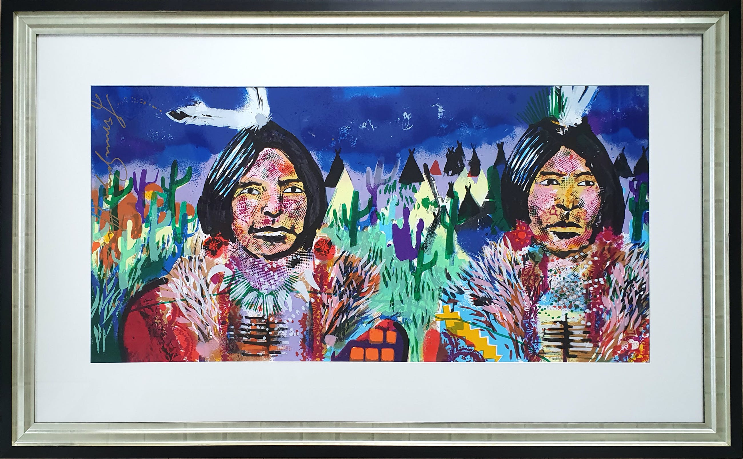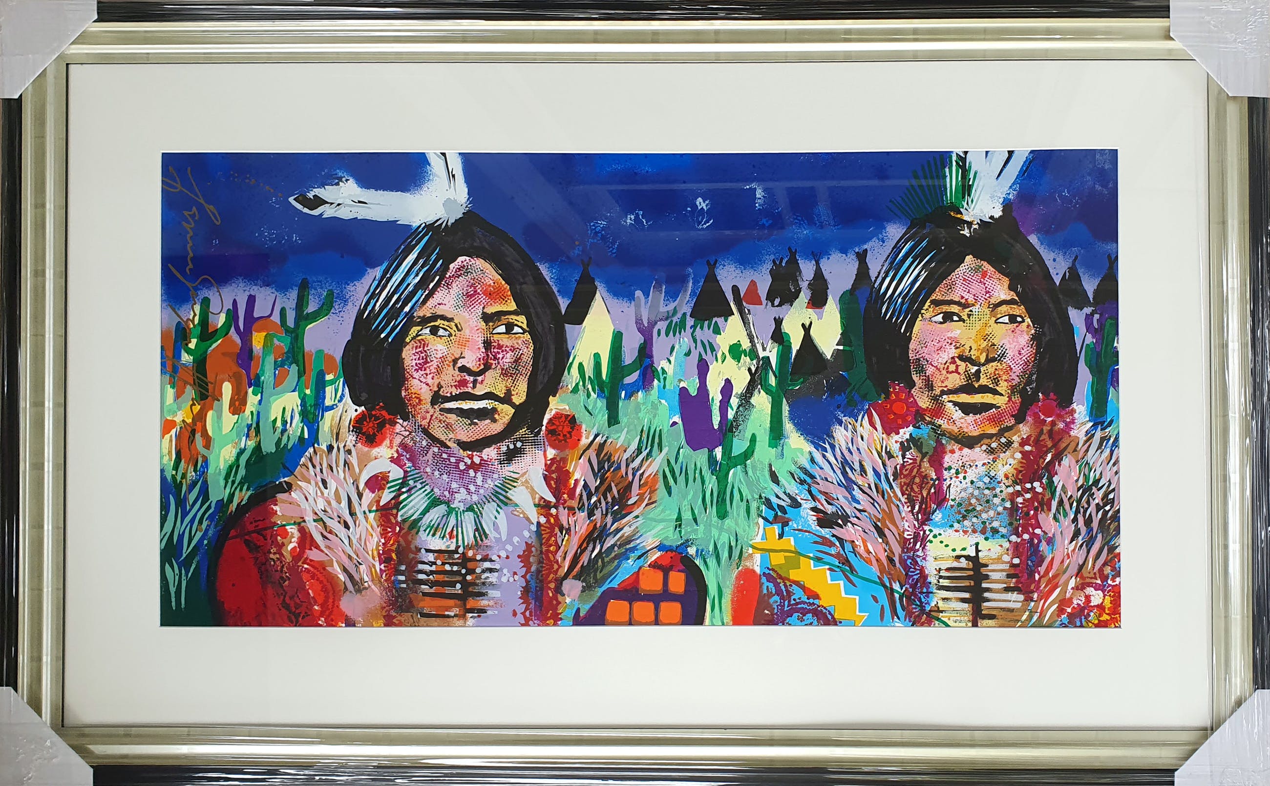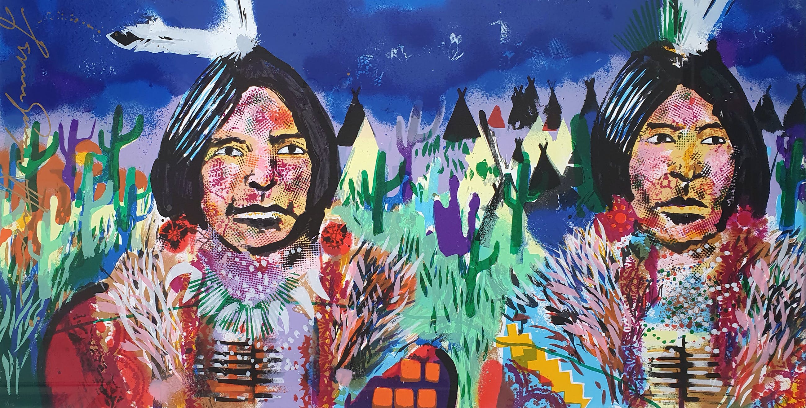 Zeefdruk van Espen Hagen met de titel: 'Chiefs'. Het werk is linksmidden met de hand gesigneerd door de kunstenaar.