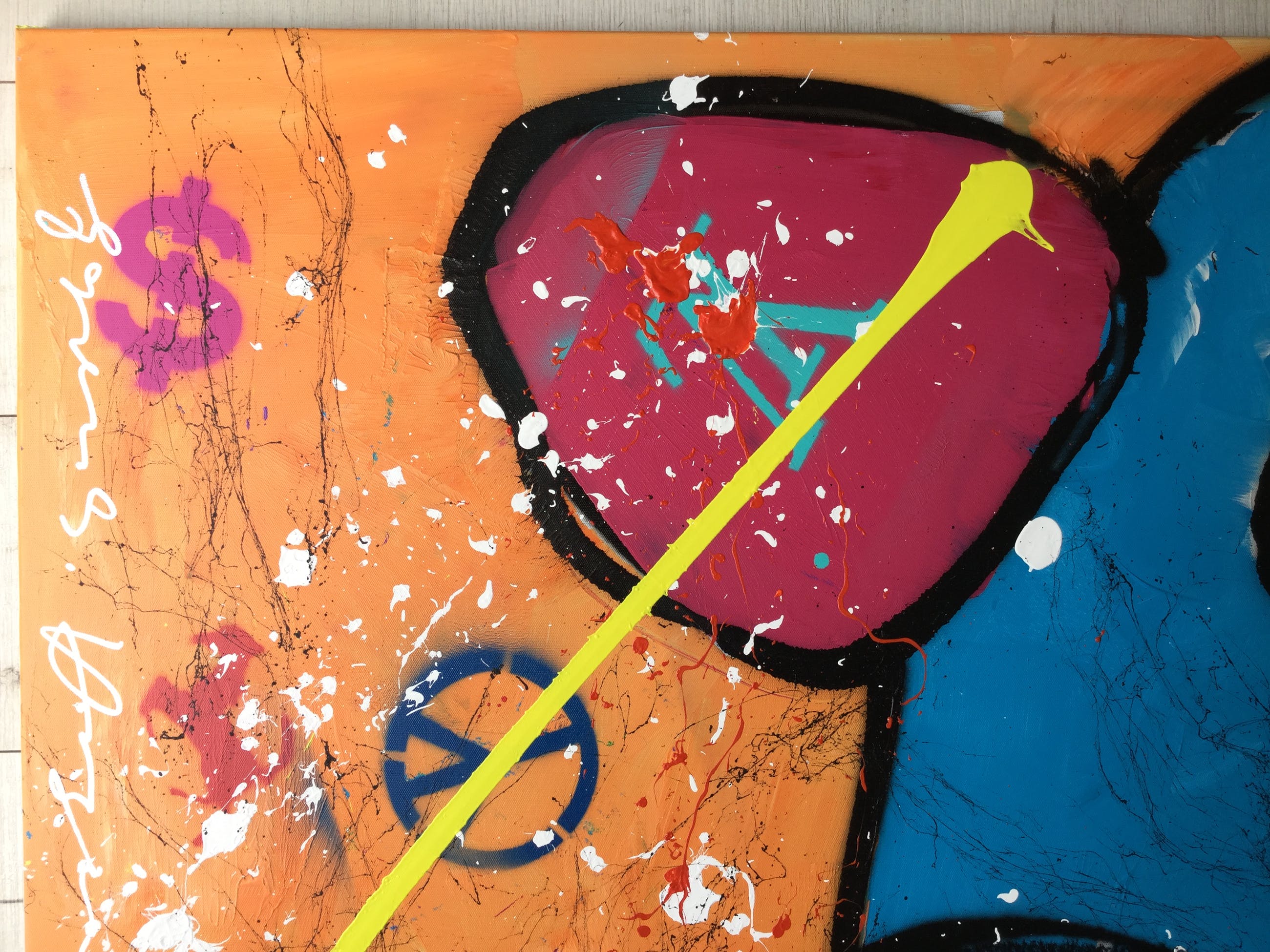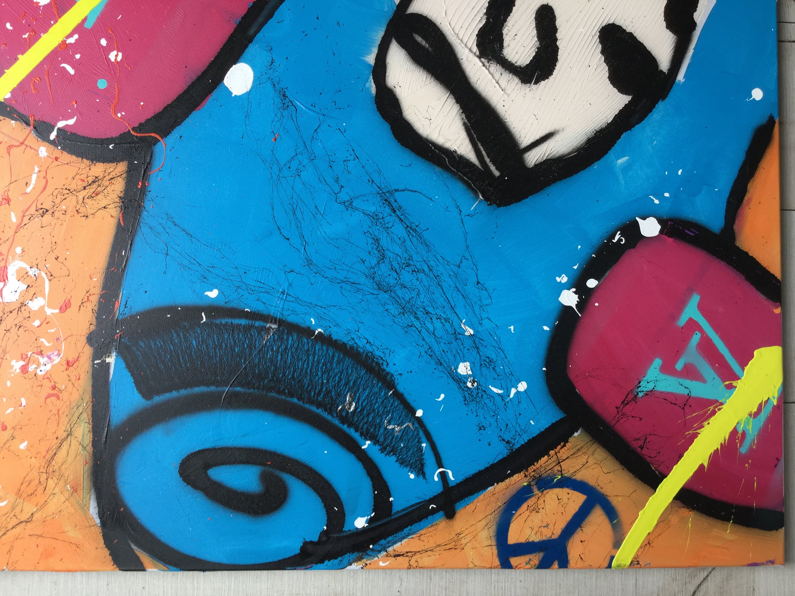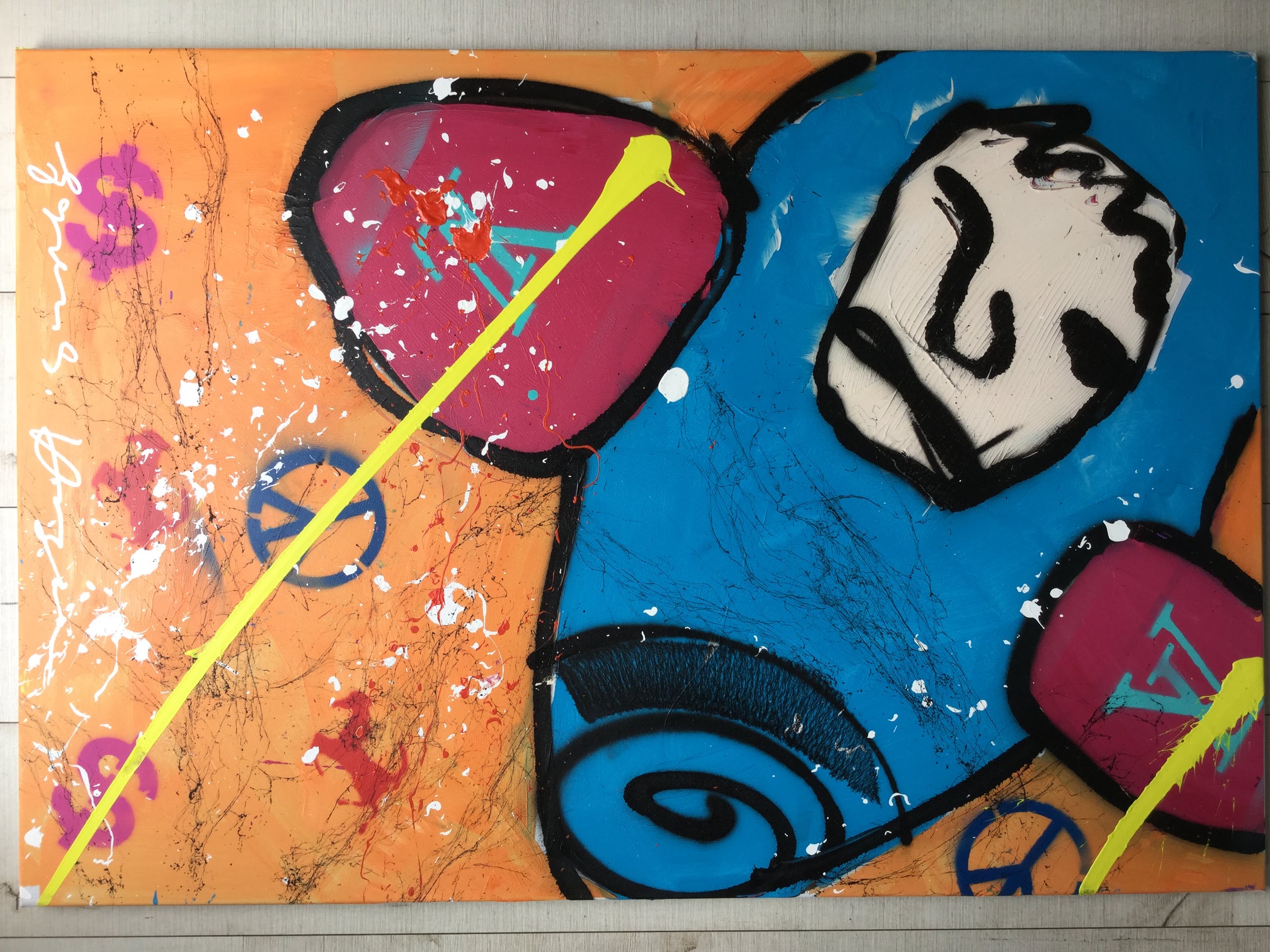 In zeer mooie staat en wordt bij verzending zeer zorgvuldig verpakt. Het werk dateert uit 2007 en heeft de afmetingen 75 cm hoogte X 110 cm breedte. Opgespannen op een houten spieraam.