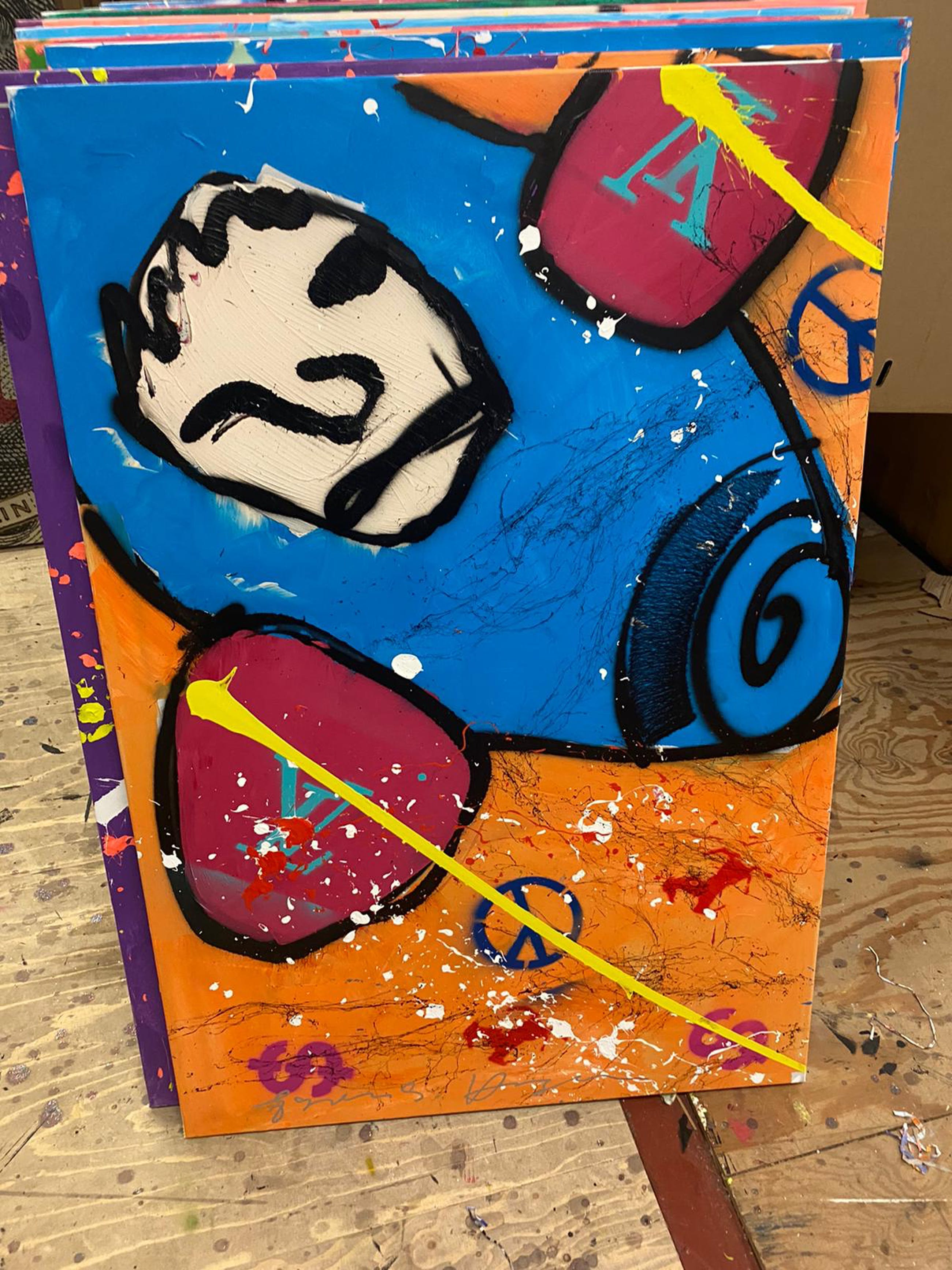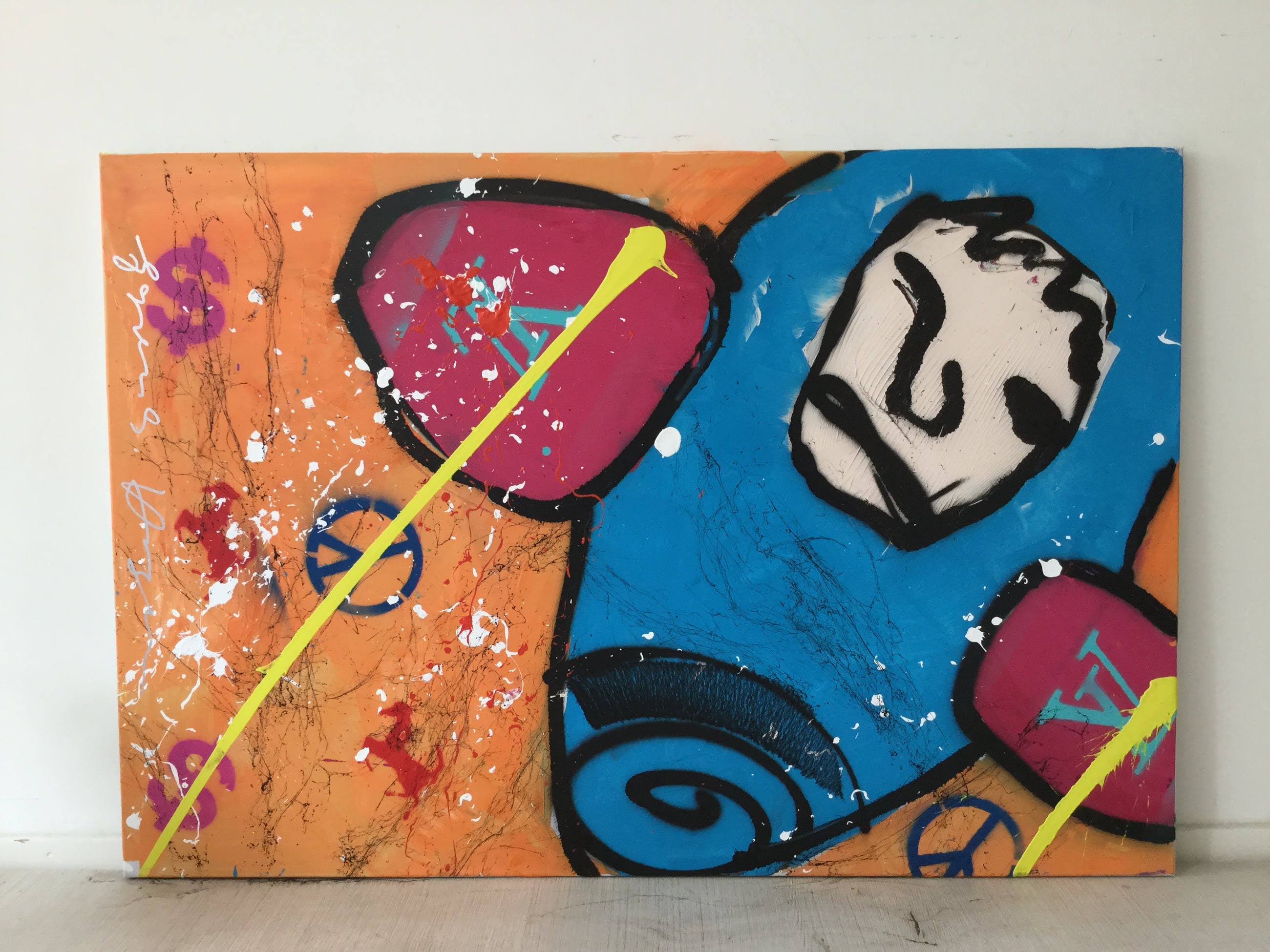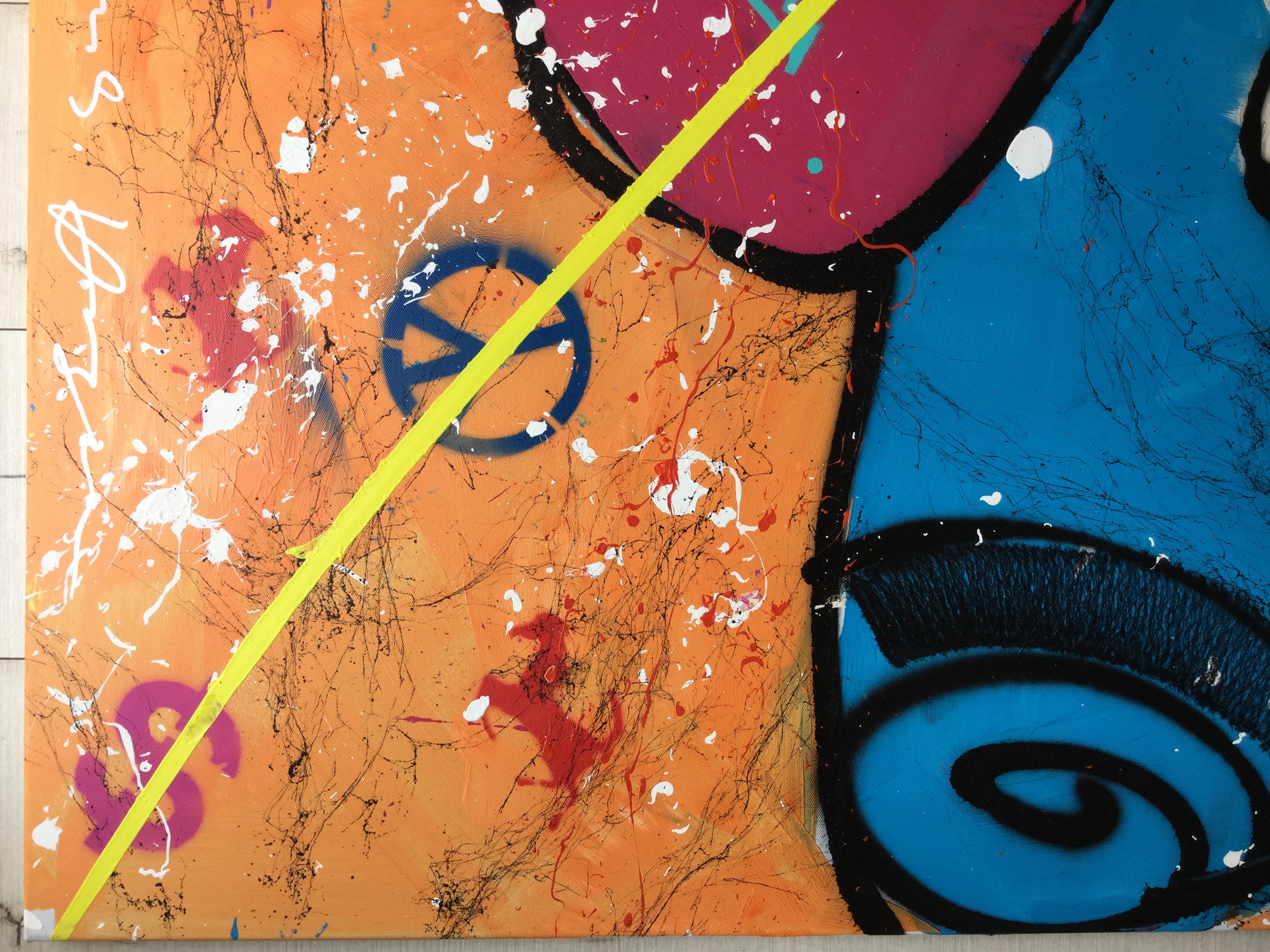 In zeer mooie staat en wordt bij verzending zeer zorgvuldig verpakt. Het werk dateert uit 2007 en heeft de afmetingen 75 cm hoogte X 110 cm breedte. Opgespannen op een houten spieraam.