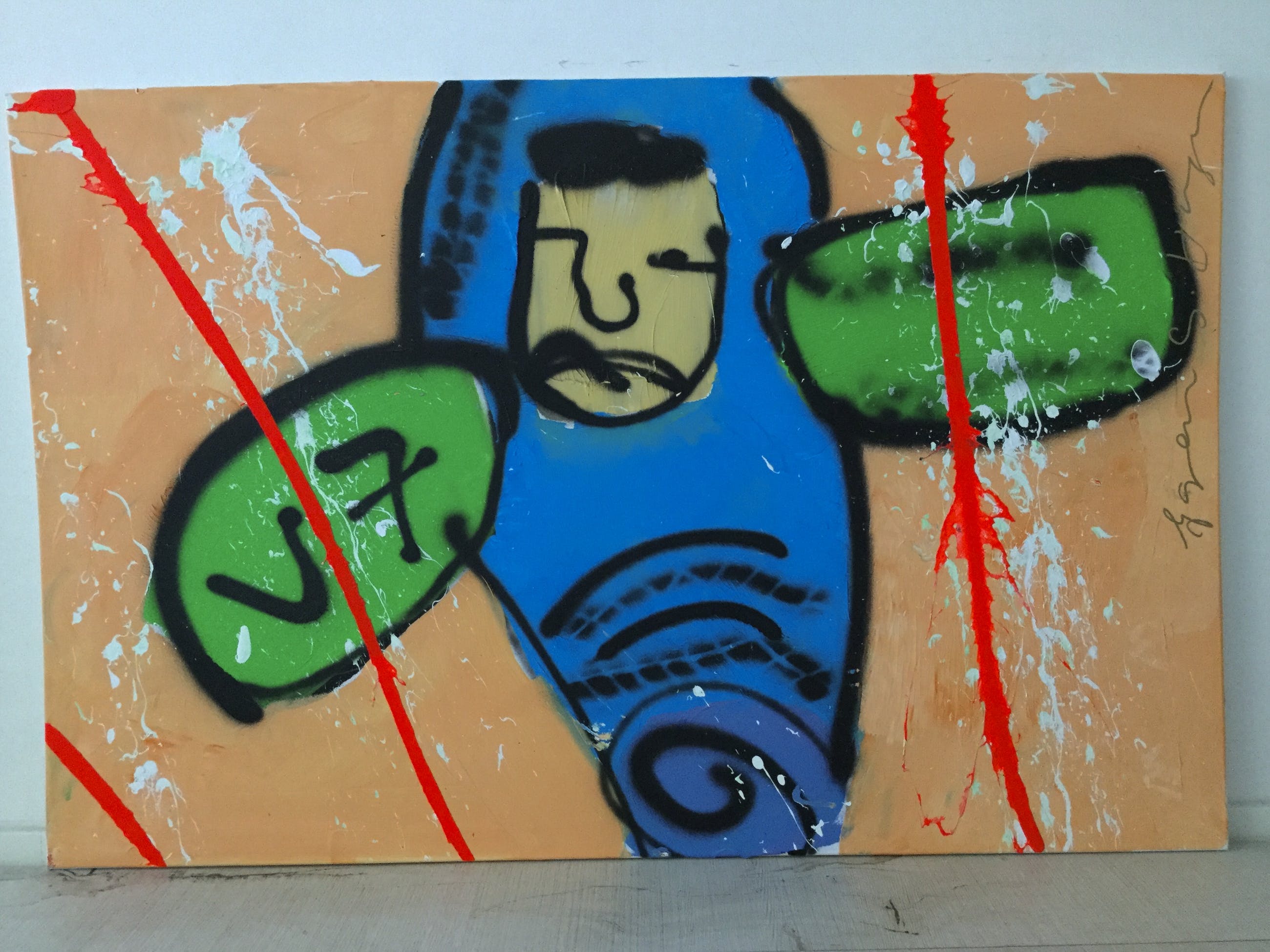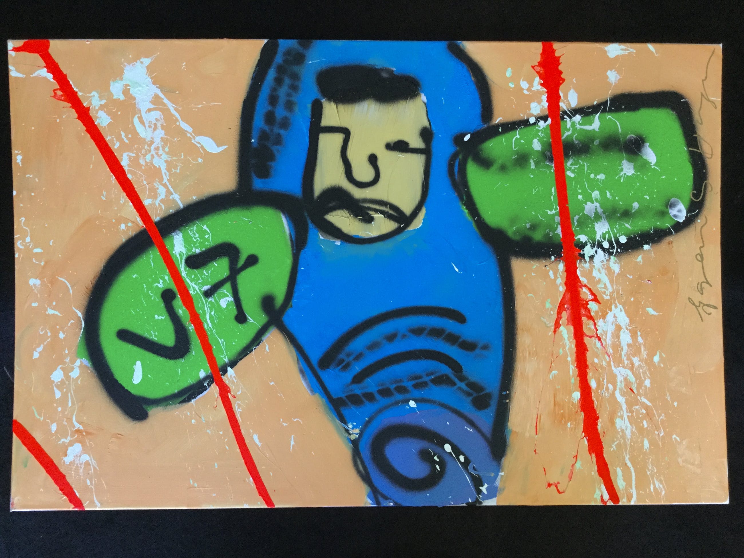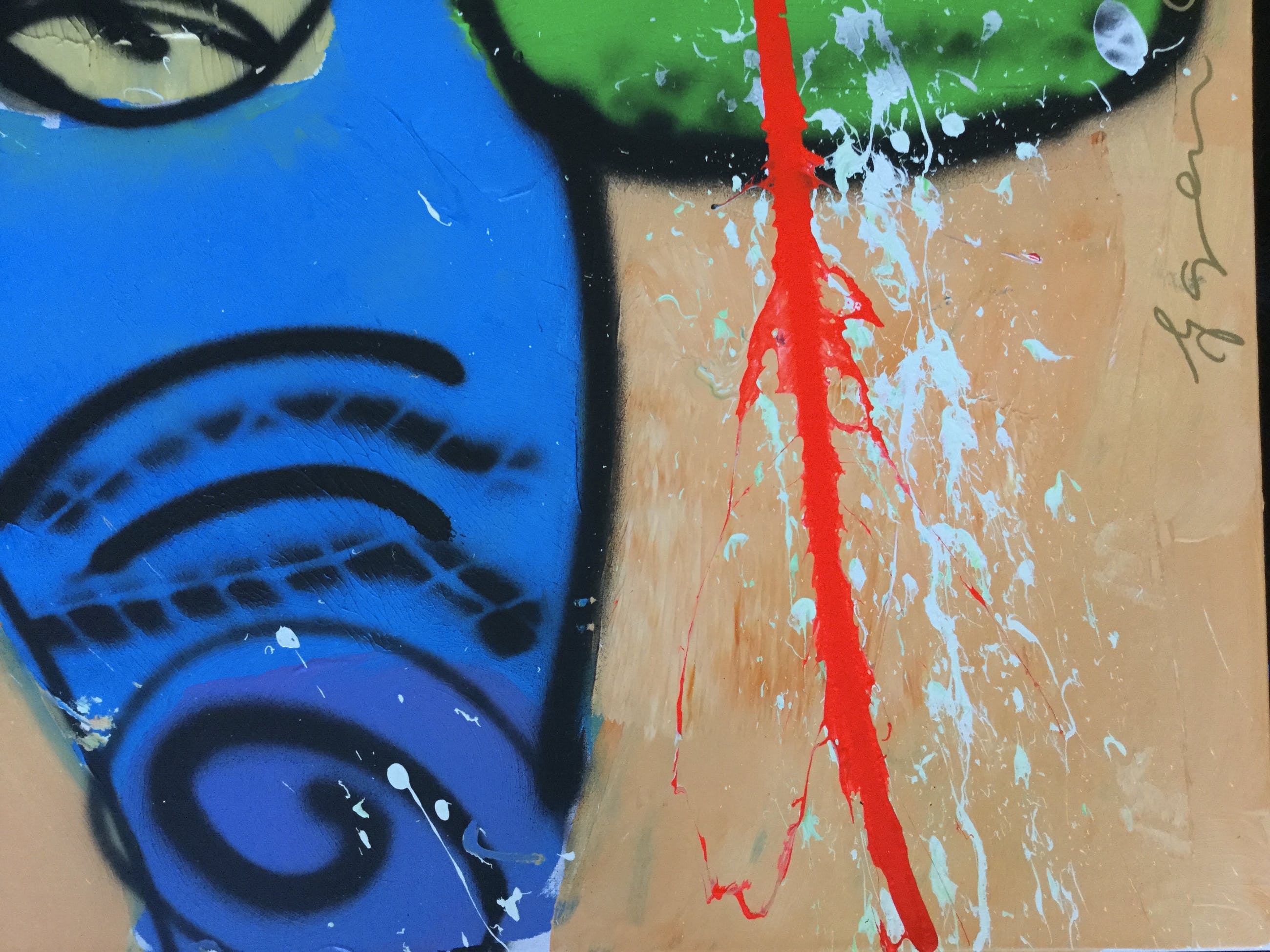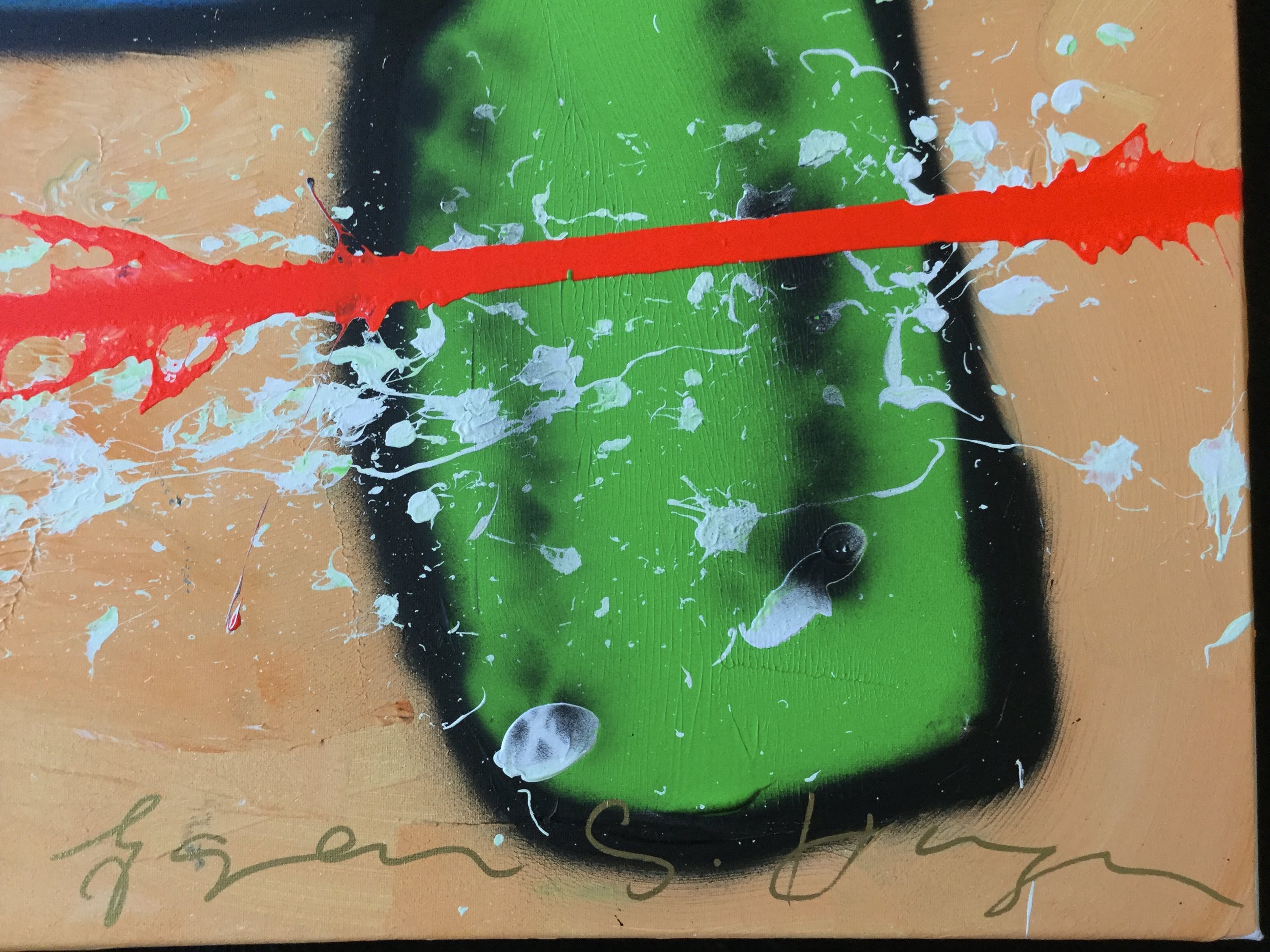 In zeer mooie staat en wordt bij verzending zeer zorgvuldig verpakt. Het werk dateert uit 2007 en heeft de afmetingen 75cm hoogte X 115cm breedte. Opgespannen op een houten spieraam.