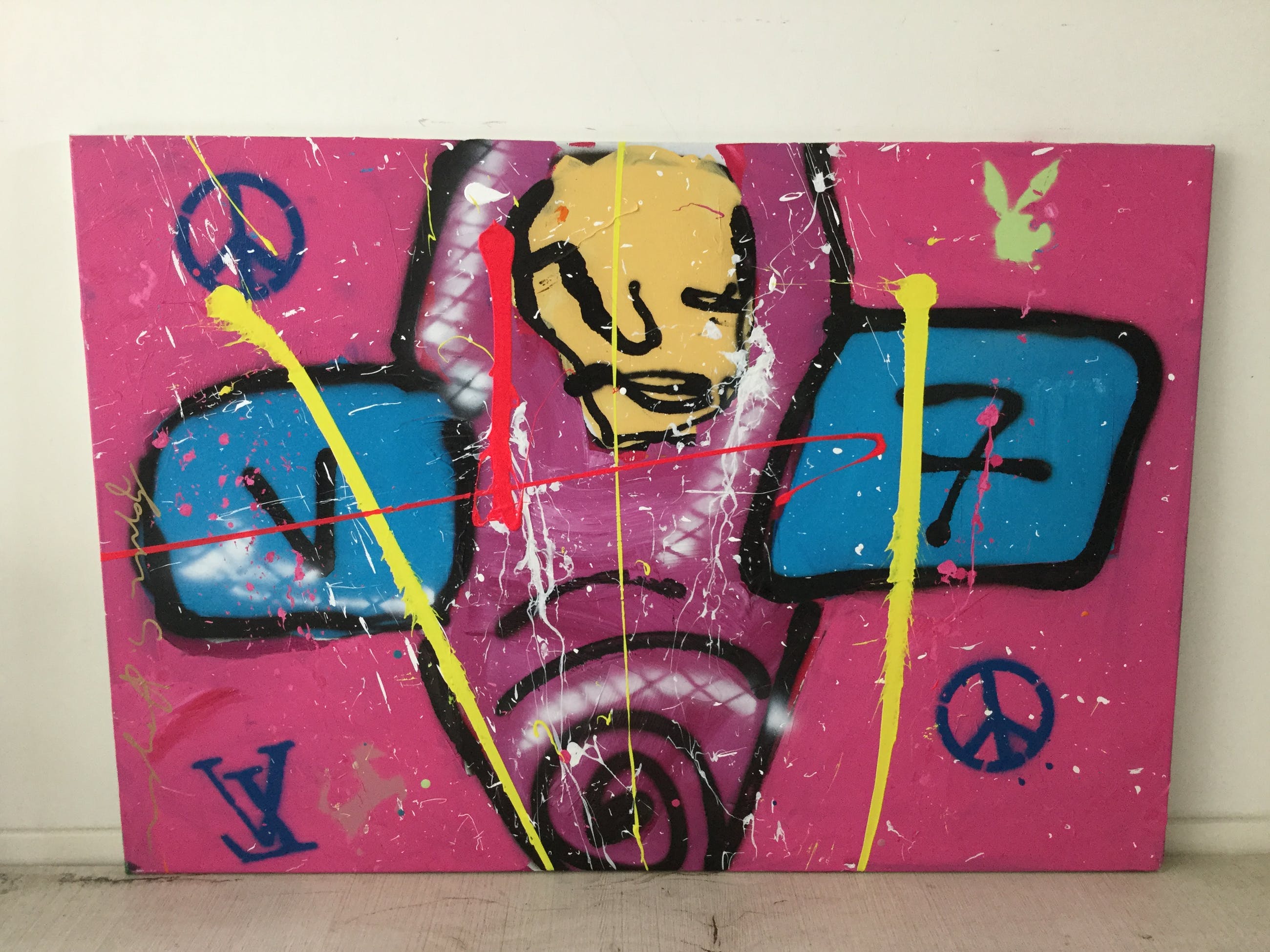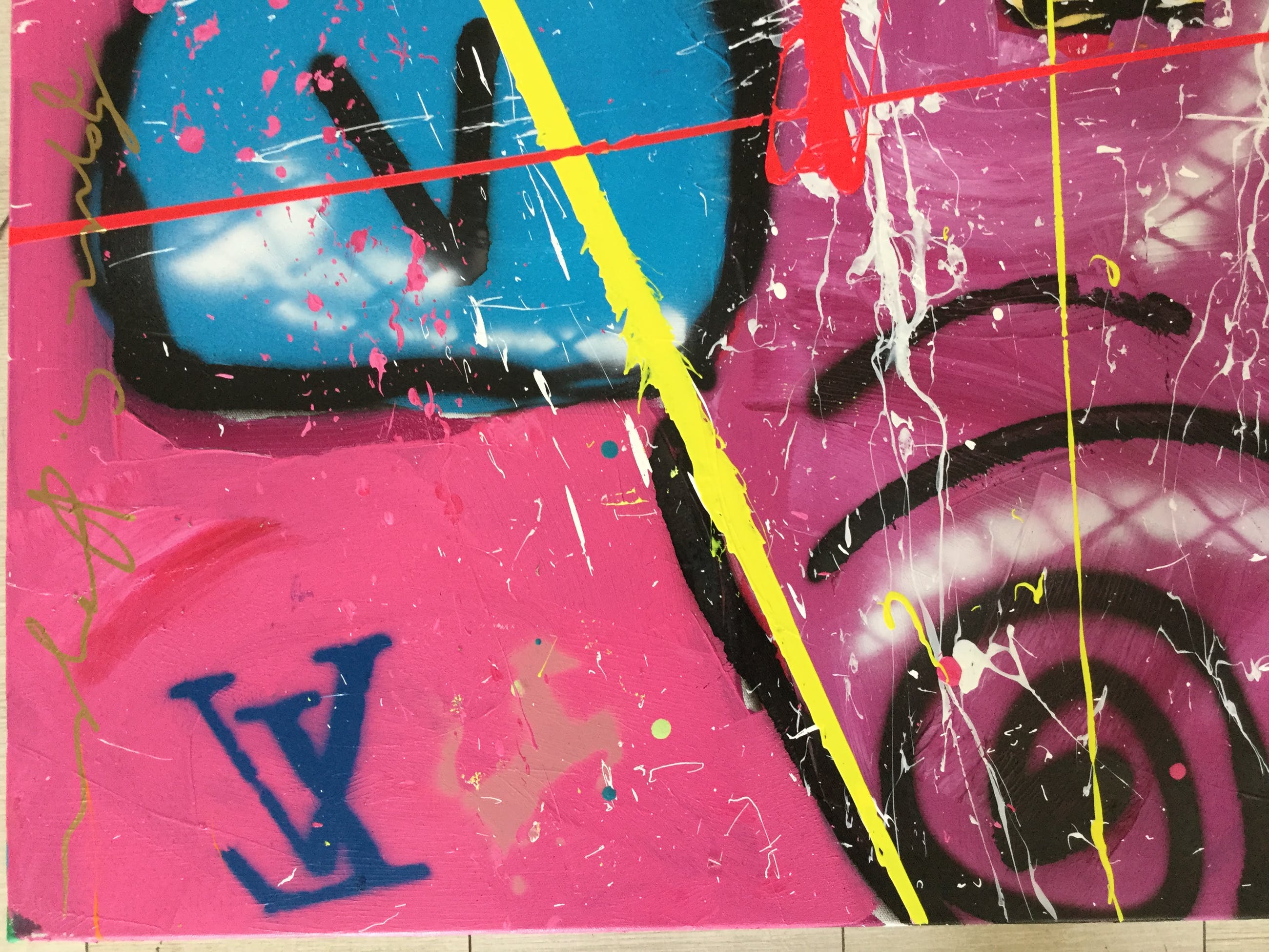 In zeer mooie staat en wordt bij verzending zeer zorgvuldig verpakt. Het werk dateert uit 2007 en heeft de afmetingen 75cm hoogte X 110cm breedte. Opgespannen op een houten spieraam.