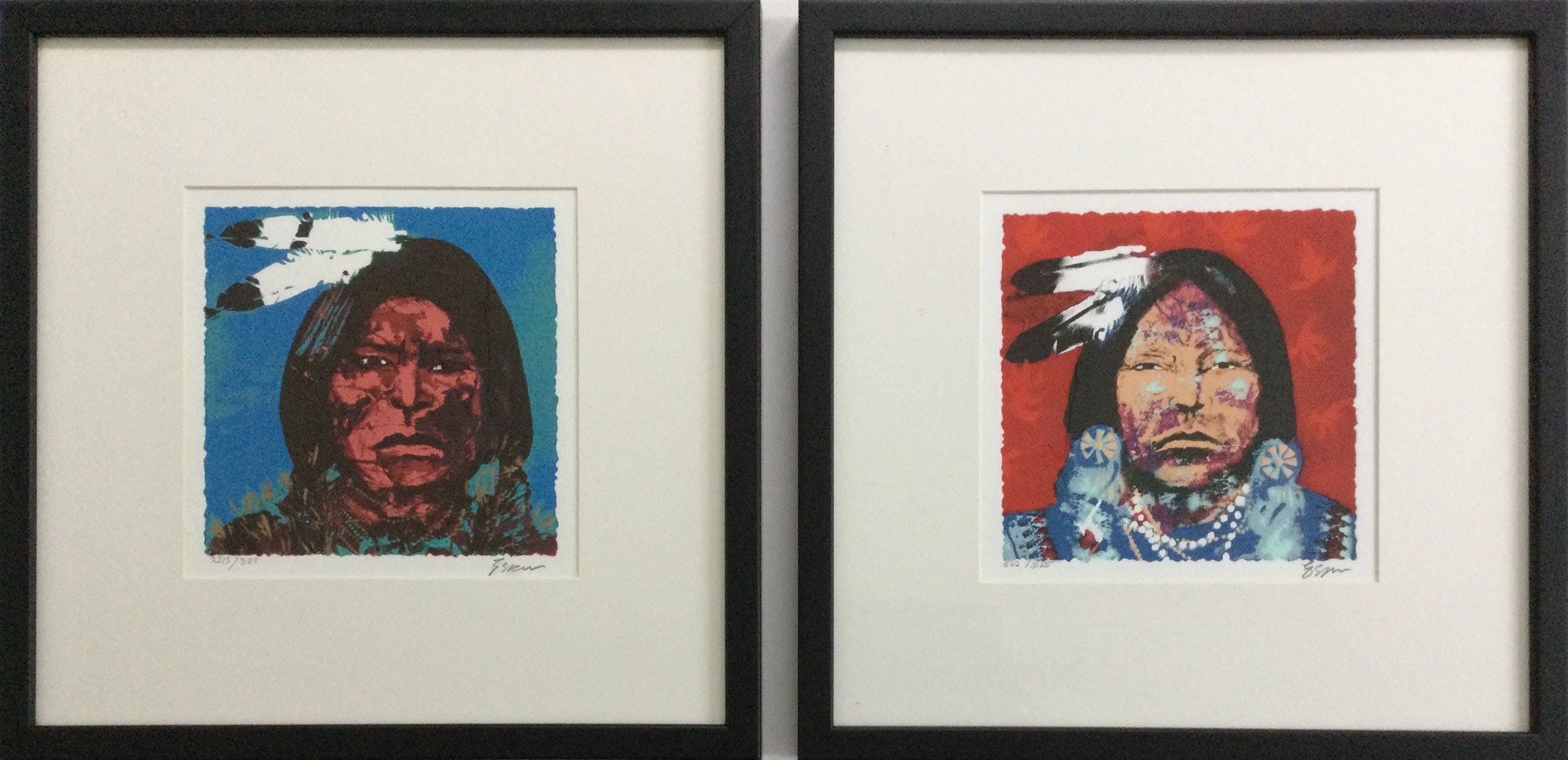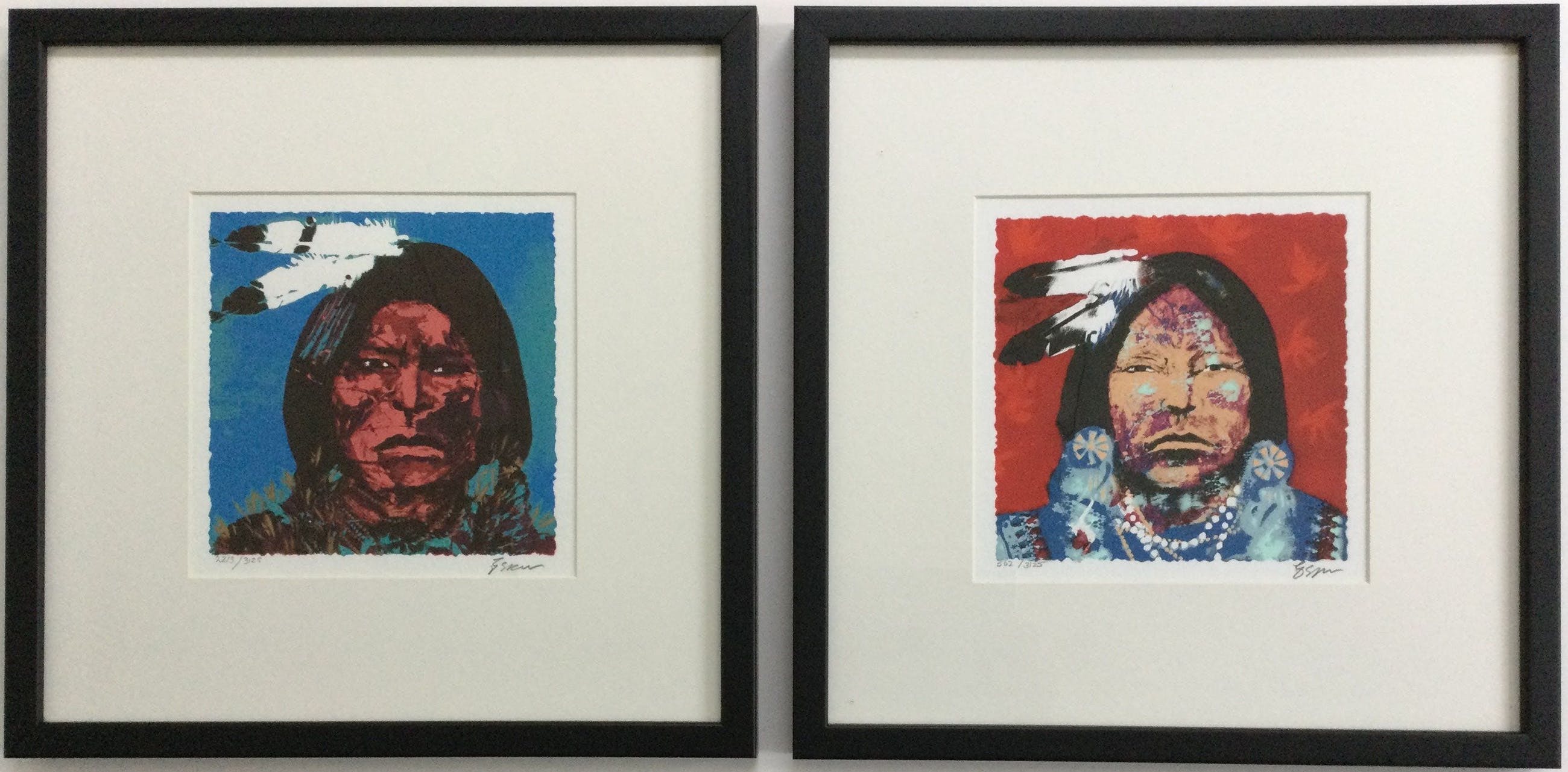 Mooie kwaliteit zeefdrukken, beide werken verkeren in perfecte staat. Dat geldt ook voor de zwarte lijsten en passe-partouts. Kunnen zo aan de muur!