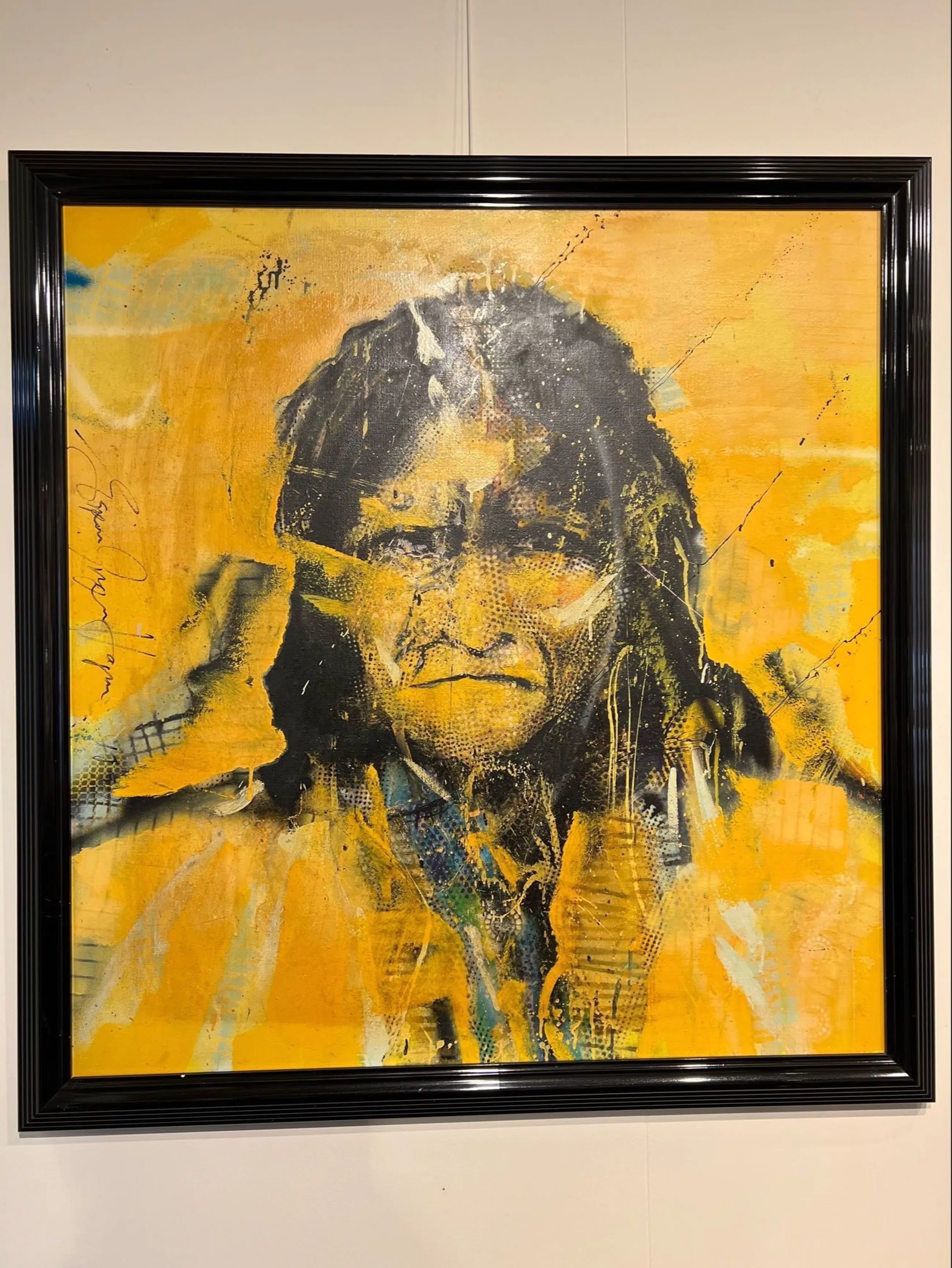 Kenmerkend voor Espen Hagen zijn de schilderijen met Indianen. Dit is hier een mooi voorbeeld van. De lijst is zwart met enige gebruikssporen, het doek is in excellente conditie.