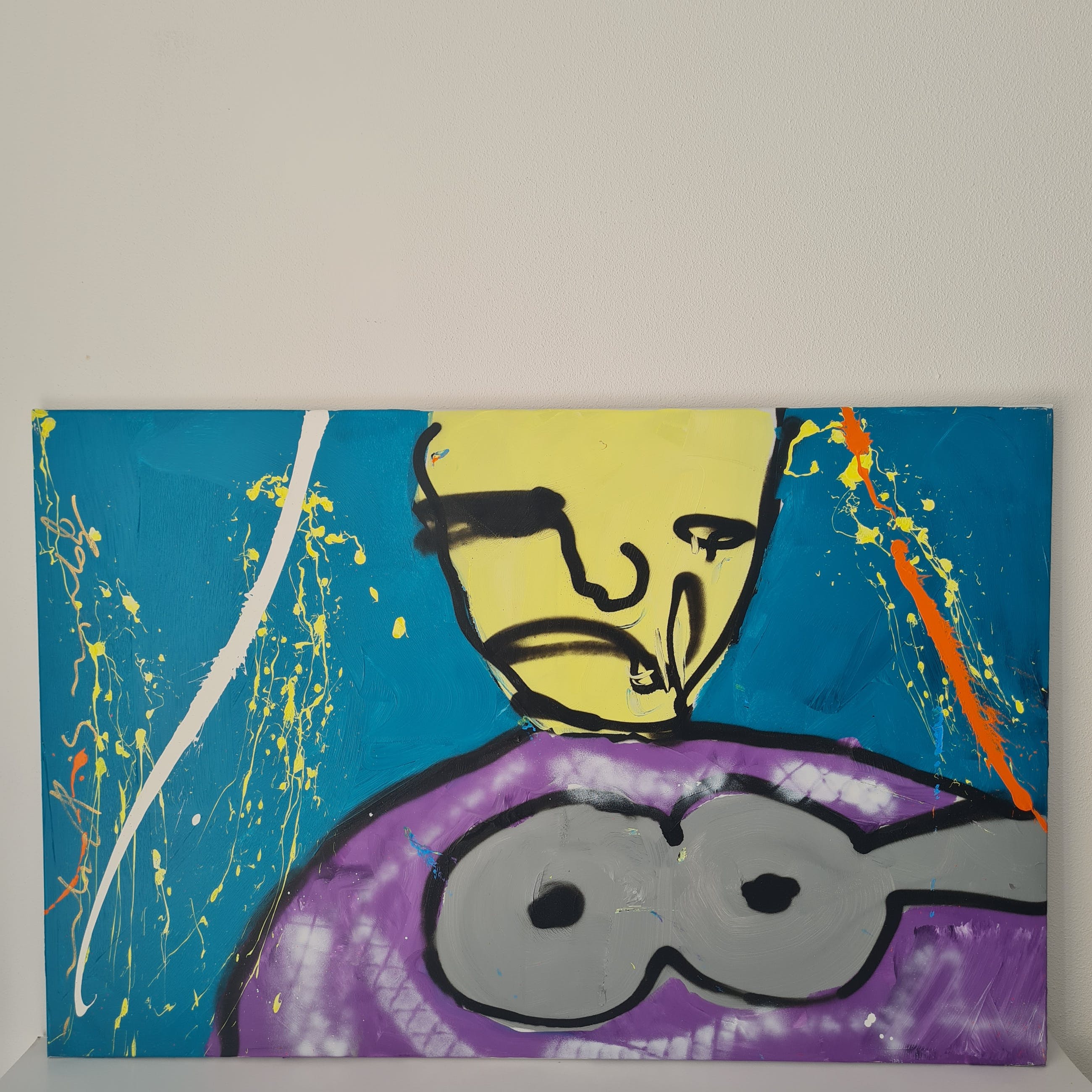 Formaat 75x115 cm. Is gesigneerd met viltstift op de voorzijde