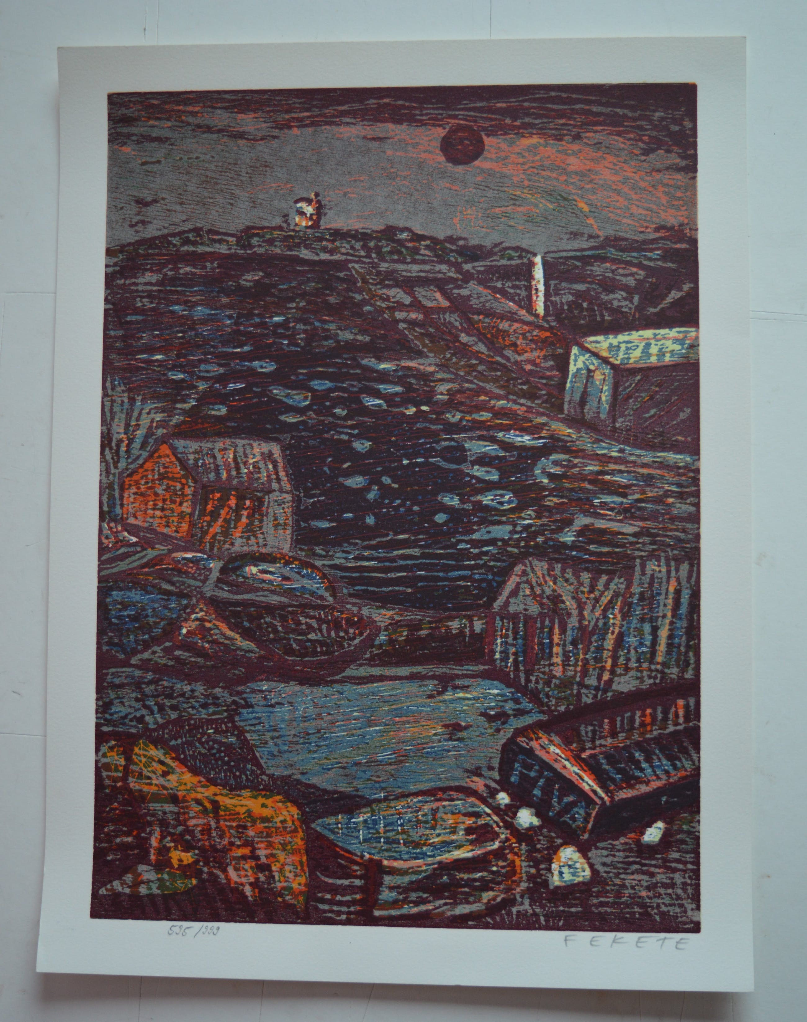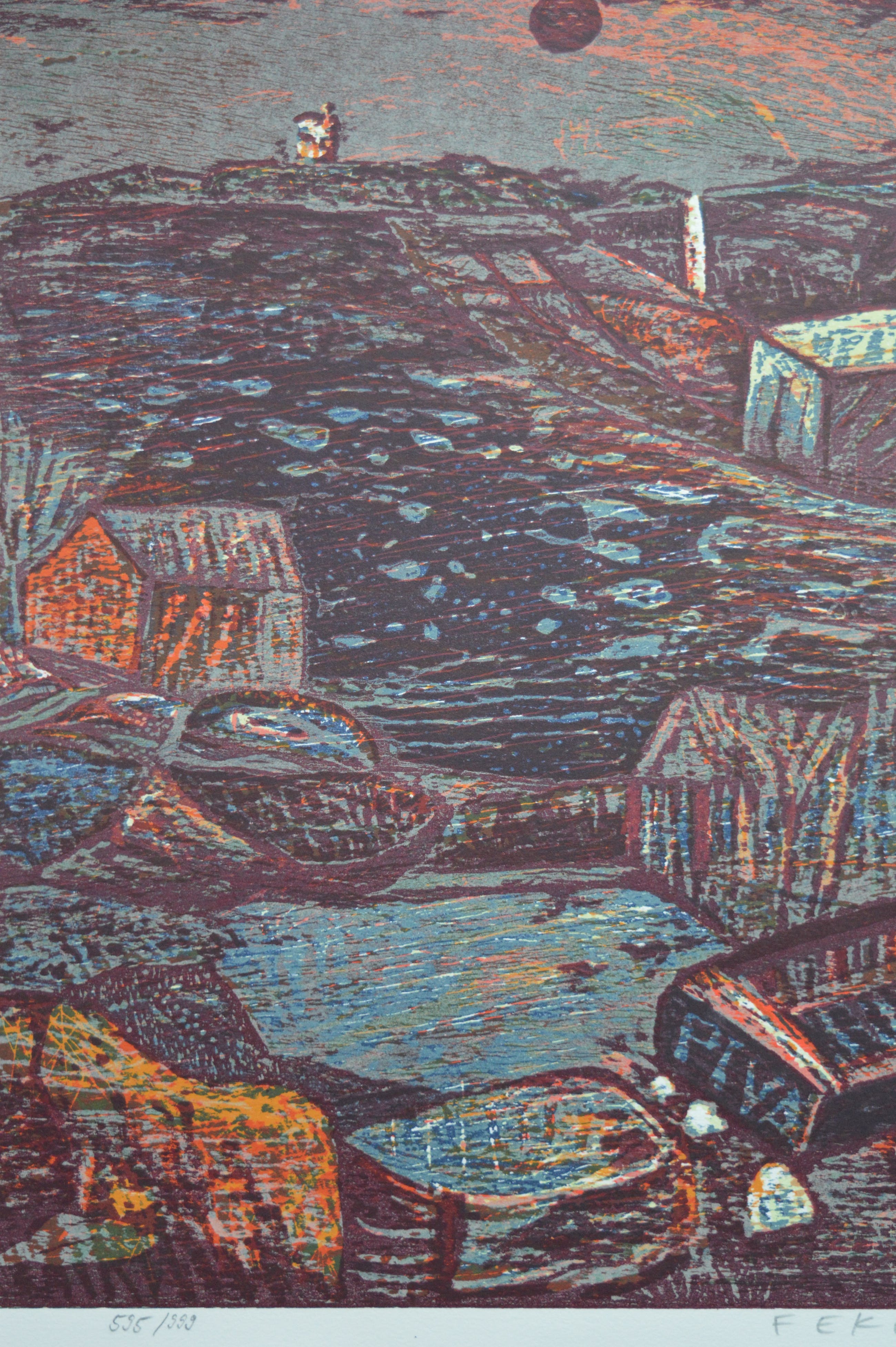 Expressionistisch landschap.Gesigneerd en genummerd in potlood.
