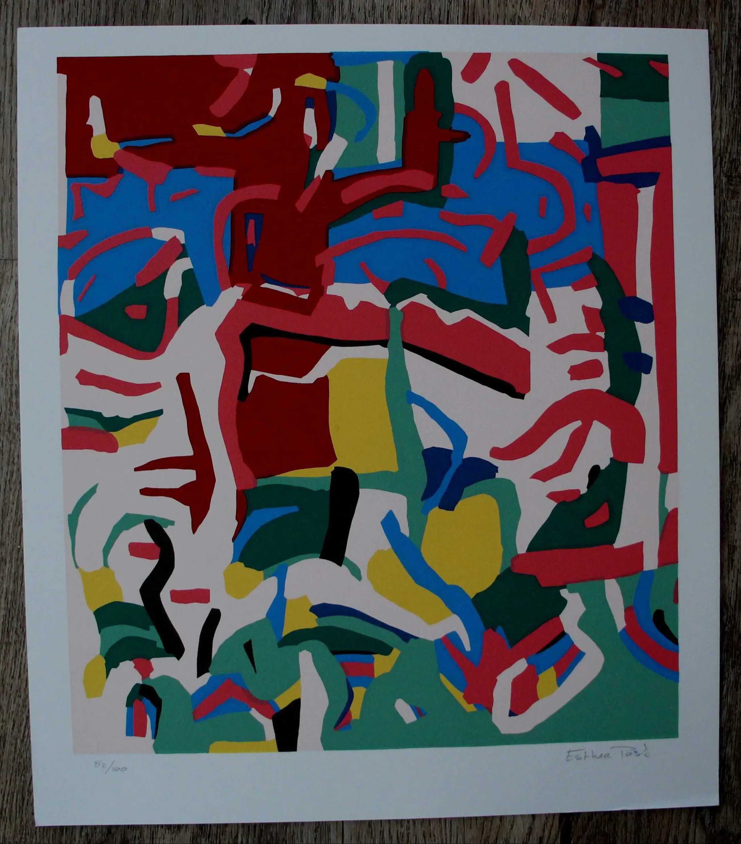 Zeefdruk van Esther Post. Nummer: 82/100. Afmetingen blad: H39 x b34cm. Afmetingen voorstellig: H34 x b30cm. Het werk is rechts onder, met potlood, gesigneerd door de kunstenares. De authenticiteit van dit werk wordt volledig gegarandeerd. Een certificaat van echtheid kan, op aanvraag, worden gemaild.
