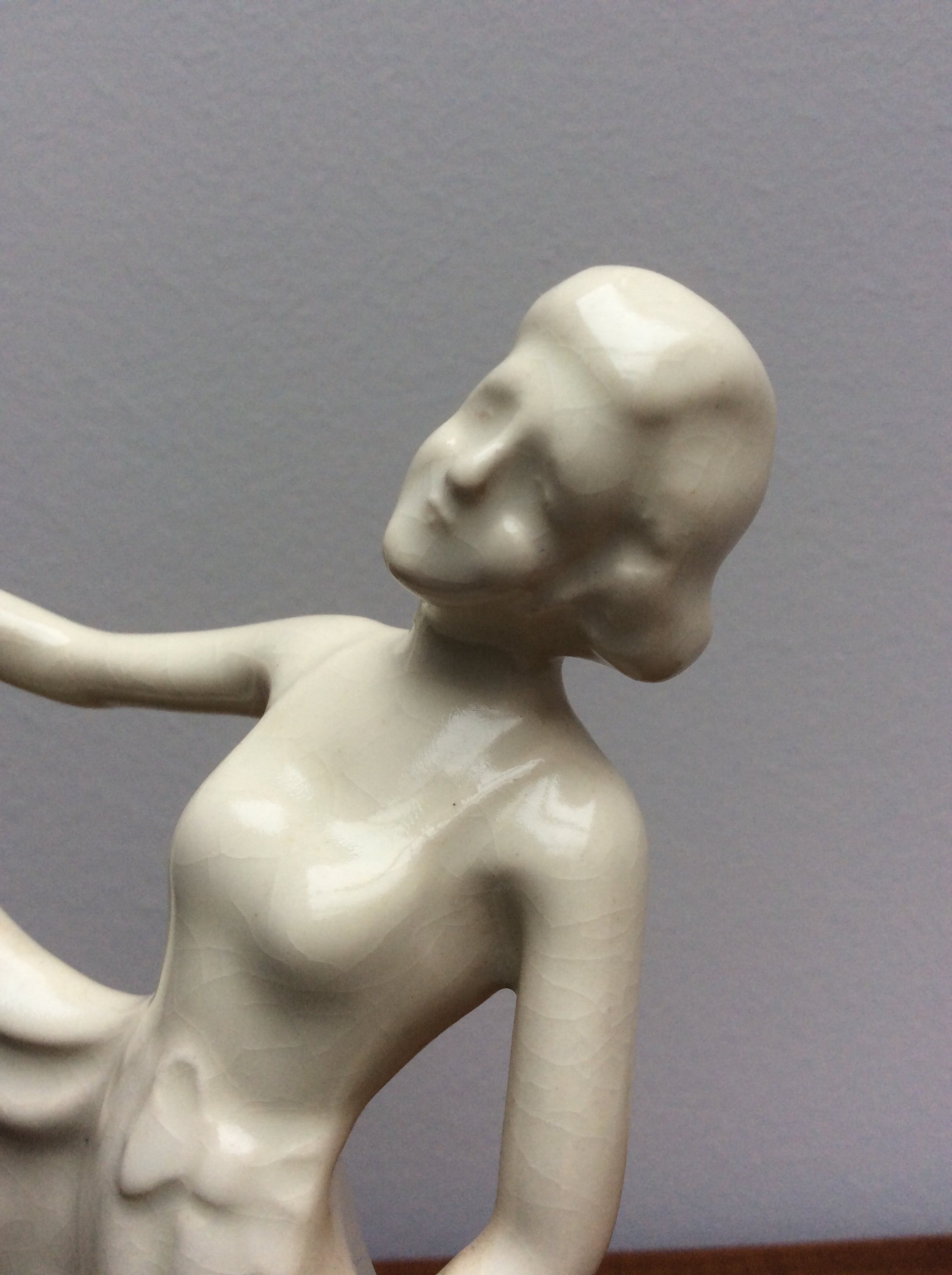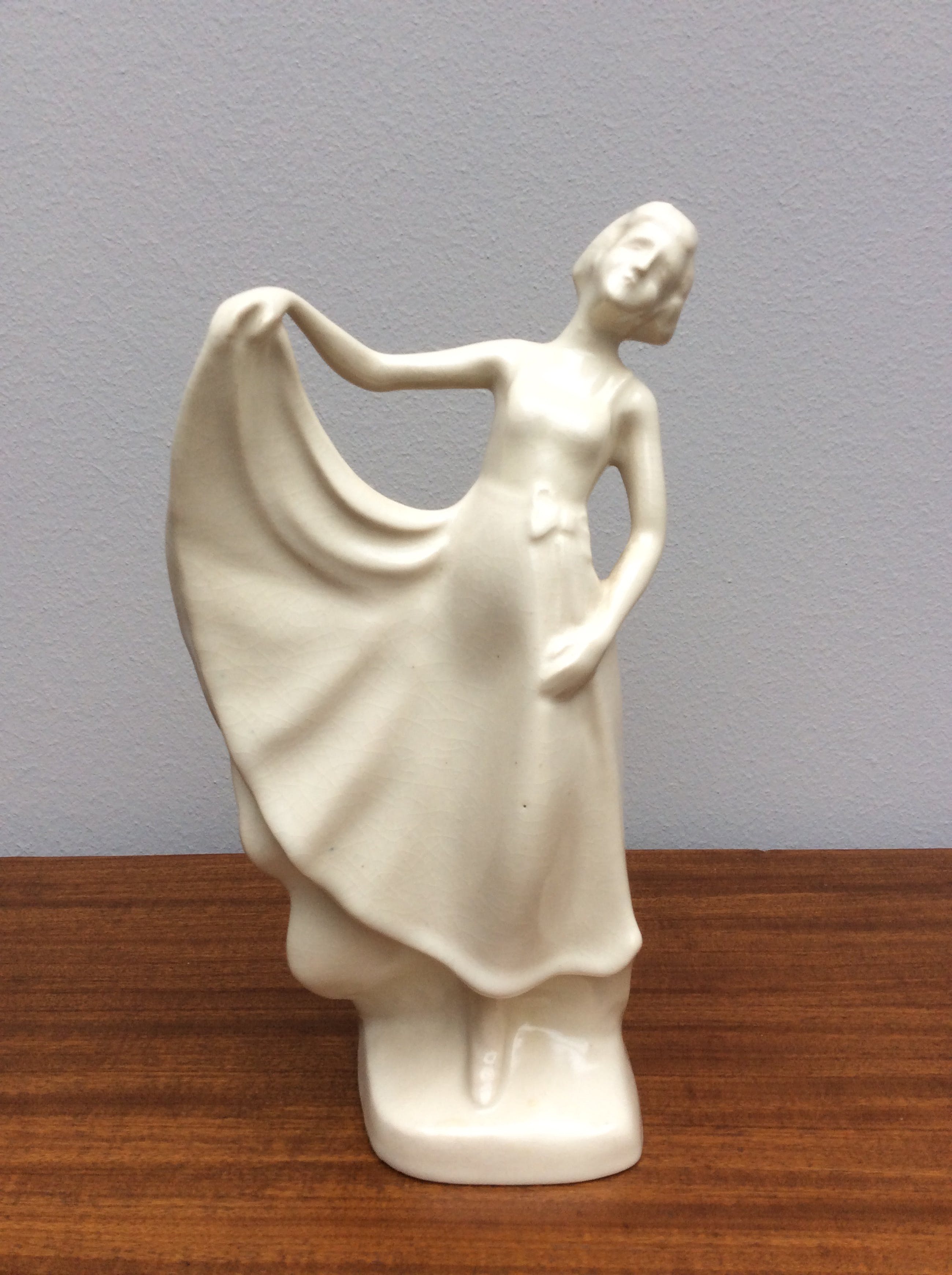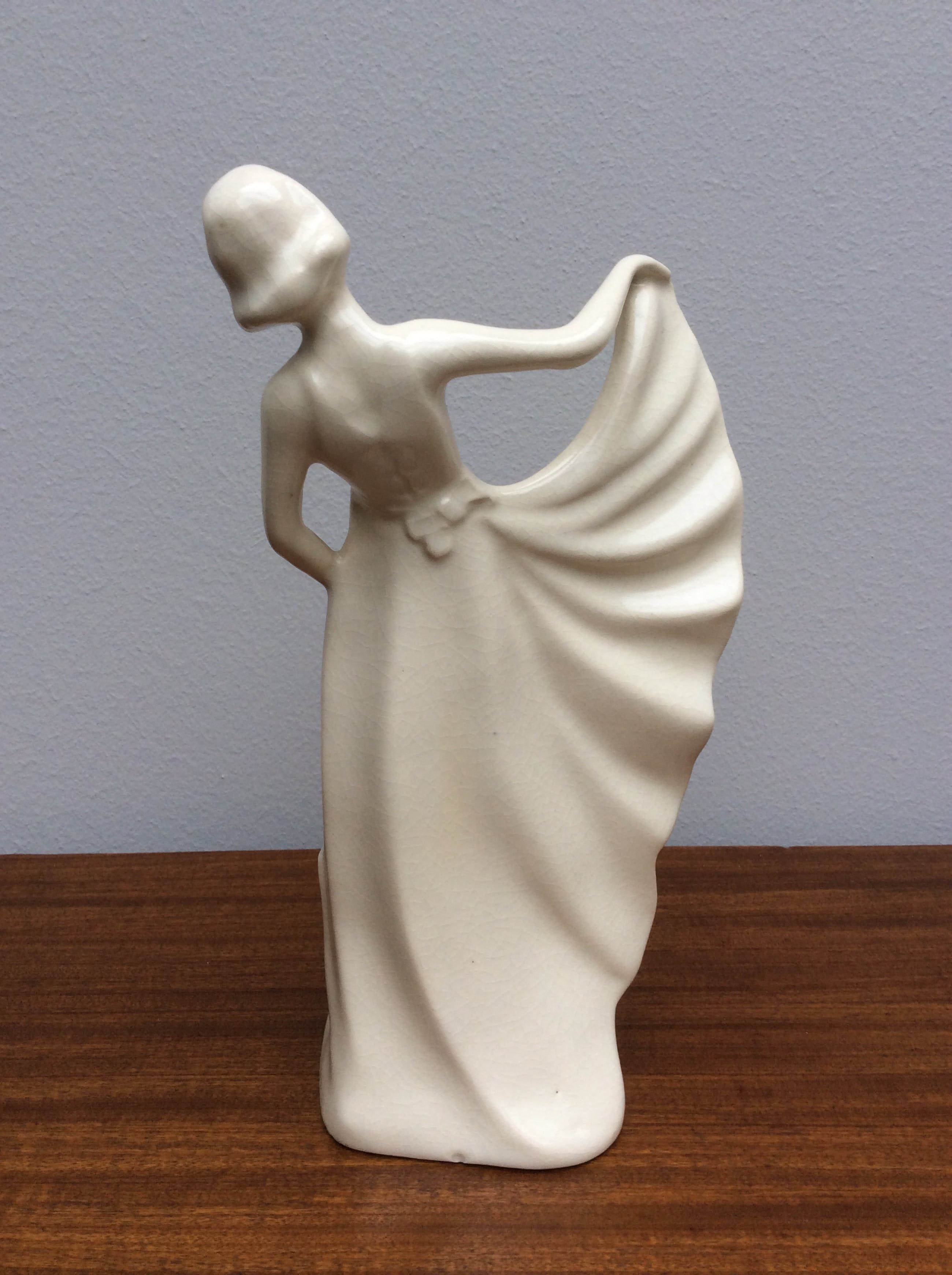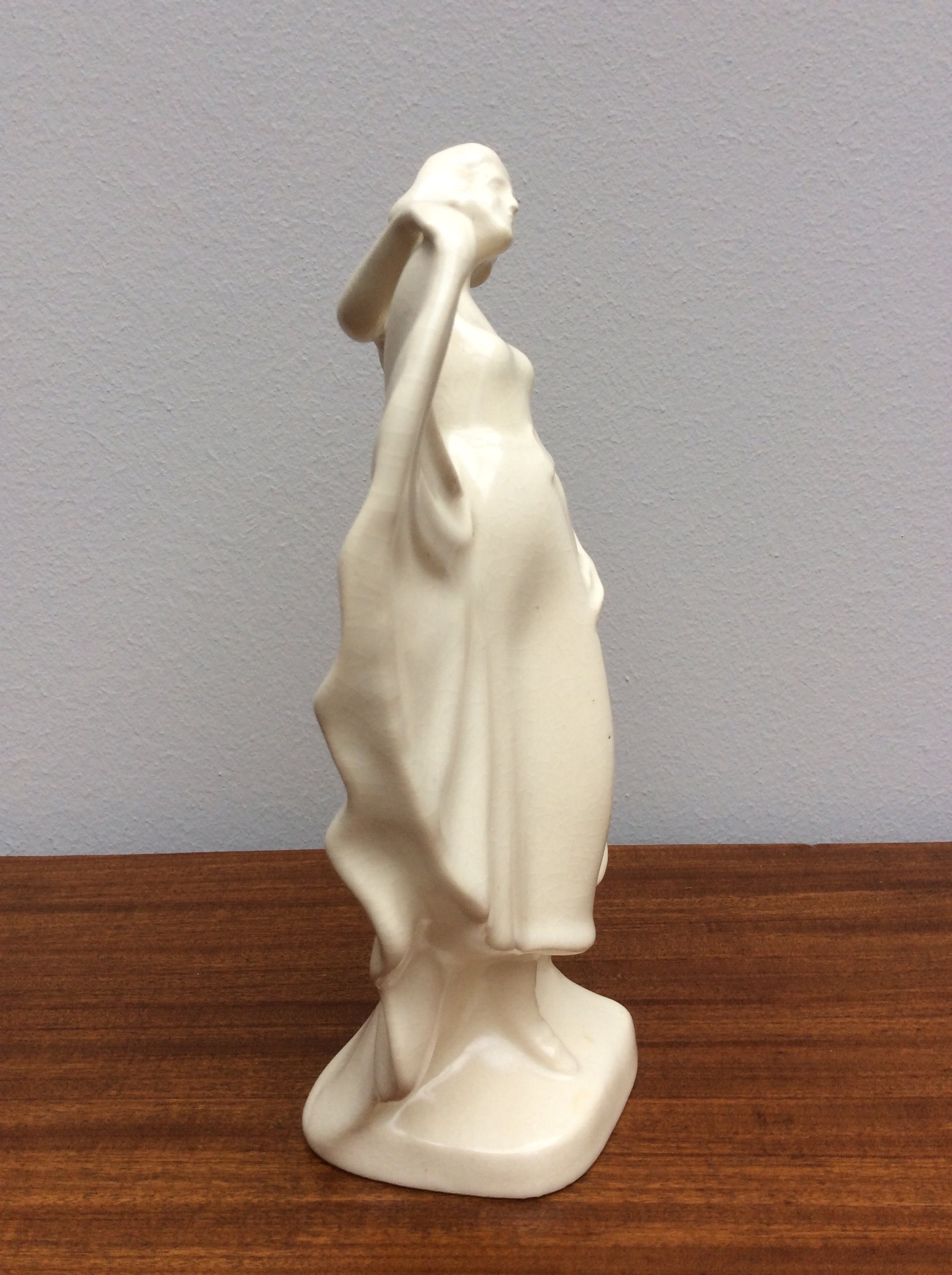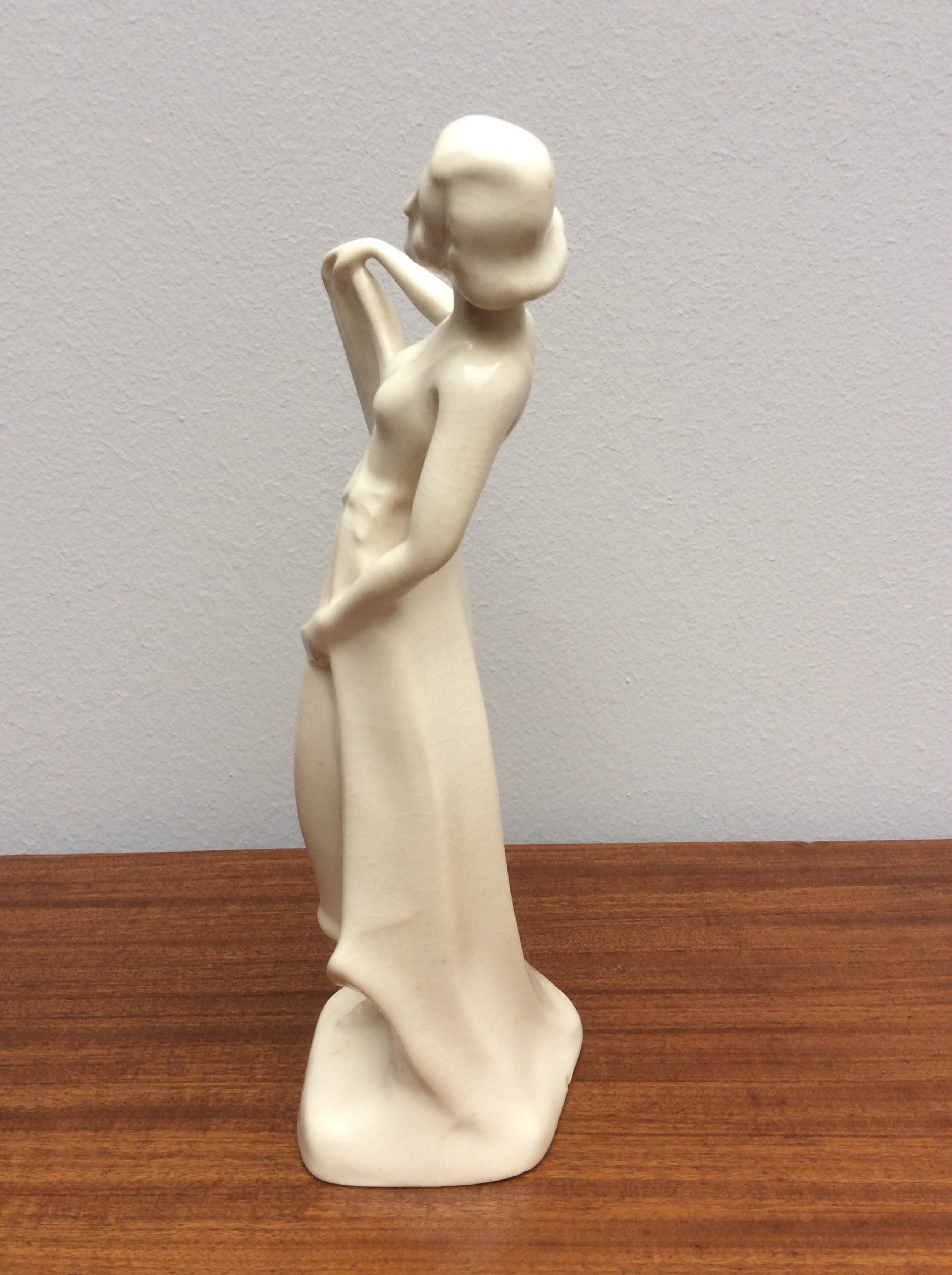 De Amsterdamse keramist, ontwerpster en sierkunstenaar Catharina Margaretha Marthina Lempke ( Etha, Eta ) ontwierp voor de koninklijke Plateelbakkerij Zuid-Holland-Holland haar figuratieve beeldjes.Beeldje in perfect staat, echter een Klein schiffertje Aandelen achterzijde. Zie foto.