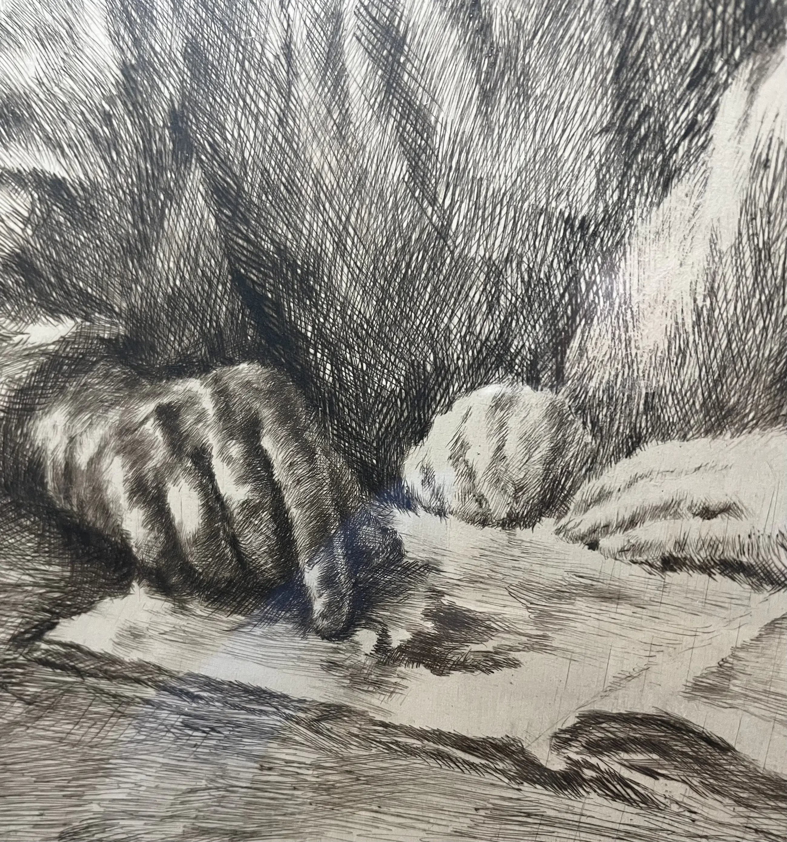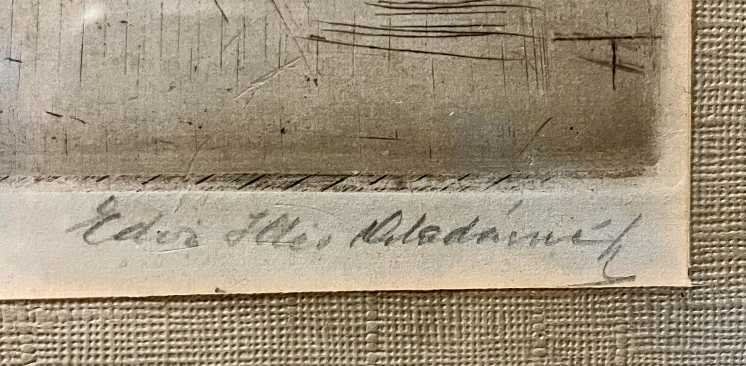 Originele ets "Grootmoeder en kleinkind" van de Hongaarse kunstenares Etelka Karadi Edvi Illés Aladárné. Het werk verkeert in uitstekende staat en is voorzien van een originele handtekening in potlood. Binnen afmeting 49x29 cm. Voorzien van originele lijst uit de periode. Een hoek van de passe partout vertoont lichte waterplek.(zie afbeelding) Aangekocht op een vintage/antiekmarkt. Wordt verpakt in een zeer stevige en veilige verpakking. Ets + droge naald (originele handgedrukte plaatdruk). Sterke diagonale achtergrond en goede contrastdruk. Een vroegdruk van hoge kwaliteit met messcherpe contouren.