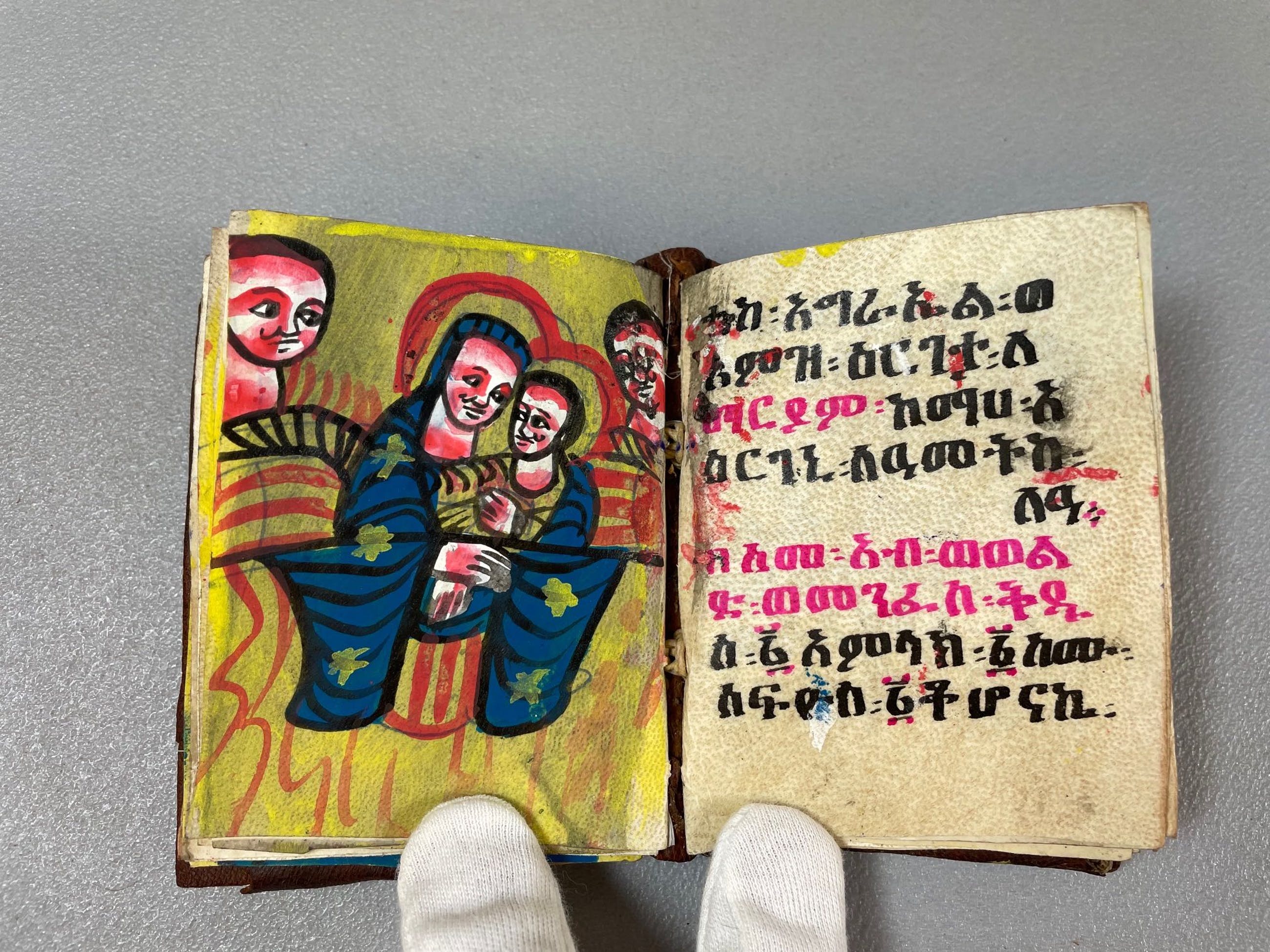 Ethiopian coptic handwritten Ge’ez travel manuscript with 4 handpainted icons.