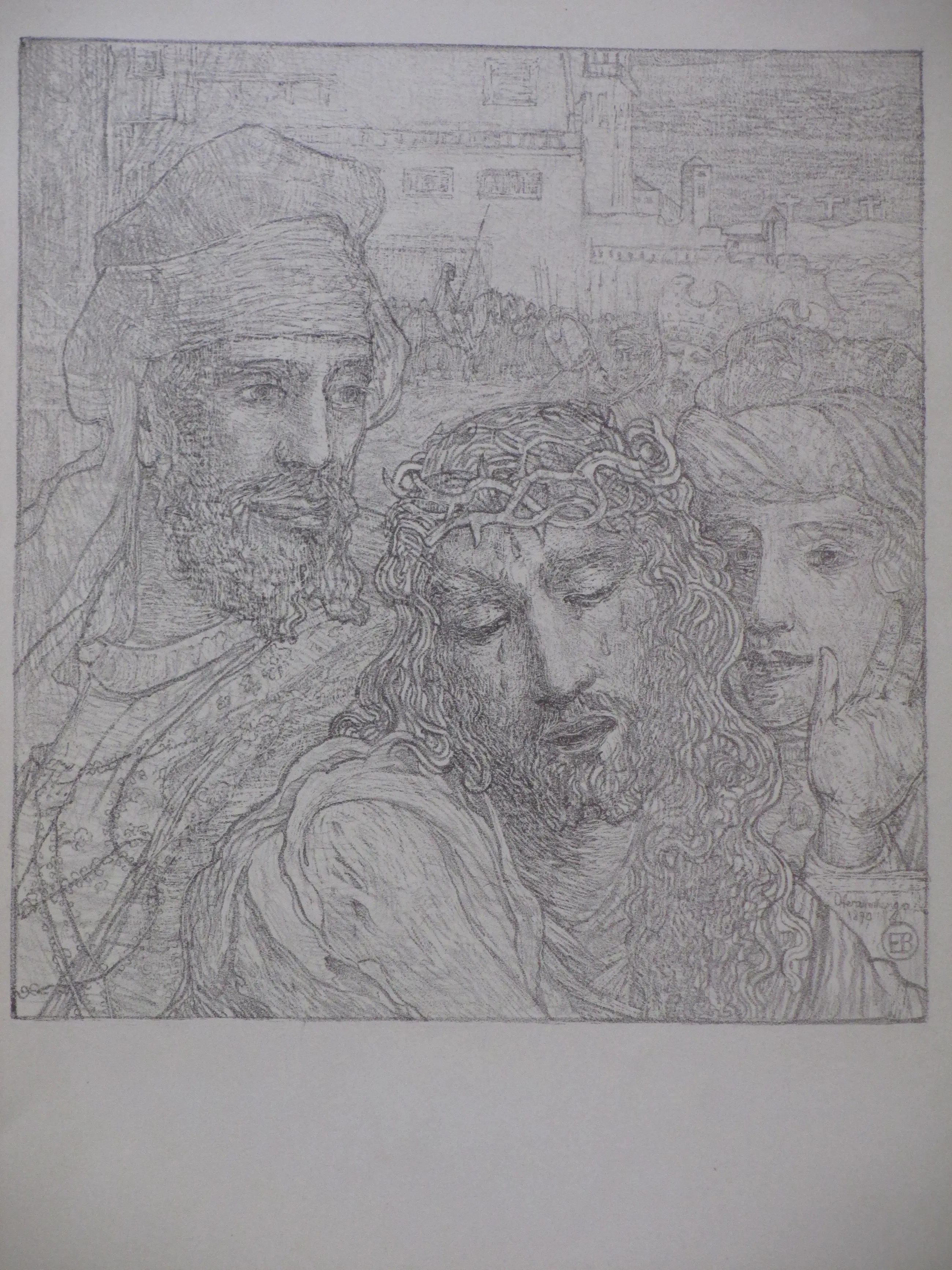 Litho door Etienne Bosch Voorstelling van de Kruisgang Losbladig, beeldmaat 24x22,5, bladmaat 34x27 Gemonogrammeerd en gedateerd r.o. in de druk 'EB' en '1899' Authenticiteit volledig gegarandeerd