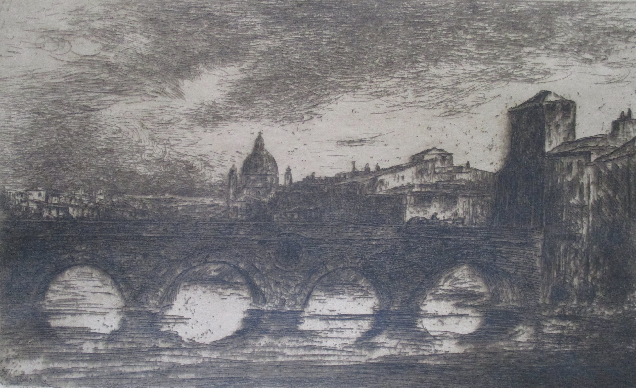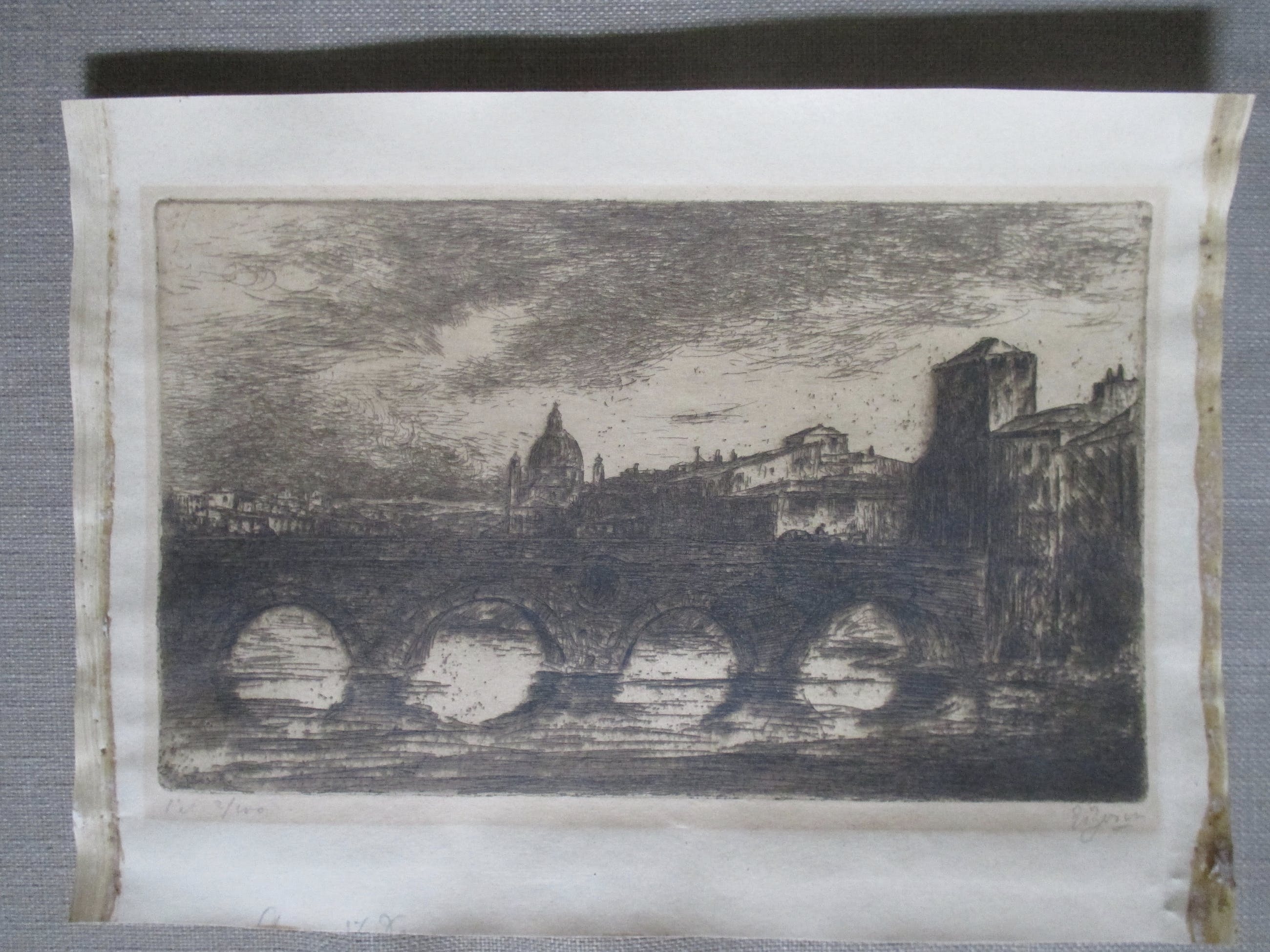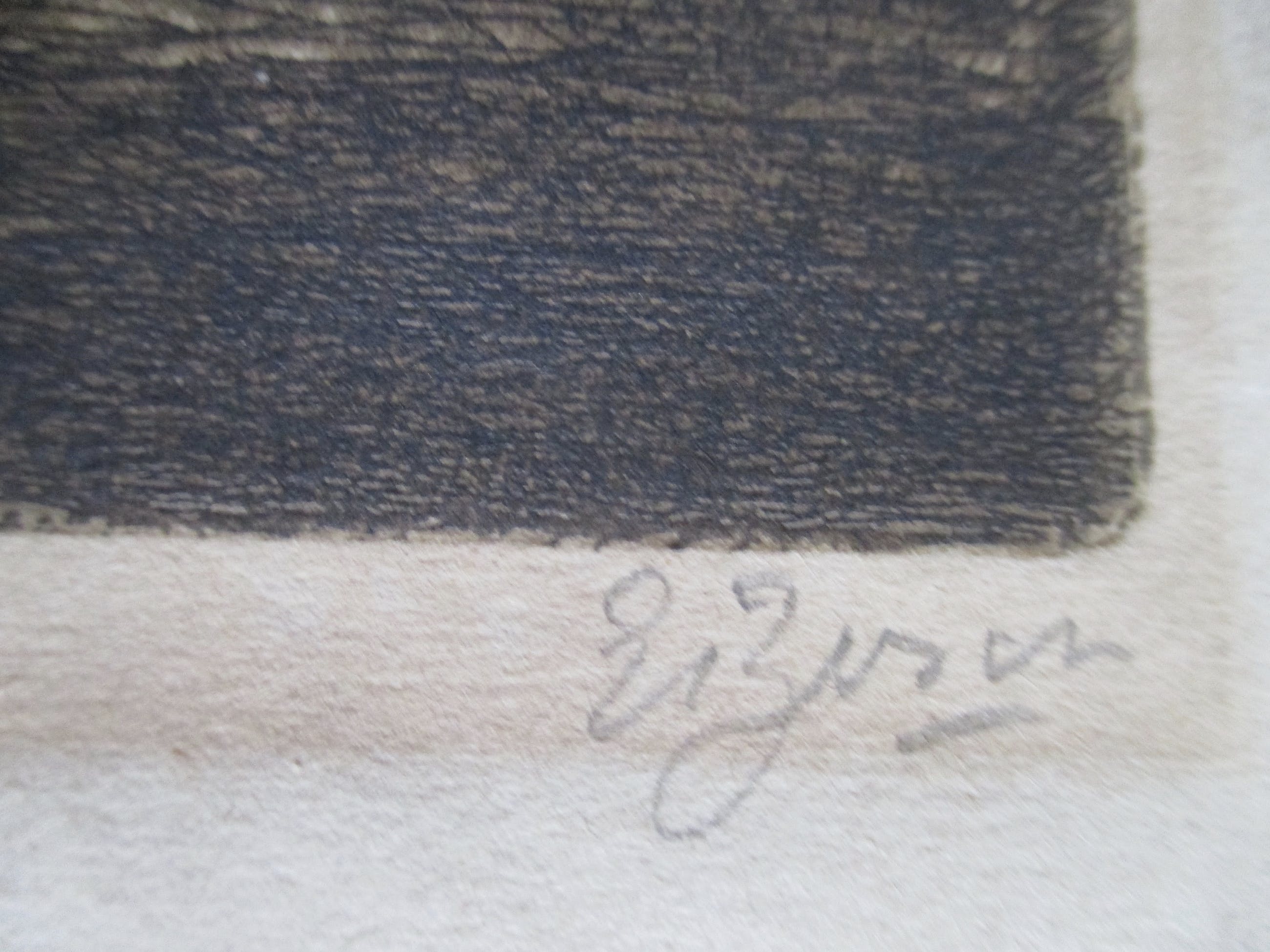 Ets van Etienne Bosch, gesigneerd en genumemrd in potlood. Tevens l.o gesigneerd in de plaat.
