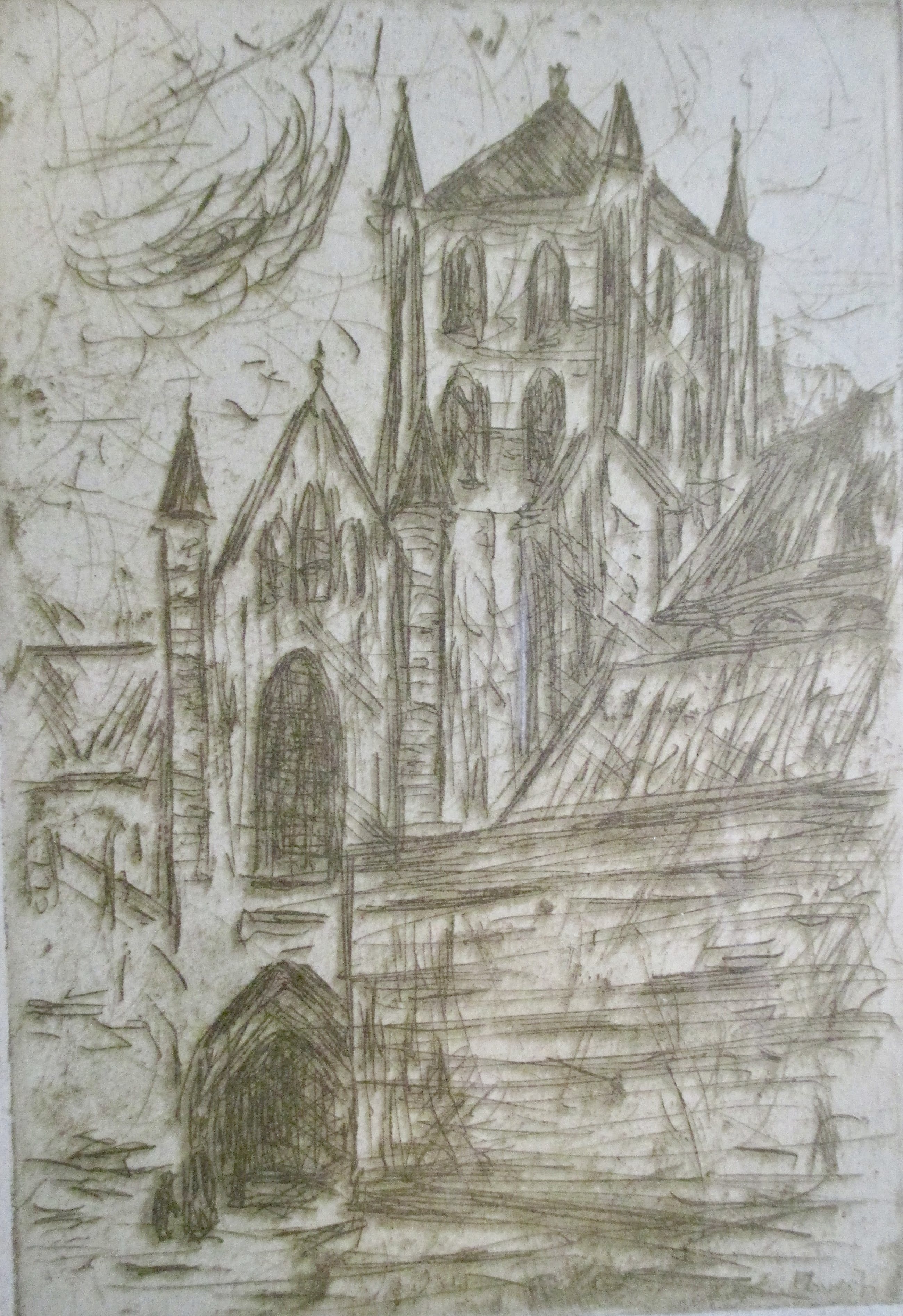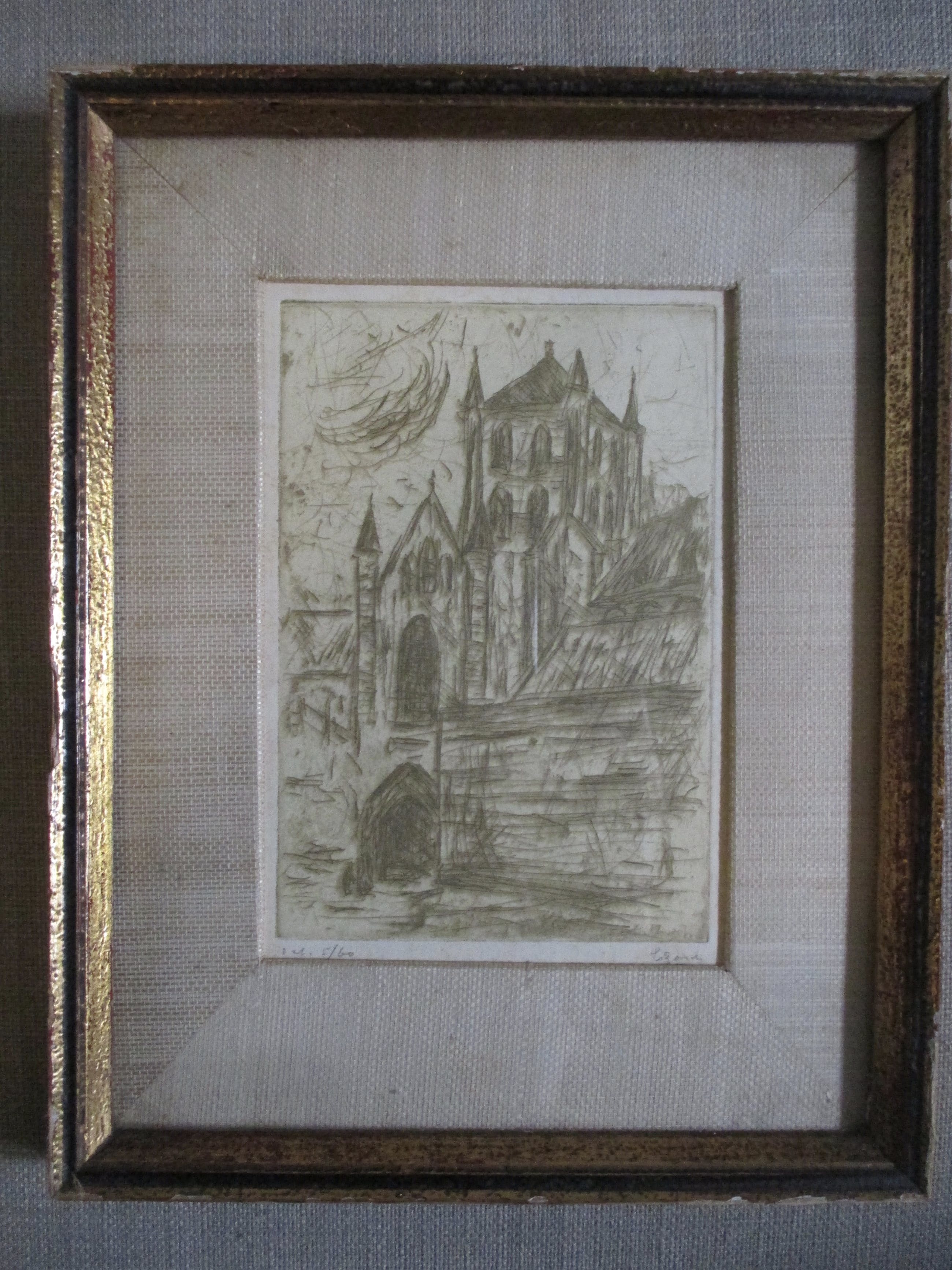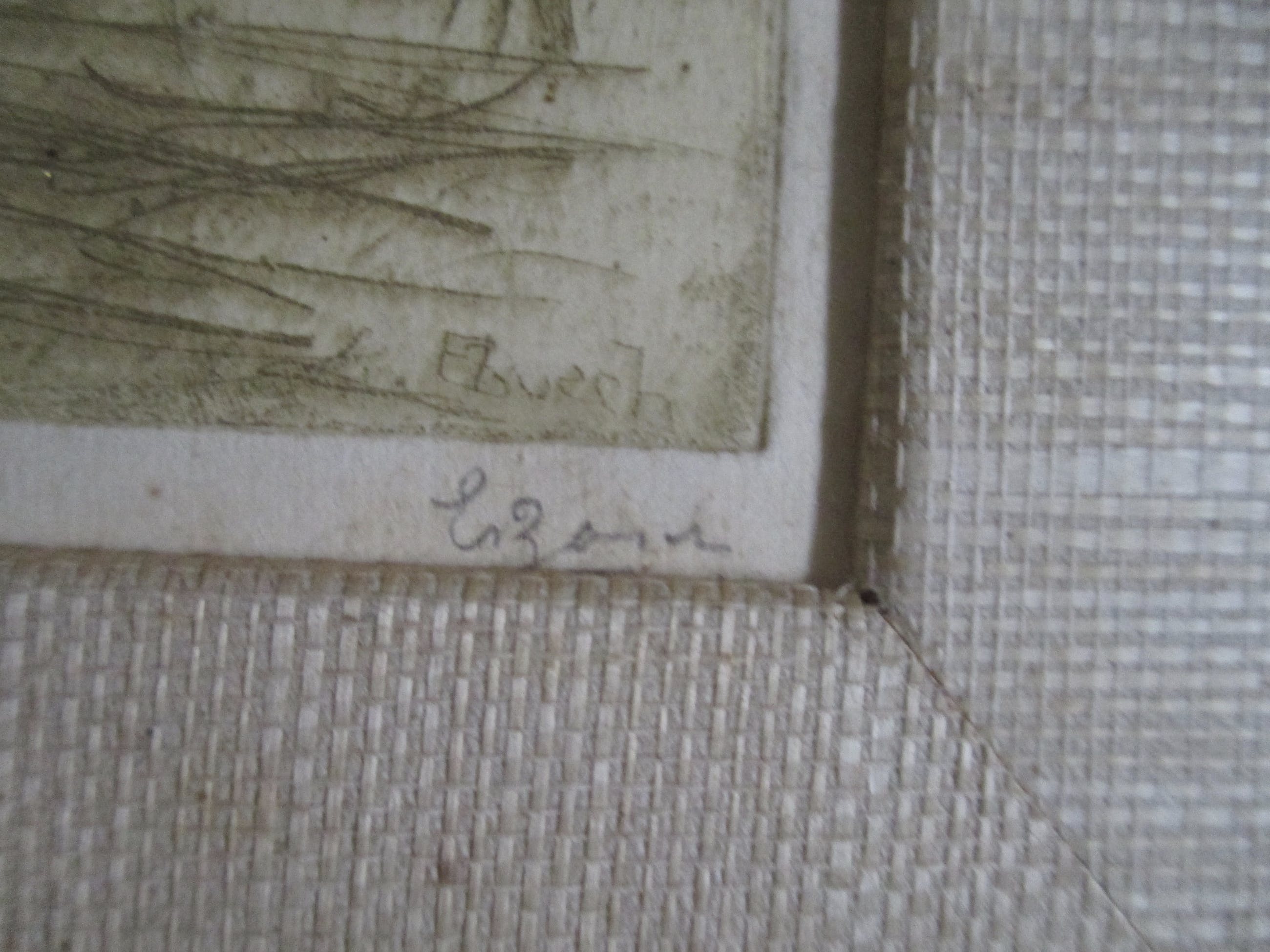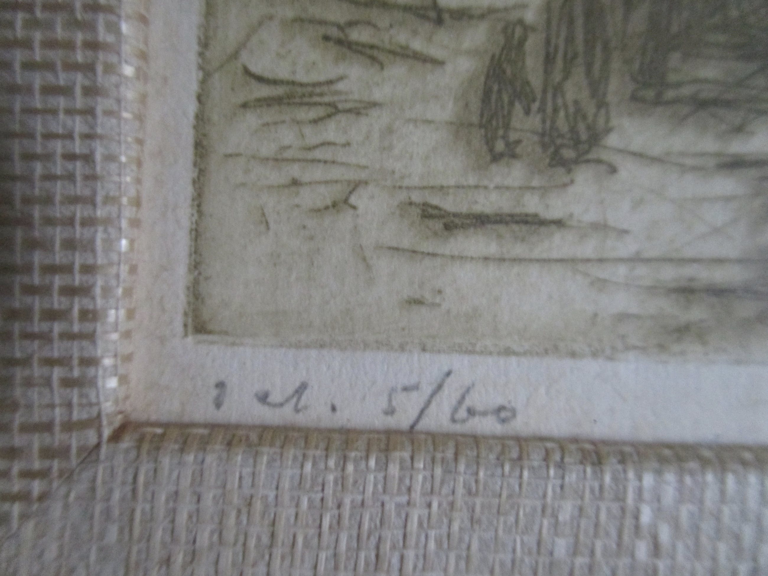 Ets van Etienne Bosche, gesigneerd en genummerd in potlood. Ingelijst achter glas. verzending 8,25, aangetekend 10,20