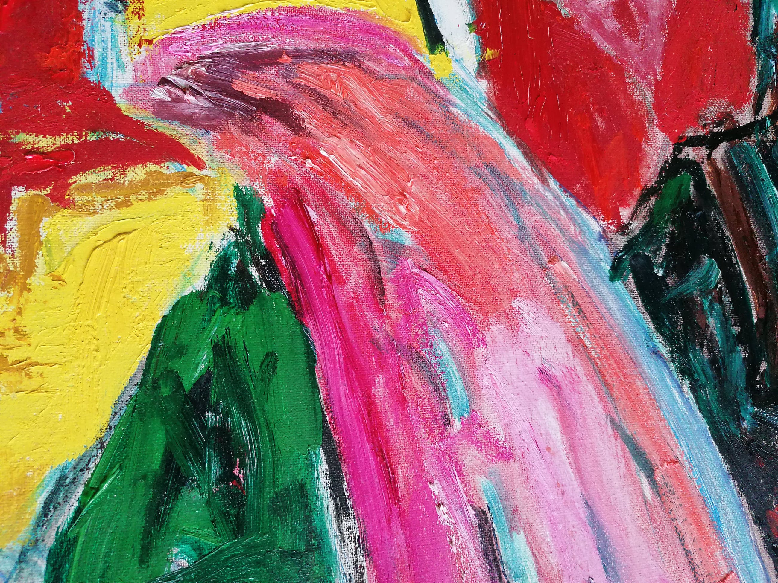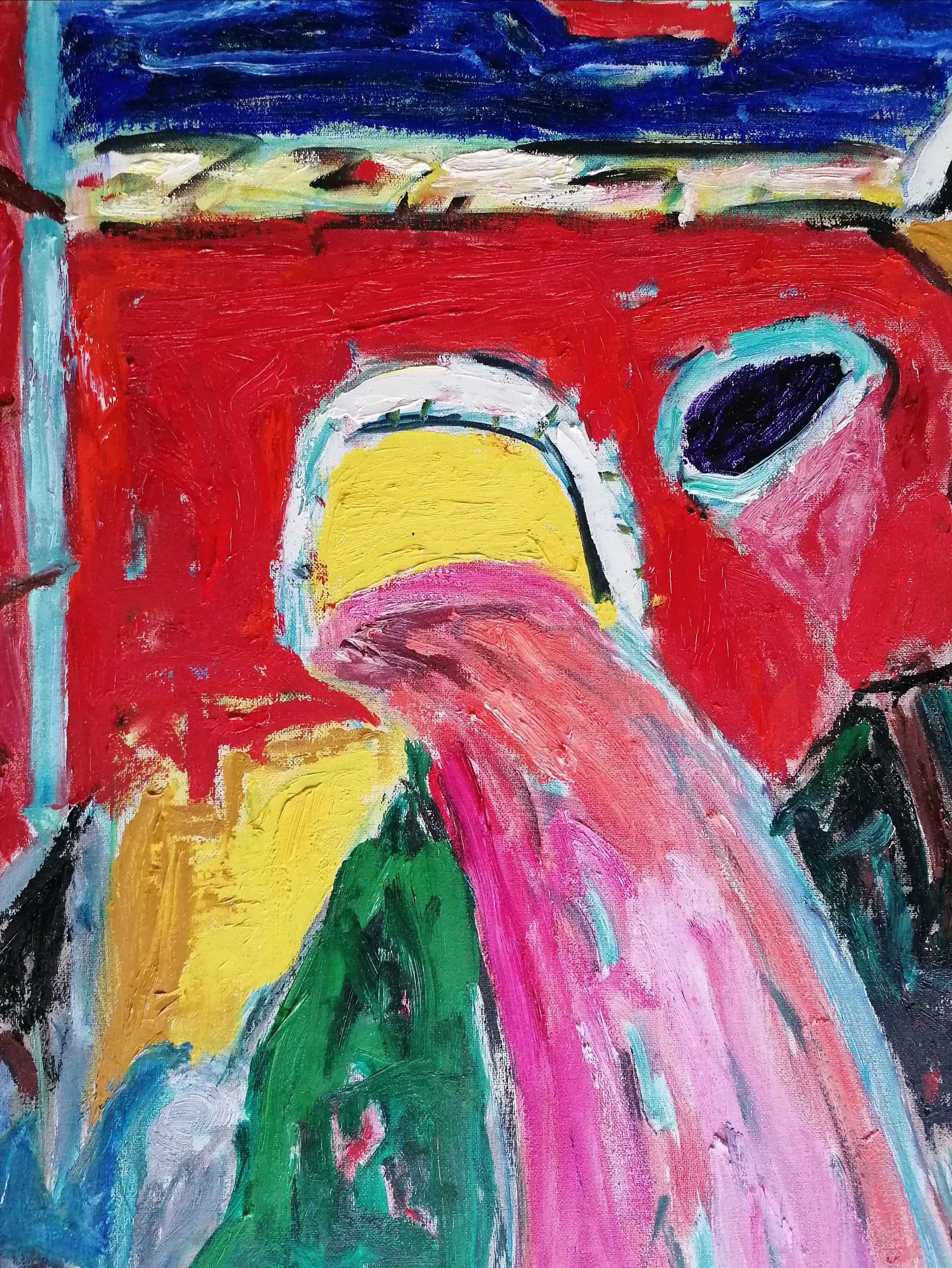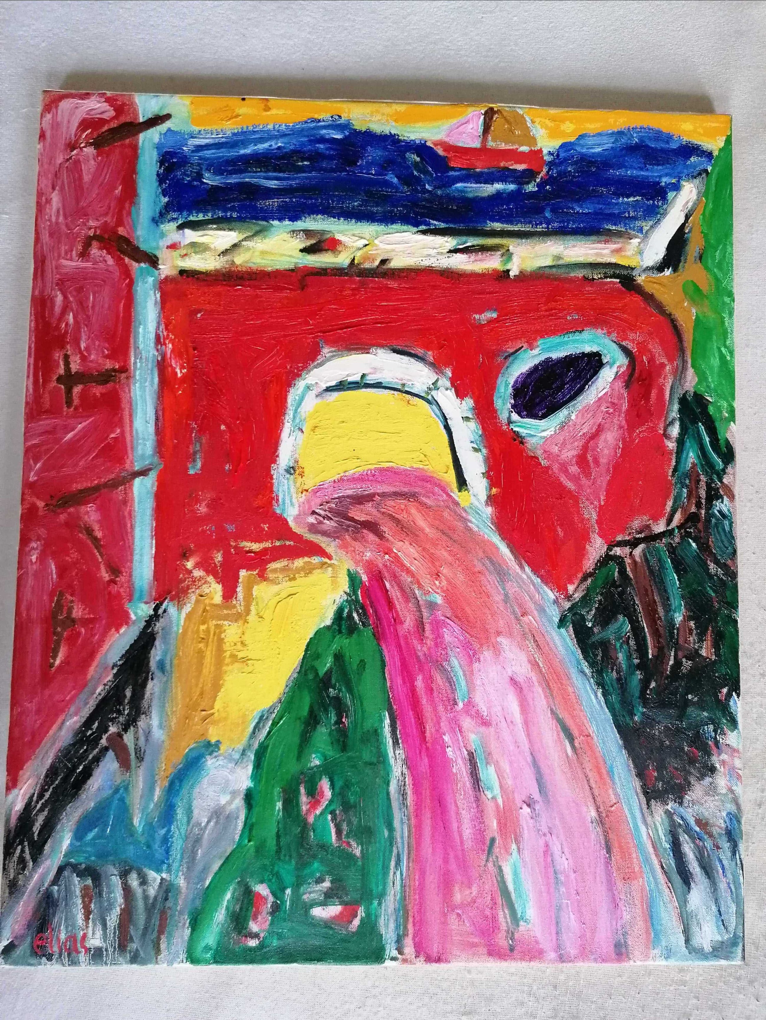Prachtig kleurrijk olieverfschilderij. Krachtige toetsen. Zeer modernistisch tafereel. Zeer bekende kunstenaar, die vertegenwoordigd is in verscheidene musea. Heeft destijds al 65000BEF gekost. Opsturen met koerierdienst ook mogelijk.
