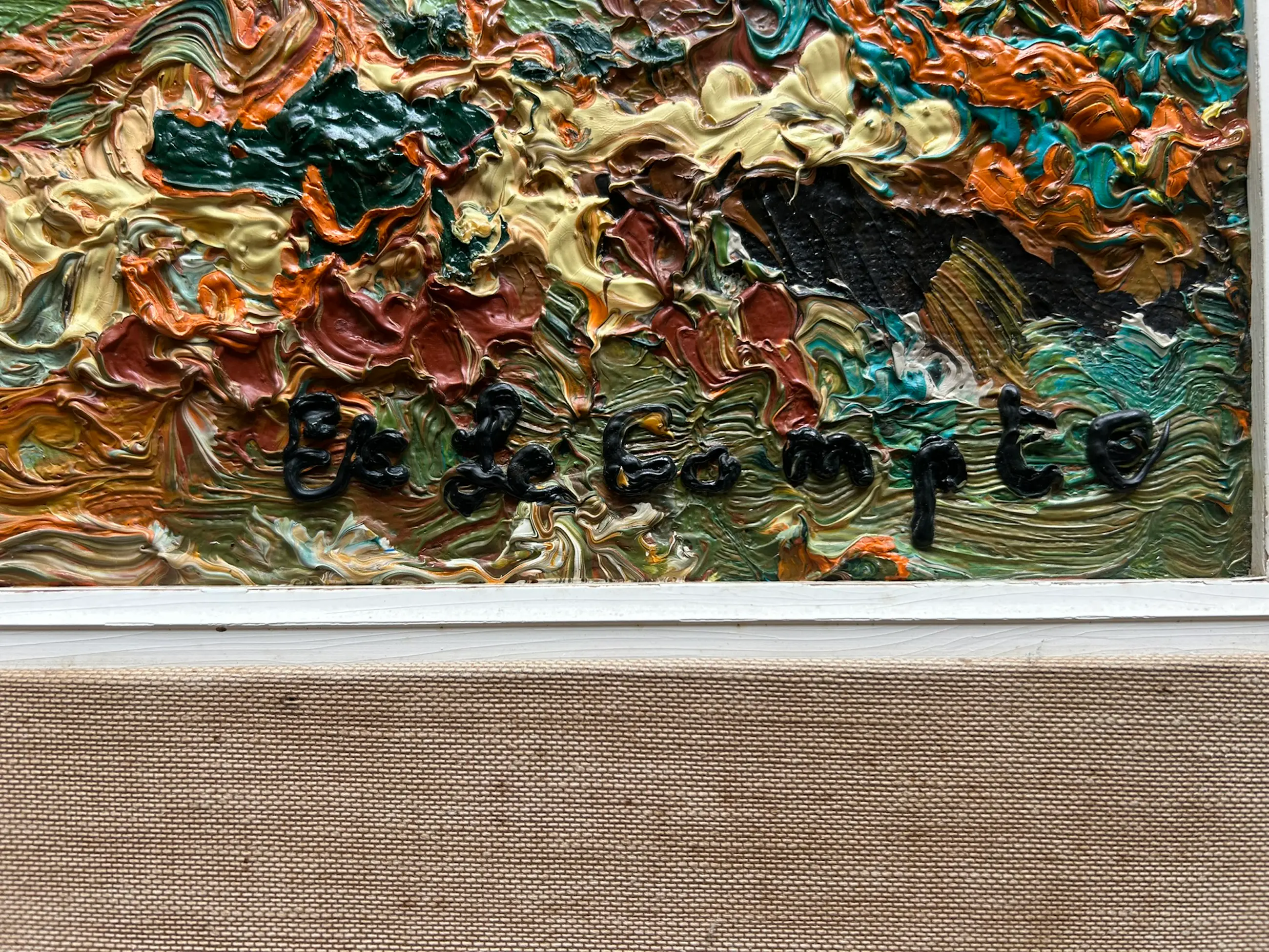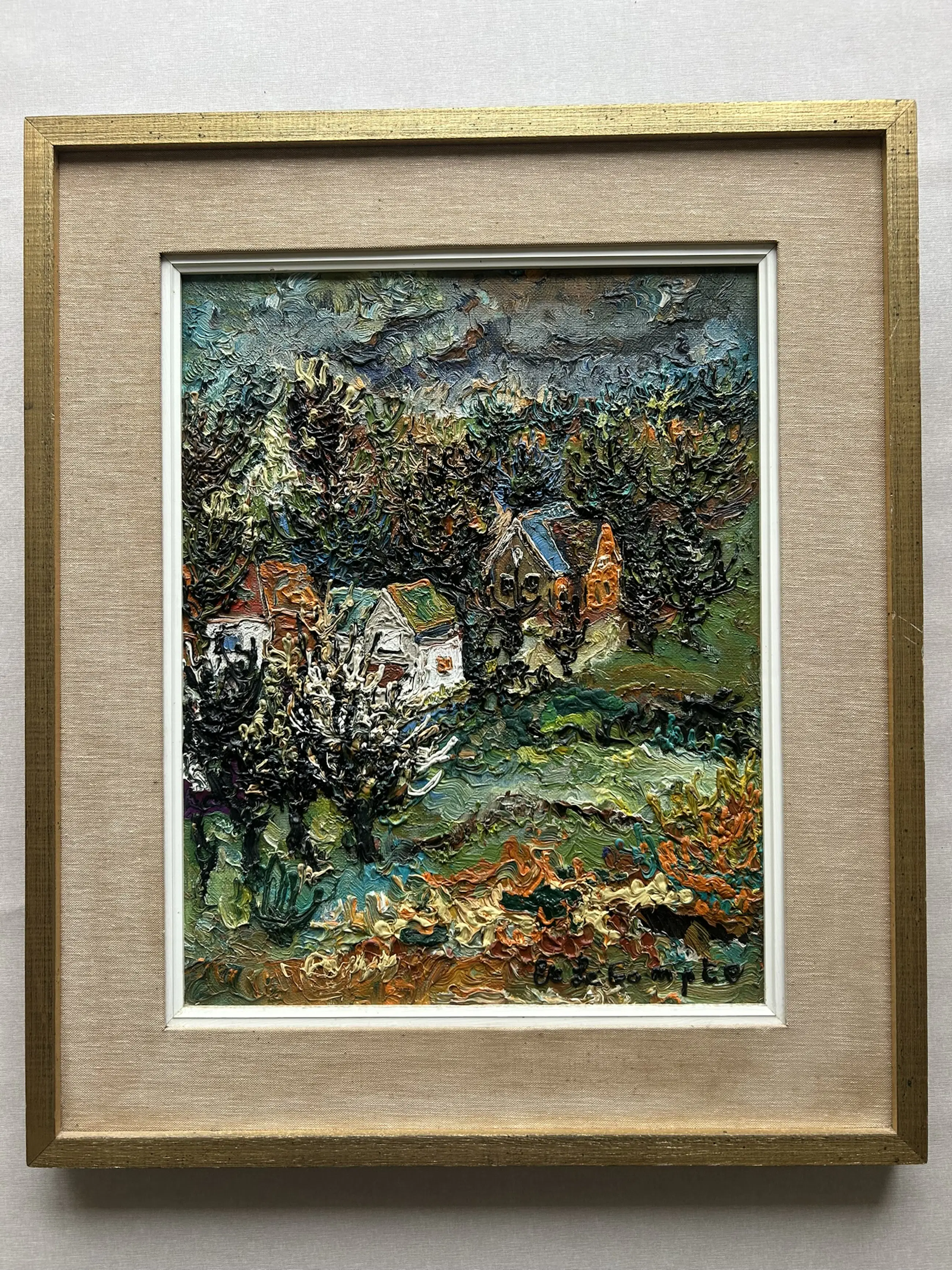 Olieverfschilderij op doek, ingelijst en handgesigneerd