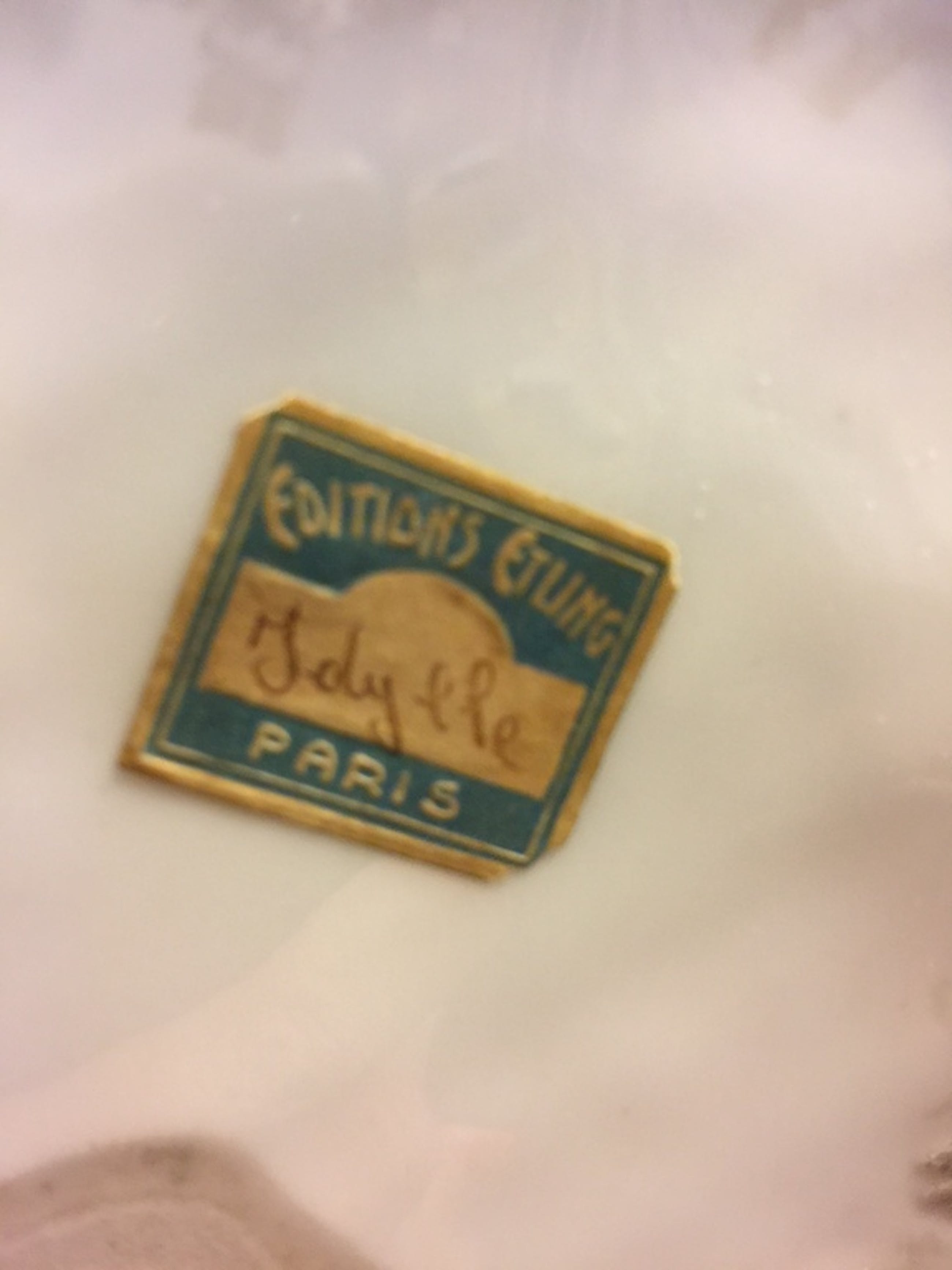 Het beeld heet Ydille en is op zijn breedst 36 cm en op zijn hoogst 24 cm het weegt 1,5 kg. Het beeld is in mint conditie, gestickerd met Ydille, en met het meegebakken label France, Editions Etling Paris.