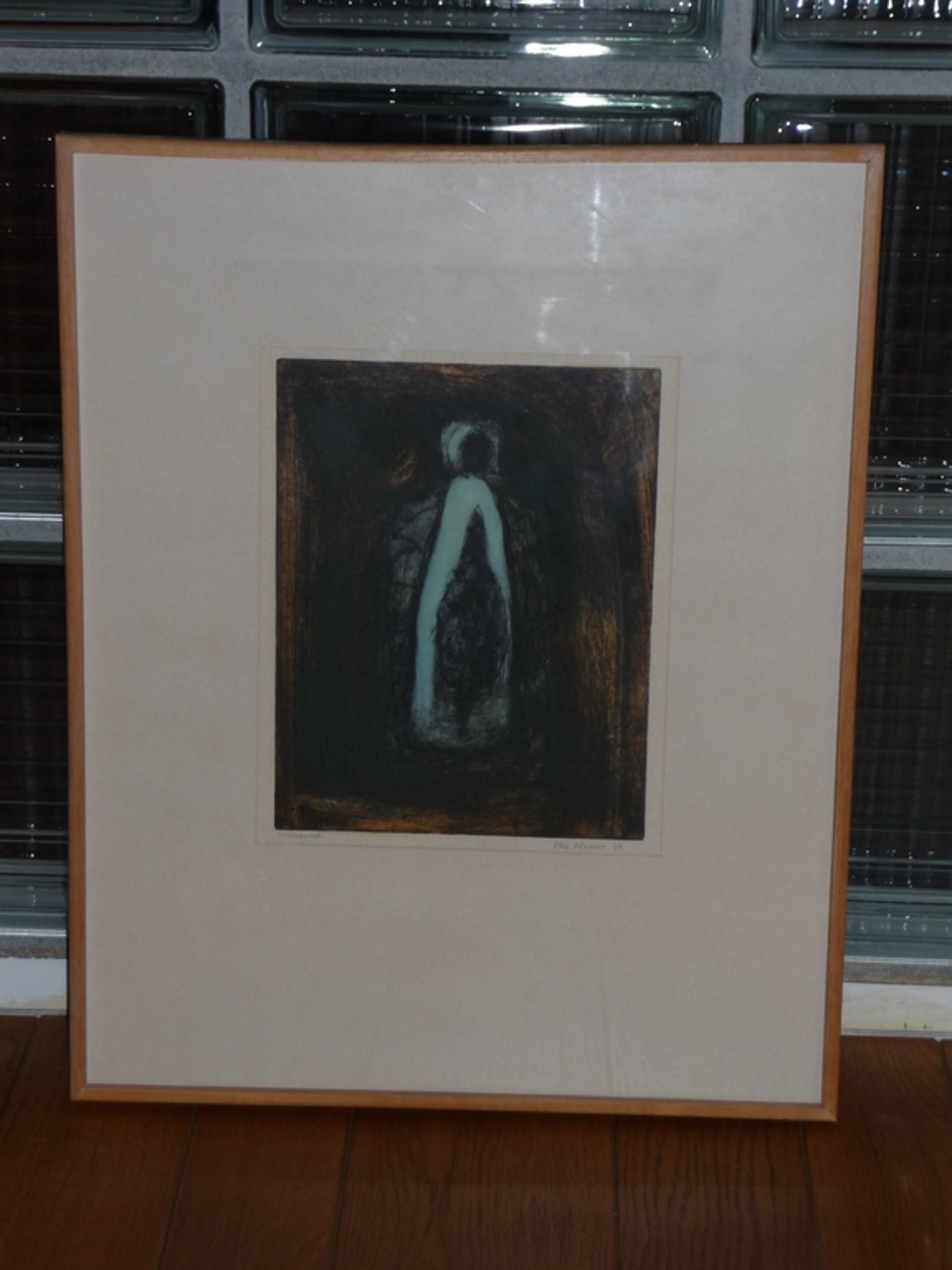 Het betreft een kleurenets/aquarel, zoals door de kunstenares zelf linksonder aangegeven. Het werk is rechtsonder gesigneerd met toevoeging van het jaartal ‘93 en met passepartout onder glas in hout ingelijst in zeer goede staat. De afmeting is (buitenkant lijst) 41 x 51 cm. Zie ook de website van de kunstenares: http://www.ettamaduro.nl/