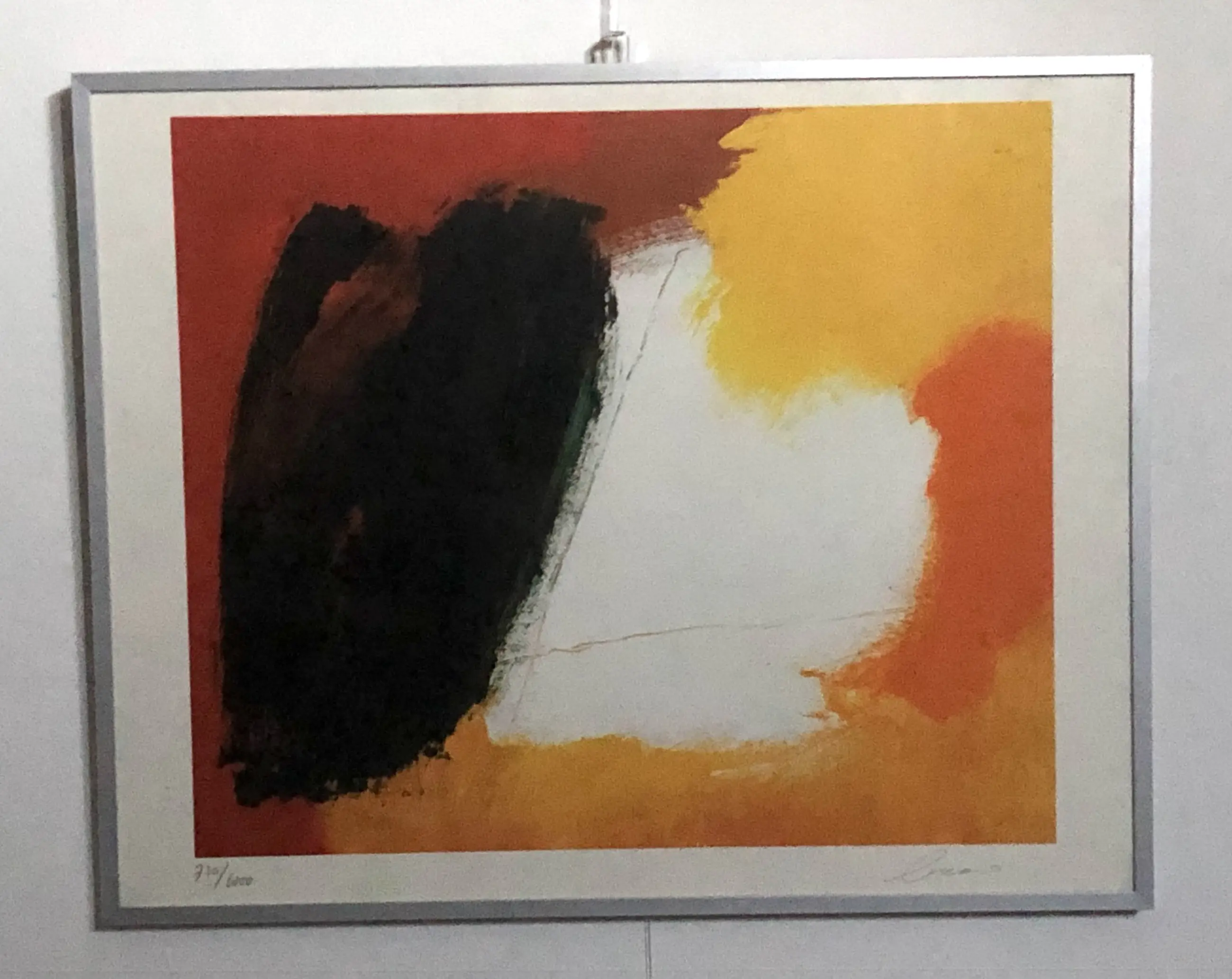 Abstract werk van Brands die een korte tijd deel uit maakte van de CoBrA-beweging. In 1946, tijdens de tentoonstelling ‘Jonge Schilders’ in het Amsterdamse Stedelijk Museum trekt Brands de aandacht met zijn Deksel des hemels, een pannendeksel gevuld met witte verfspatjes die een melkwegstelsel uitbeelden en handvaten in de vorm van een regenboog. Karel Appel, Anton Rooskens en Corneille, onder de indruk van Brands’ speelse kunstuitingen, vragen hem toe te treden tot de Experimentele Groep REFLEX, die kort daarna opgaat in de CoBrA-beweging. Wat deze schilders bond was een heftig verlangen naar een vrije, spontane uitdrukkingswijze. Na de geruchtmakende tentoonstelling van CoBrA in 1949 echter besluit Brands de groep alweer te verlaten. Hij voelt zich wel aangetrokken tot het ondogmatische karakter van CoBrA, maar neigt meer naar een solitair kunstenaarschap. Het werk is genummerd en gesigneerd en gevat in een nette lijst.