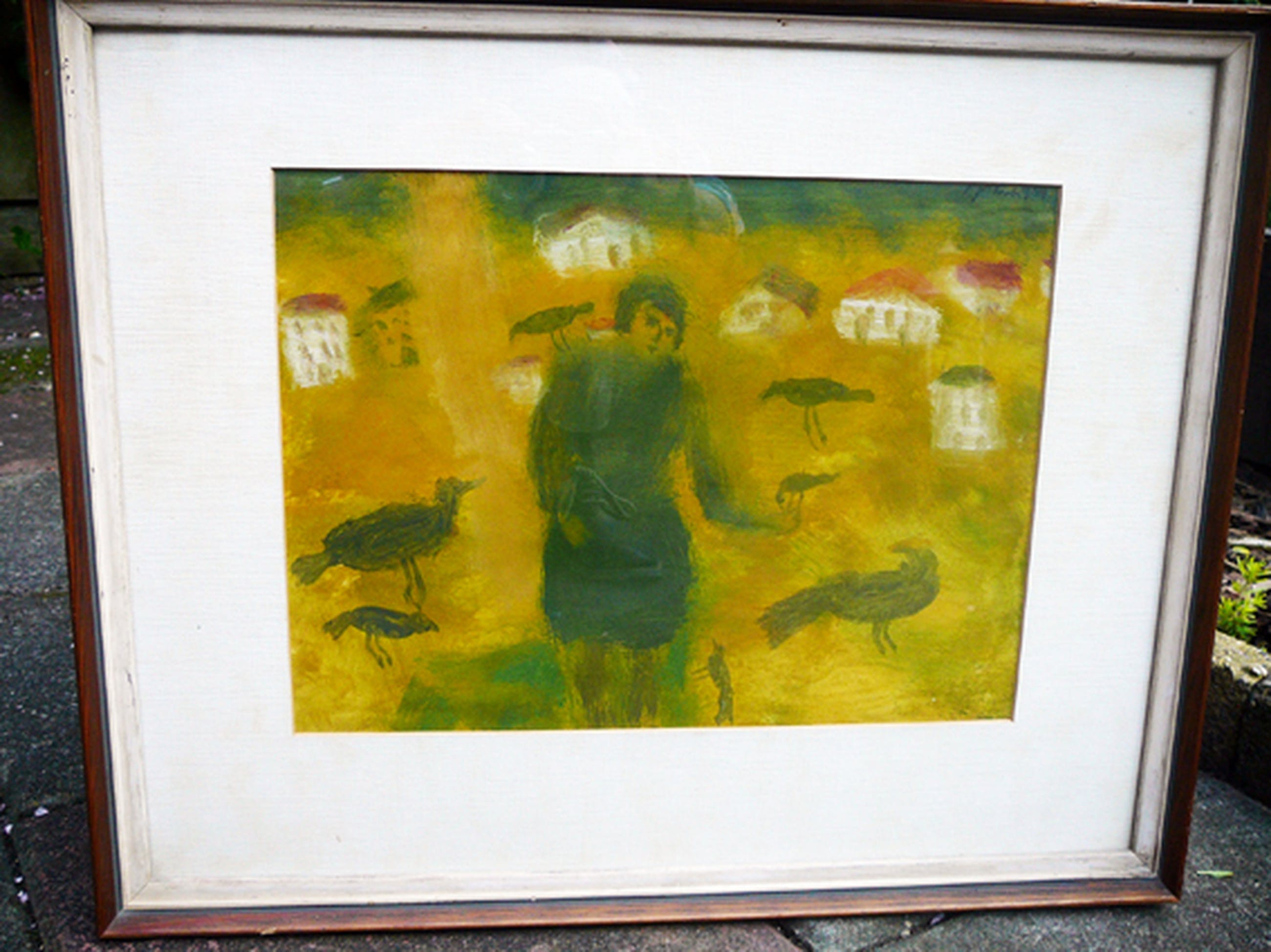 Exclusieve en originele gouache van de hand van Eugene Brands, getiteld 'Vogelvoerend meisje'. Rechtsboven gesigneerd en gedateerd 6 juli 1954. Met potood betiteld aan de achterzijde en nogmaals voluit gesigneerd. In originele lijst achter glas met rondom wat vlekjes op het passepartout. Overigens in perfecte conditie. Af te halen in Utrecht of aangetekende verzending (15 euro).