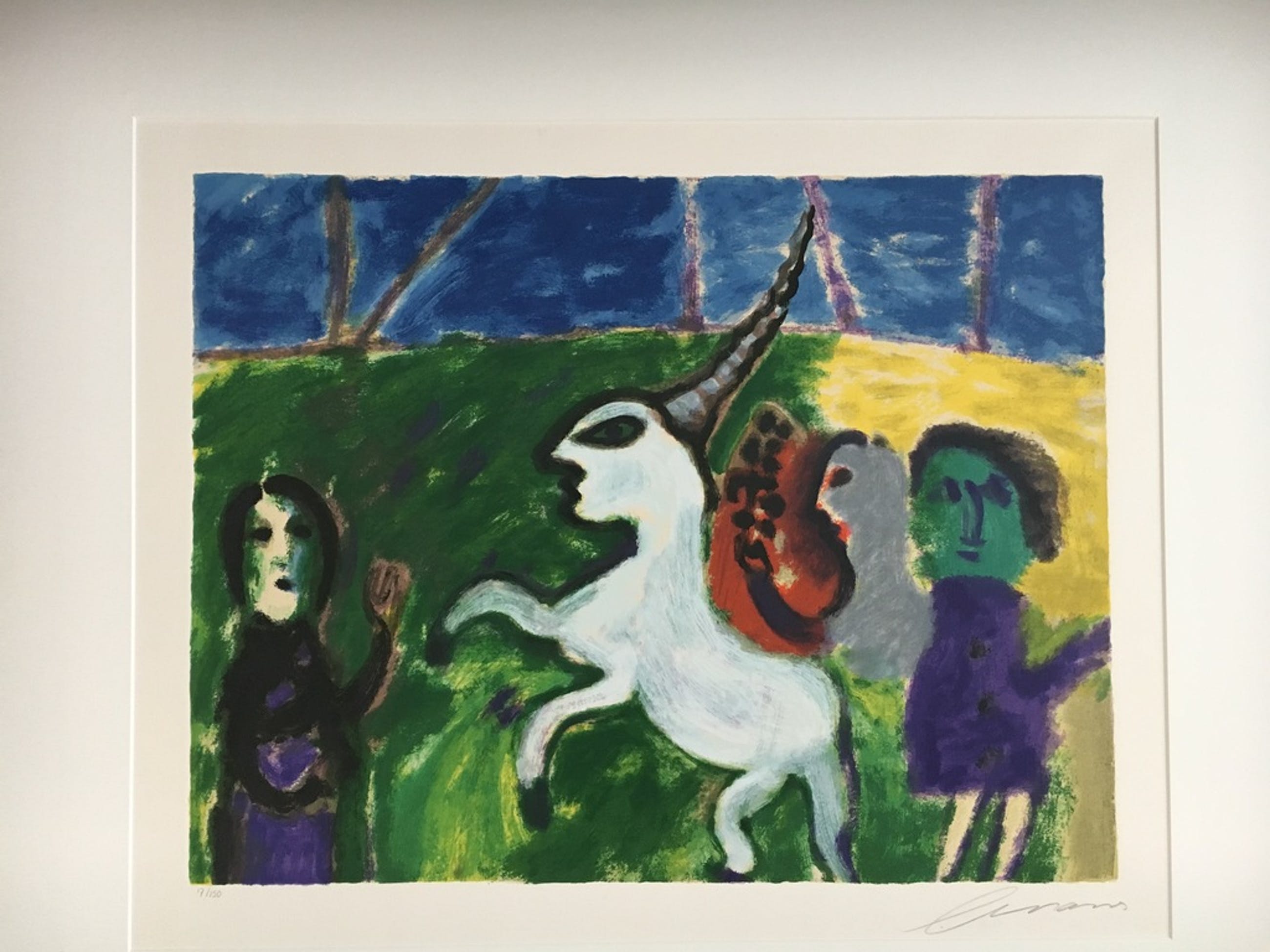 Zeefdruk "de eenhoorn", handgesigneerd met potlood, oplage 150ex 17/150