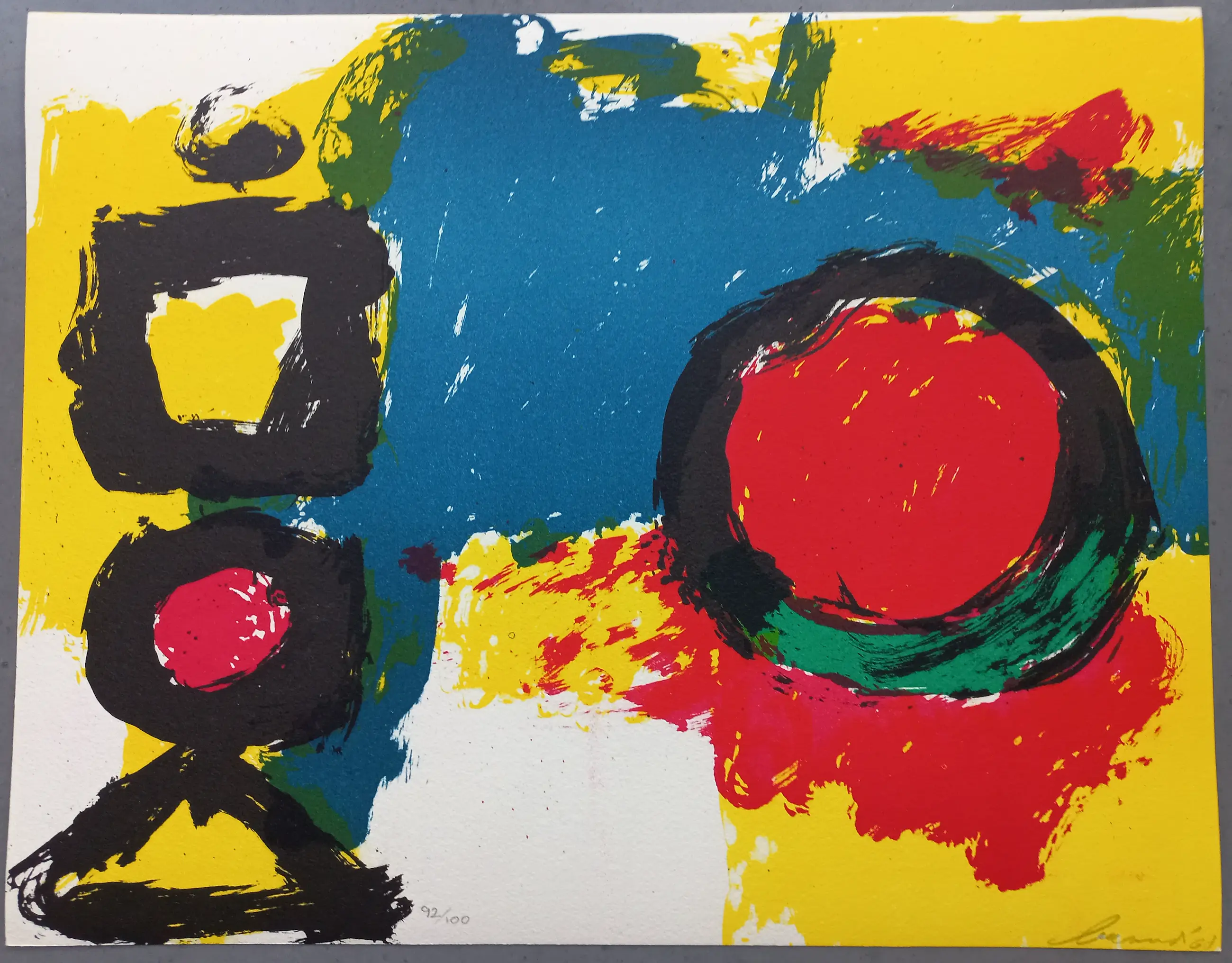 gedrukt in een oplage van 100 stuks. Rechts is het werk gesigneerd in potlood met Brands en in het midden 92/100. Papiermaat 30 x 38 cm (h x b). De litho is in prima conditie en is nooit ingelijst geweest.