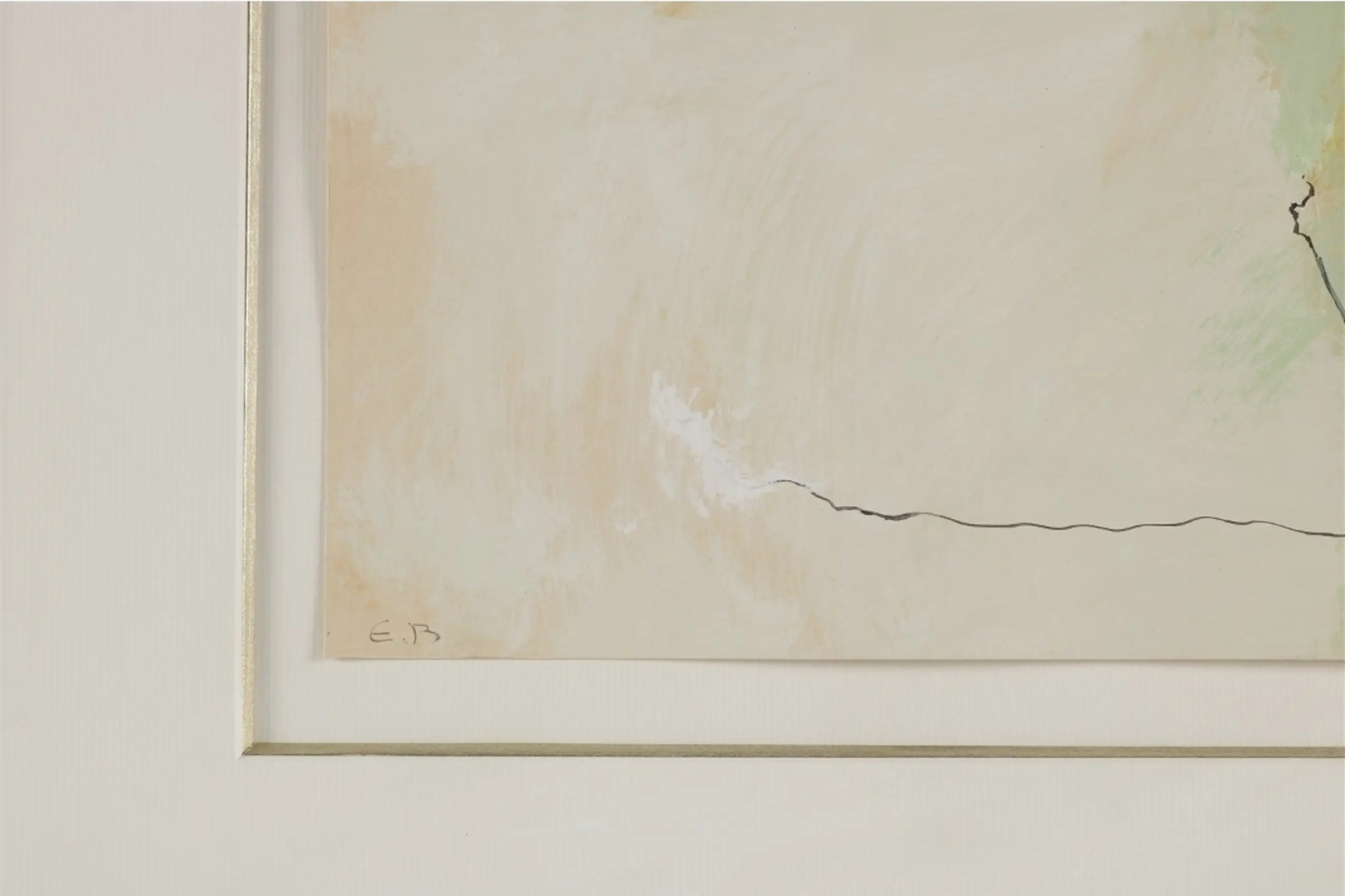 Signatuur: handgesigneerd met initialen linksonder Techniek: gouache op papier Afmetingen: 35 × 53 cm Herkomst: De Eland en de Zon Reden verkoop: inkrimping privécollectie