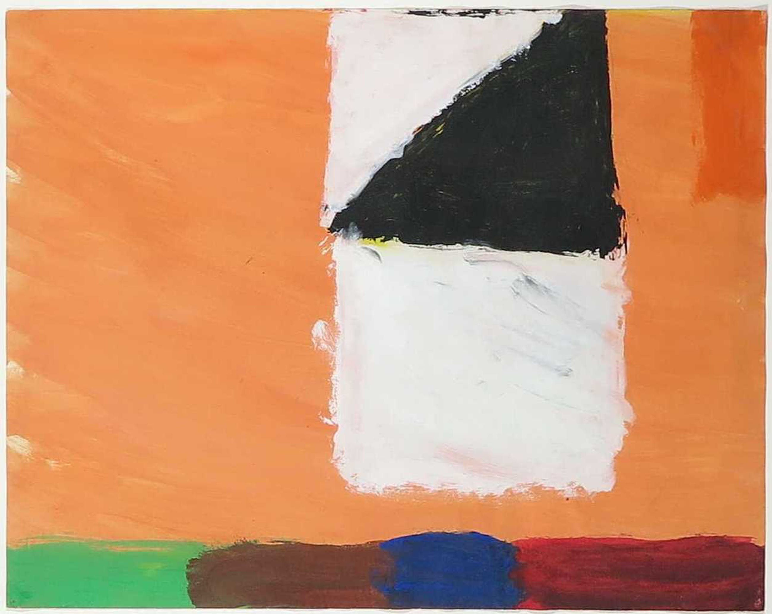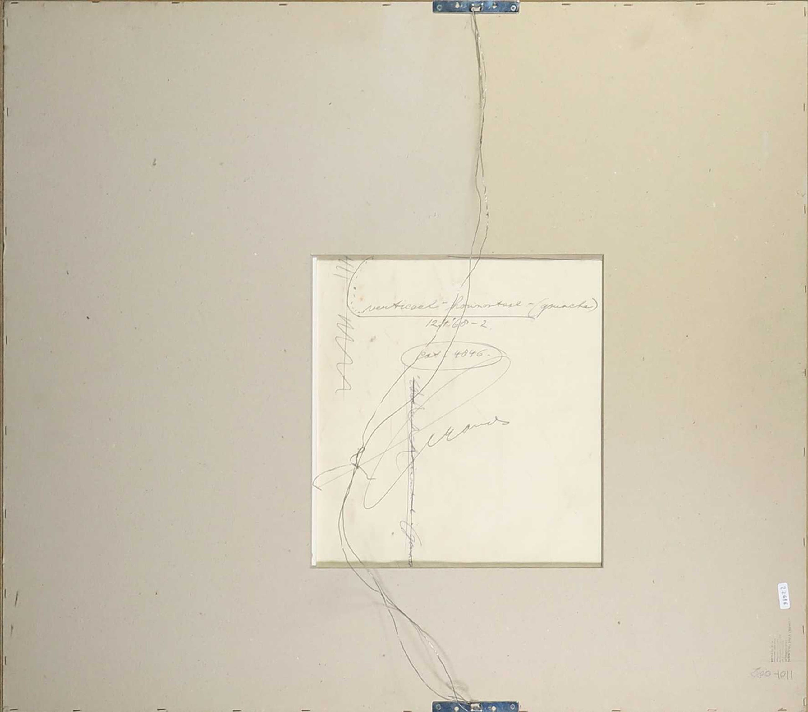 Het ophangsysteem is voor verticaal hangen gemonteerd. Gezien de plaatsing van het signatuur en de compositie, bieden wij het werk horizontaal aan.