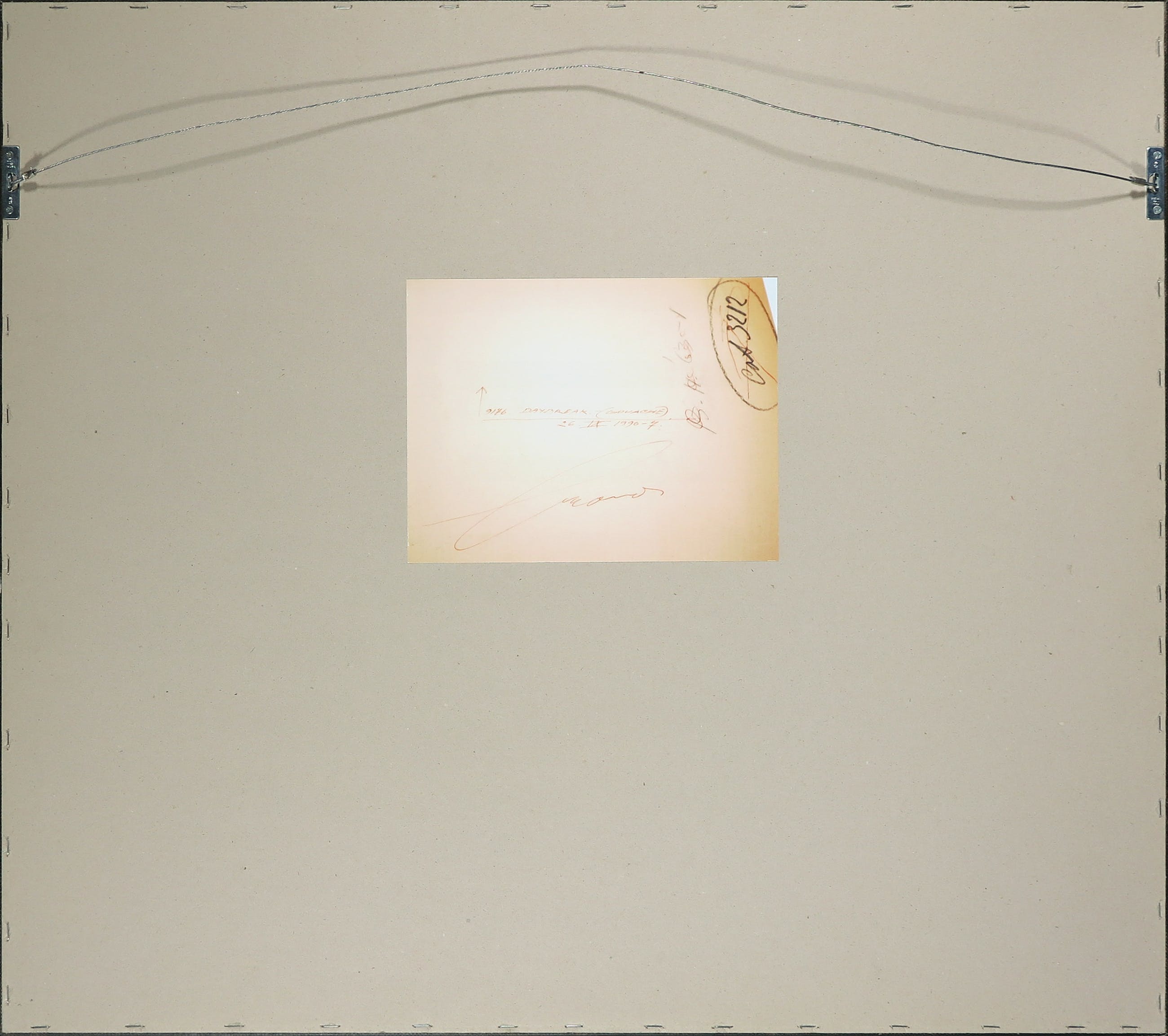 Op de achterzijde van de lijst een foto toegevoegd van de achterzijde van de gouache. De achterzijde van de lijst is dus niet voorzien van een venster.