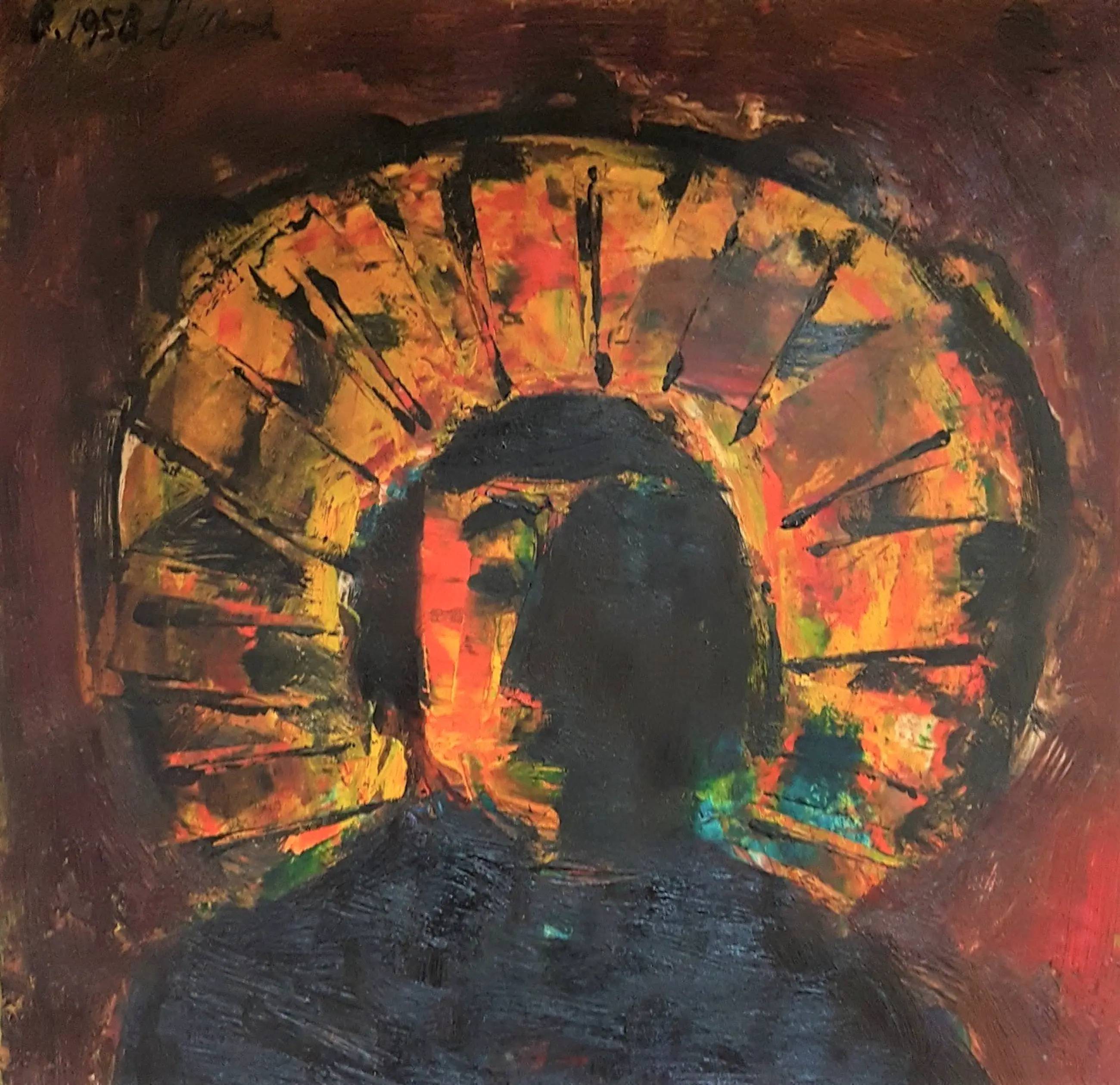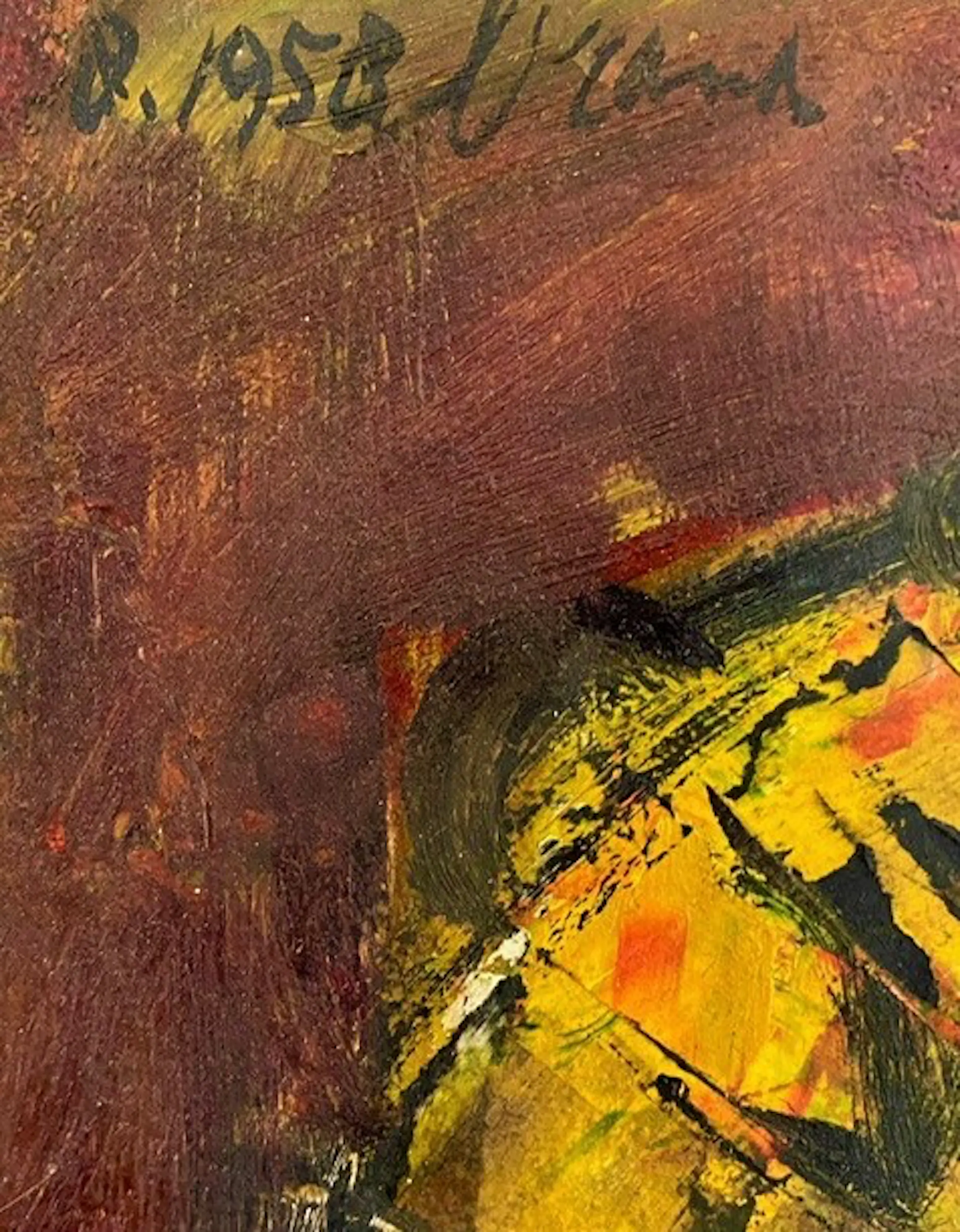 Het werk is op de voorkant (linksboven) gesigneerd en gedateerd, en nogmaals (twee keer) op de achterkant, waarbij Brands' eigen catalogusnummer is toegevoegd en een verduidelijking van de toegepaste techniek ("olieverf met retoucheermes") en datum ("1 September 1958-7").