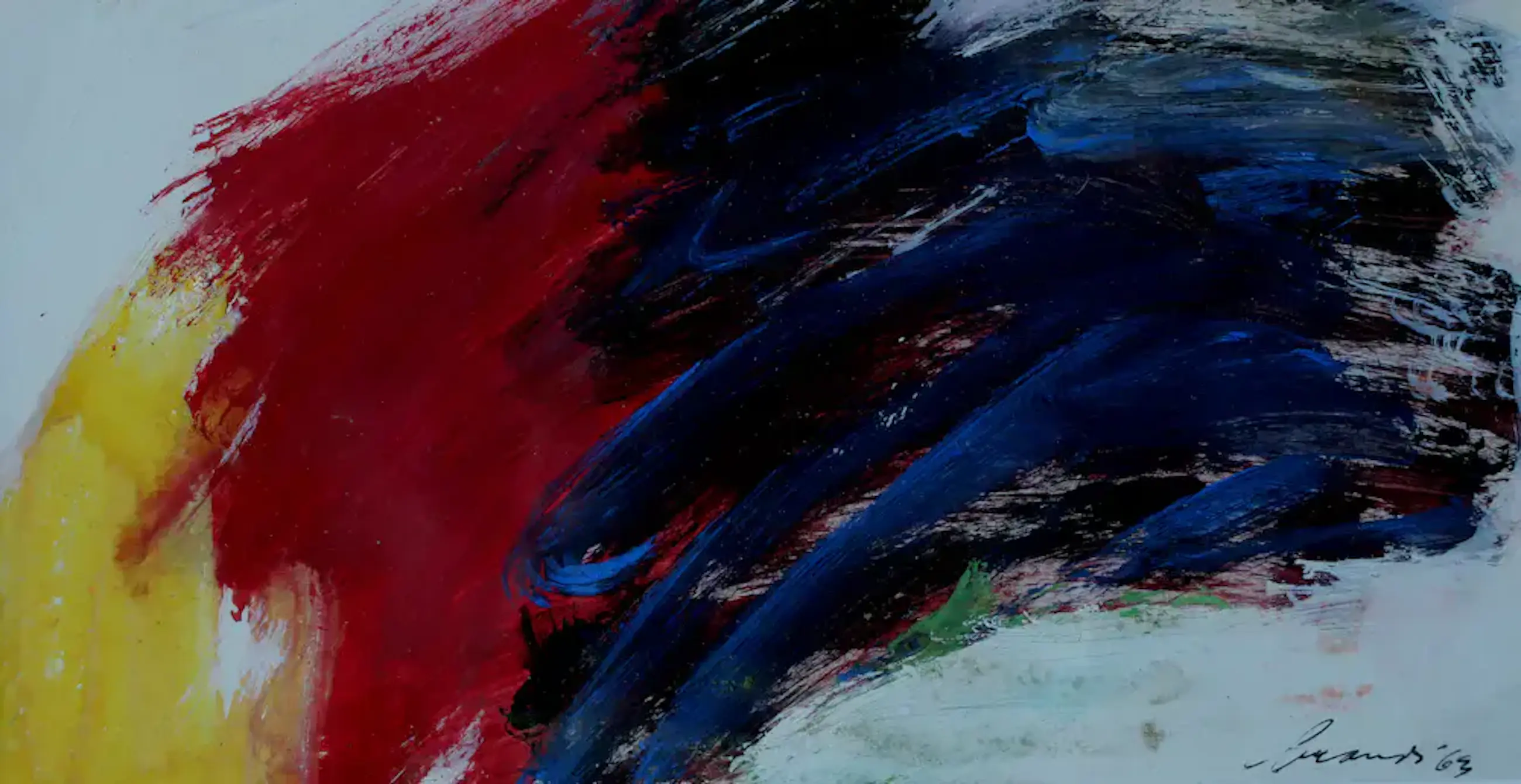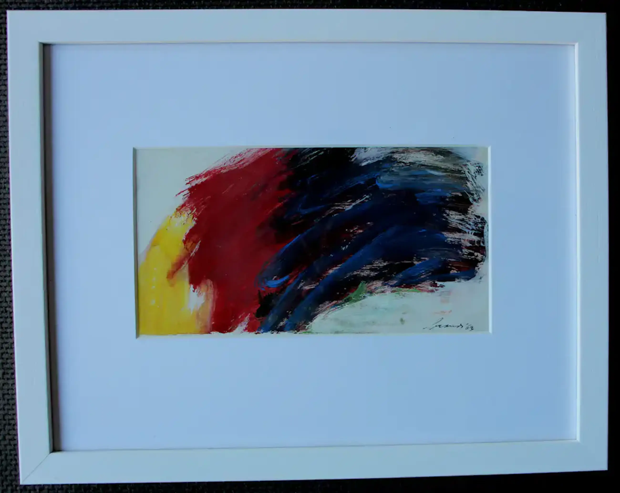 Ingelijste gouache van Eugène Brands in een nieuwe moderne lijst!. Zonder titel. Jaar: 1963. Afmetingen incl. lijst: H30 x b38cm. Afmetingen voorstelling: H12 x b23cm. Het werk is gesigneerd door de kunstenaar. De authenticiteit van het aangeboden werk wordt volledig gegarandeerd. Een certificaat van echtheid kan, op aanvraag, worden gemaild.