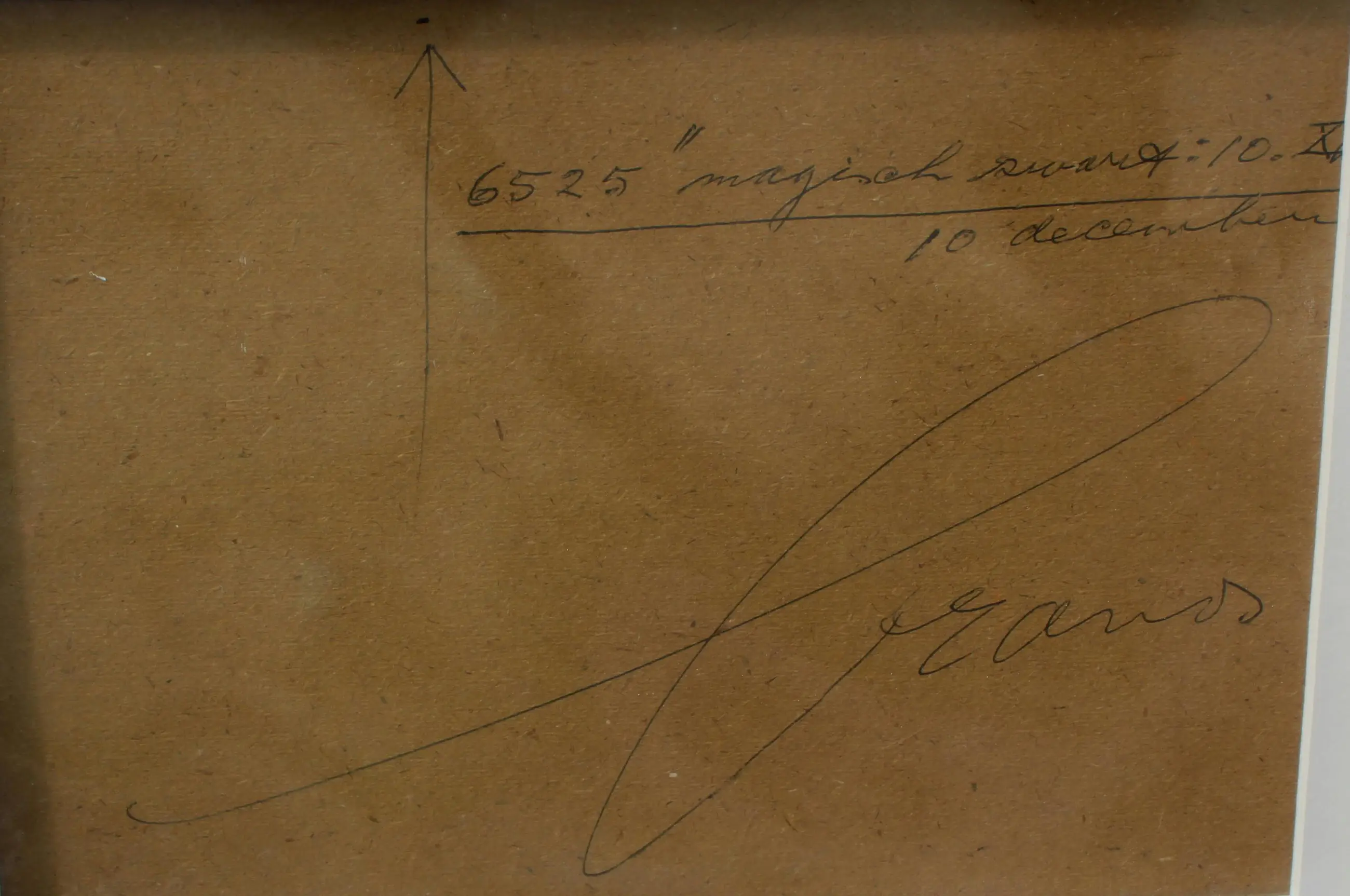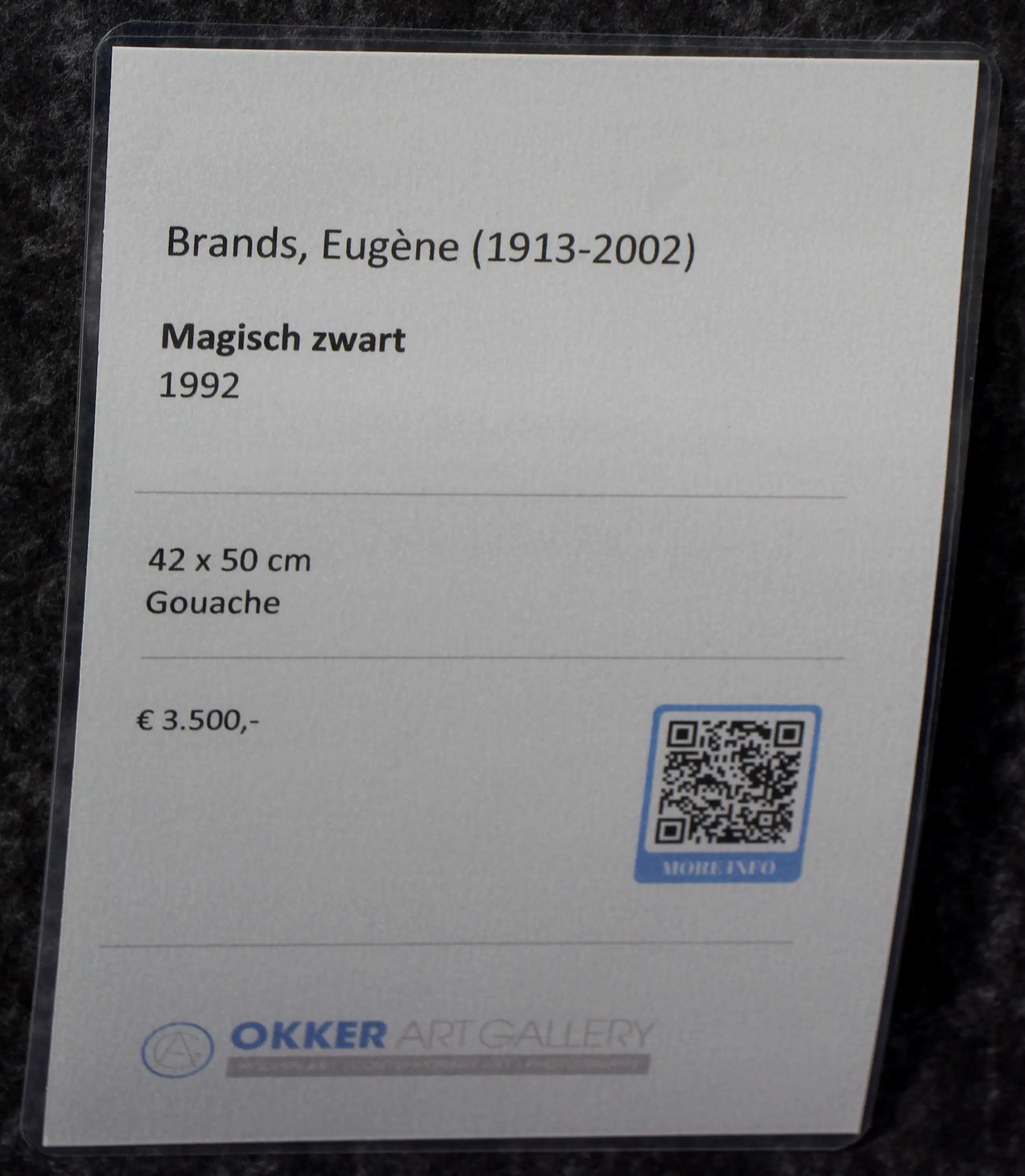 Ingelijste gouache van Eugène Brands. Titel: magisch zwart. Afmetingen incl lijst: H77 x b82cm. Afmetingen voorstelling: H42 x b50cm. Het werk is, achterop, gesigneerd door de kunstenaar. De authenticiteit van het aangeboden werk wordt volledig gegarandeerd. Een certificaat van echtheid kan, op aanvraag, worden gemaild. Herkomst: Galerie Tom Okker.