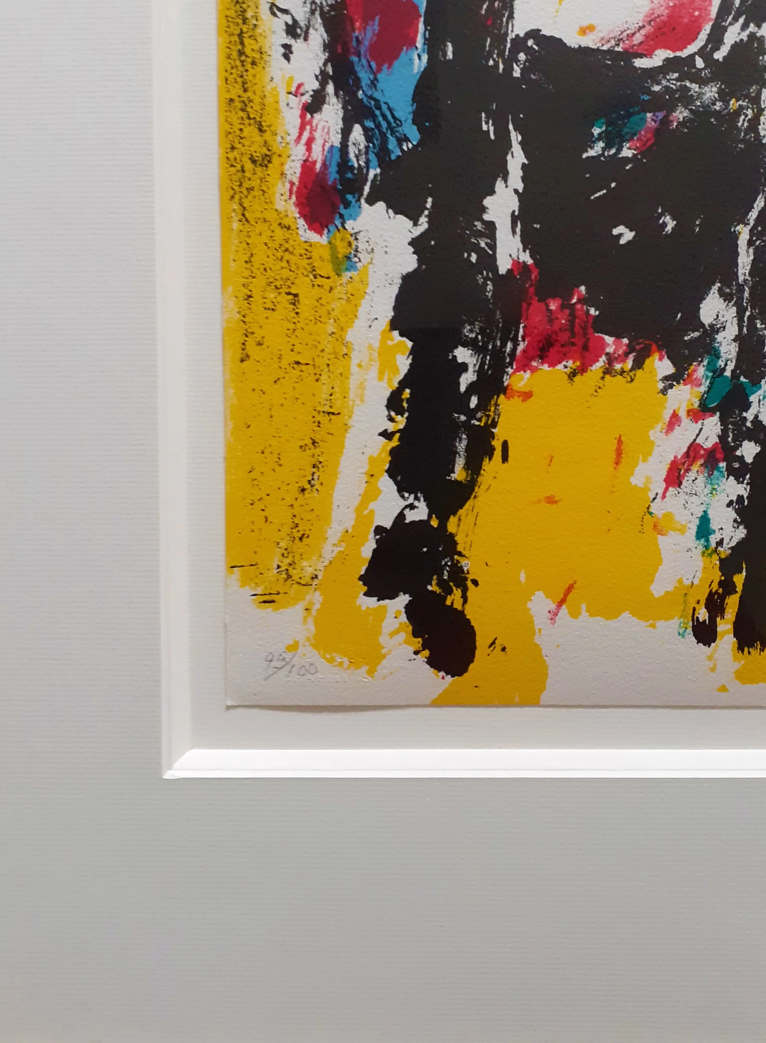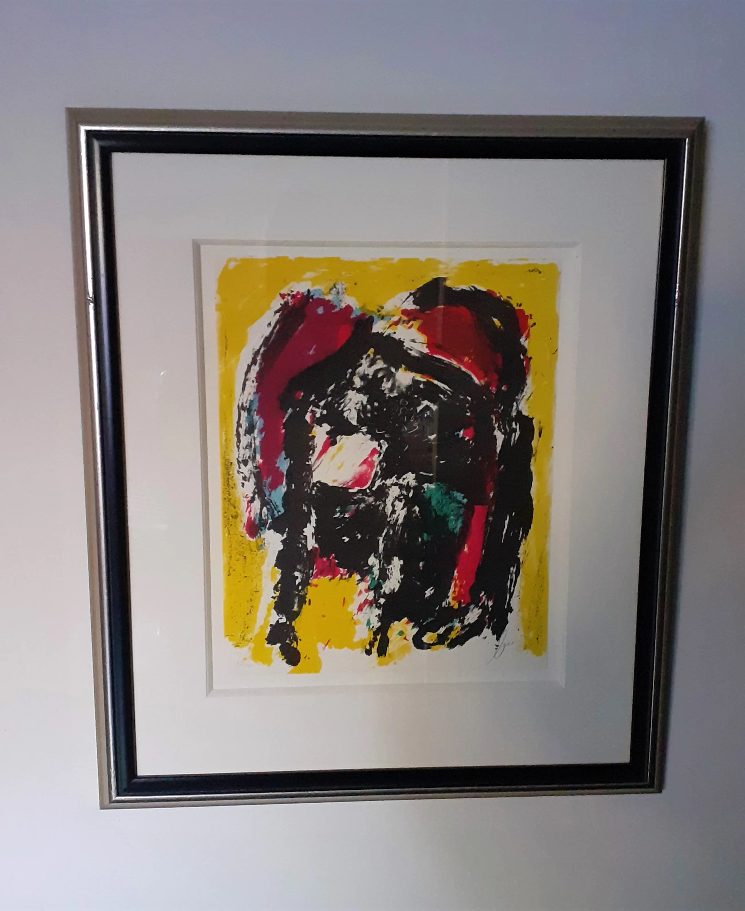 Kleurrijke litho van Eugene Brands Het werk is gesigneerd en genummerd 93/100 en professioneel luxueus ingelijst met prachtige lijst (zilverkleurig patin/zwart) en zuurvrije verdiepte passepartout(zilverkleurig patin/zwart). Kleuren zijn fantastisch!
