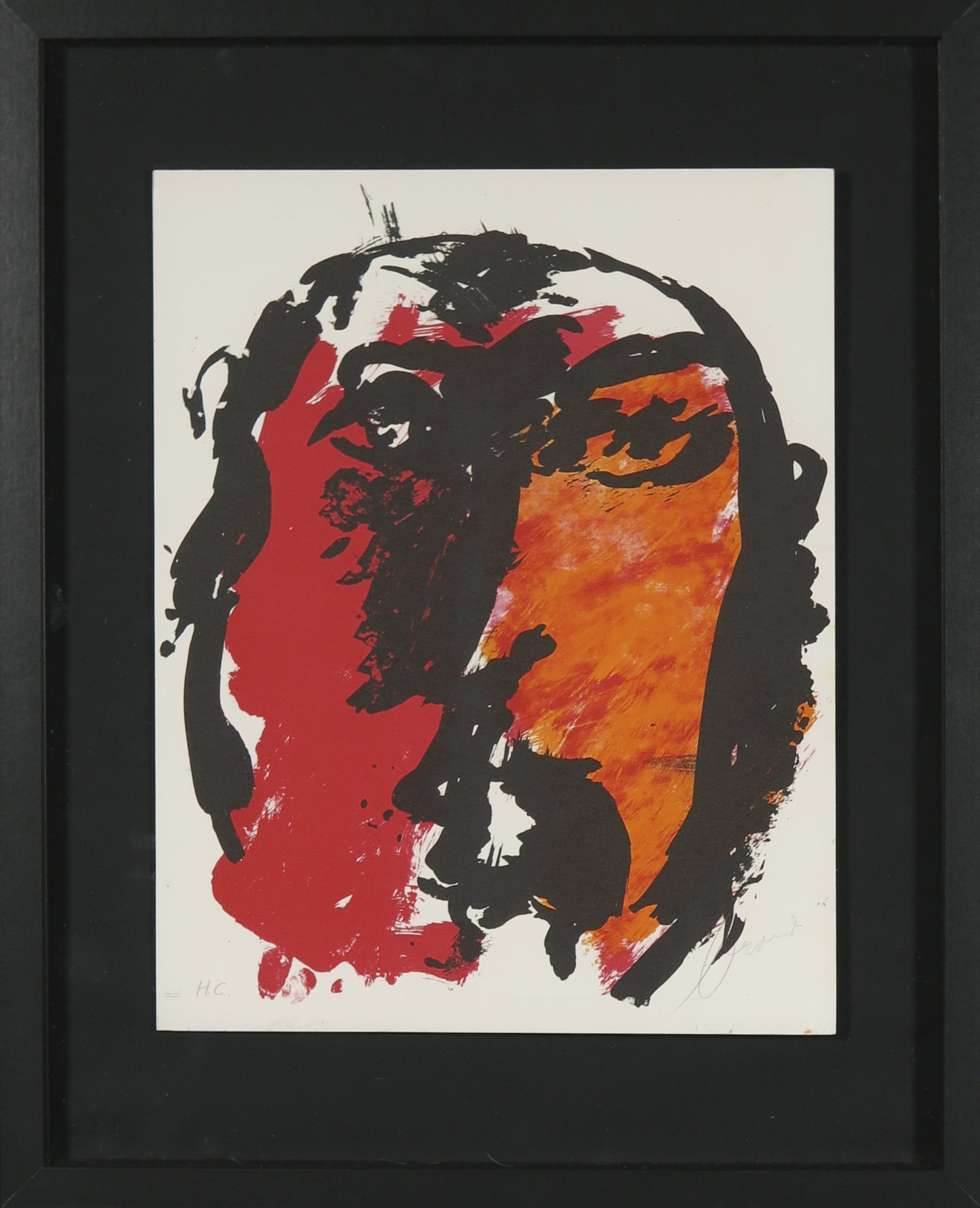 Zeldzame litho van Eugene Brands getiteld ‘Face’ uit 1968. Het werk maakt deel uit van een serie van 12 werken en is destijds gedrukt en uitgegeven door Court Graphics uit Copenhagen.