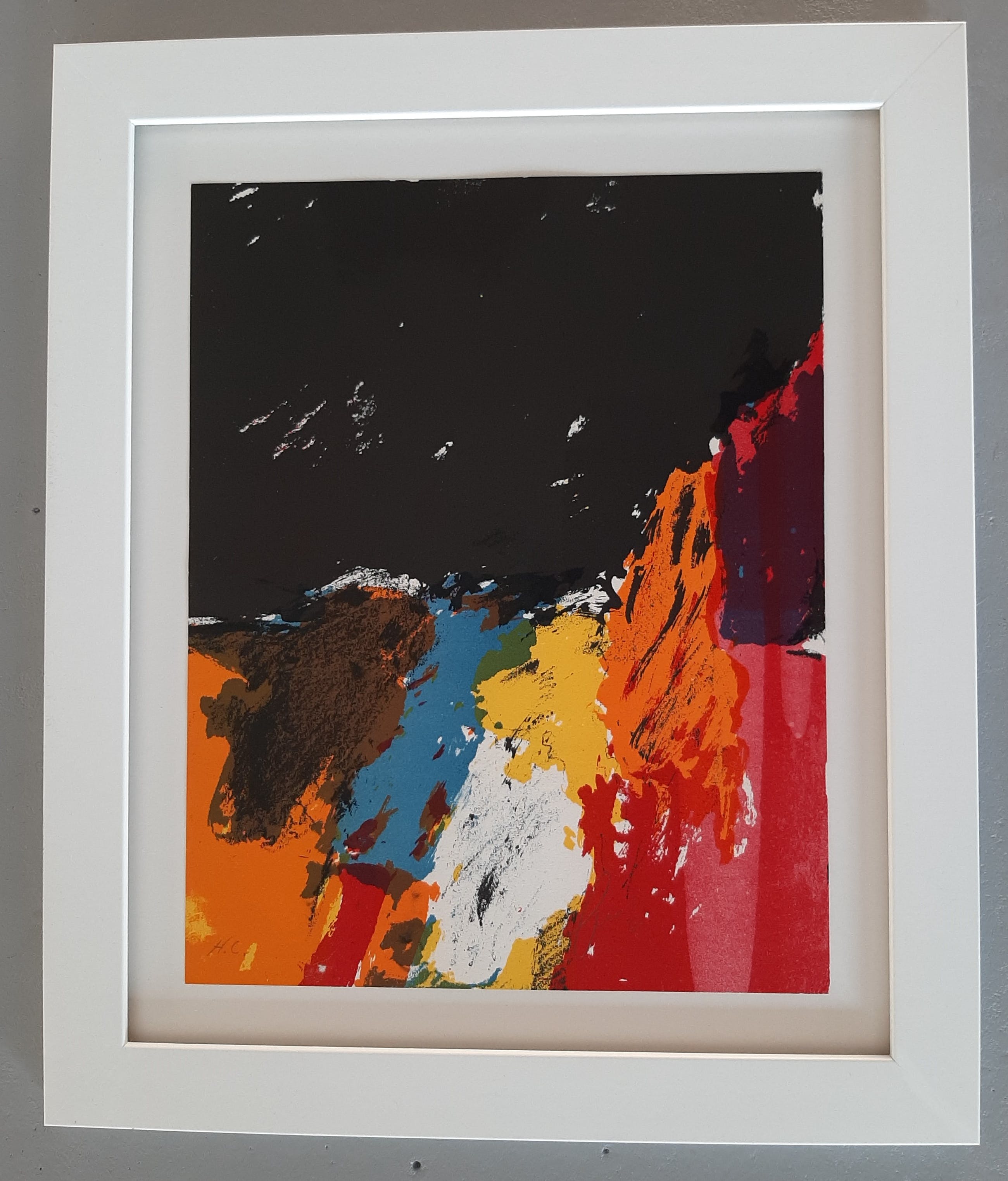 Eugene Brands. Litho, Streaming against black. Nieuwe houten lijst met museumglas.