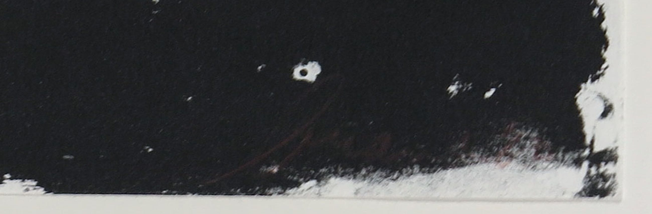 | Het werk is in zeer goede staat, maar achter het glas zitten meerdere vlekjes/plekjes/stofjes. | |