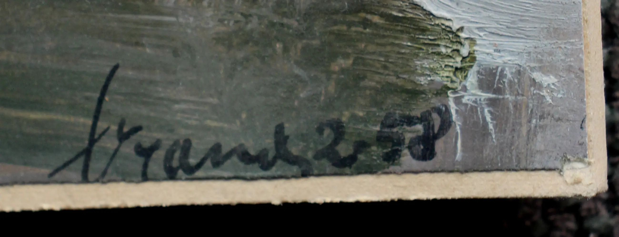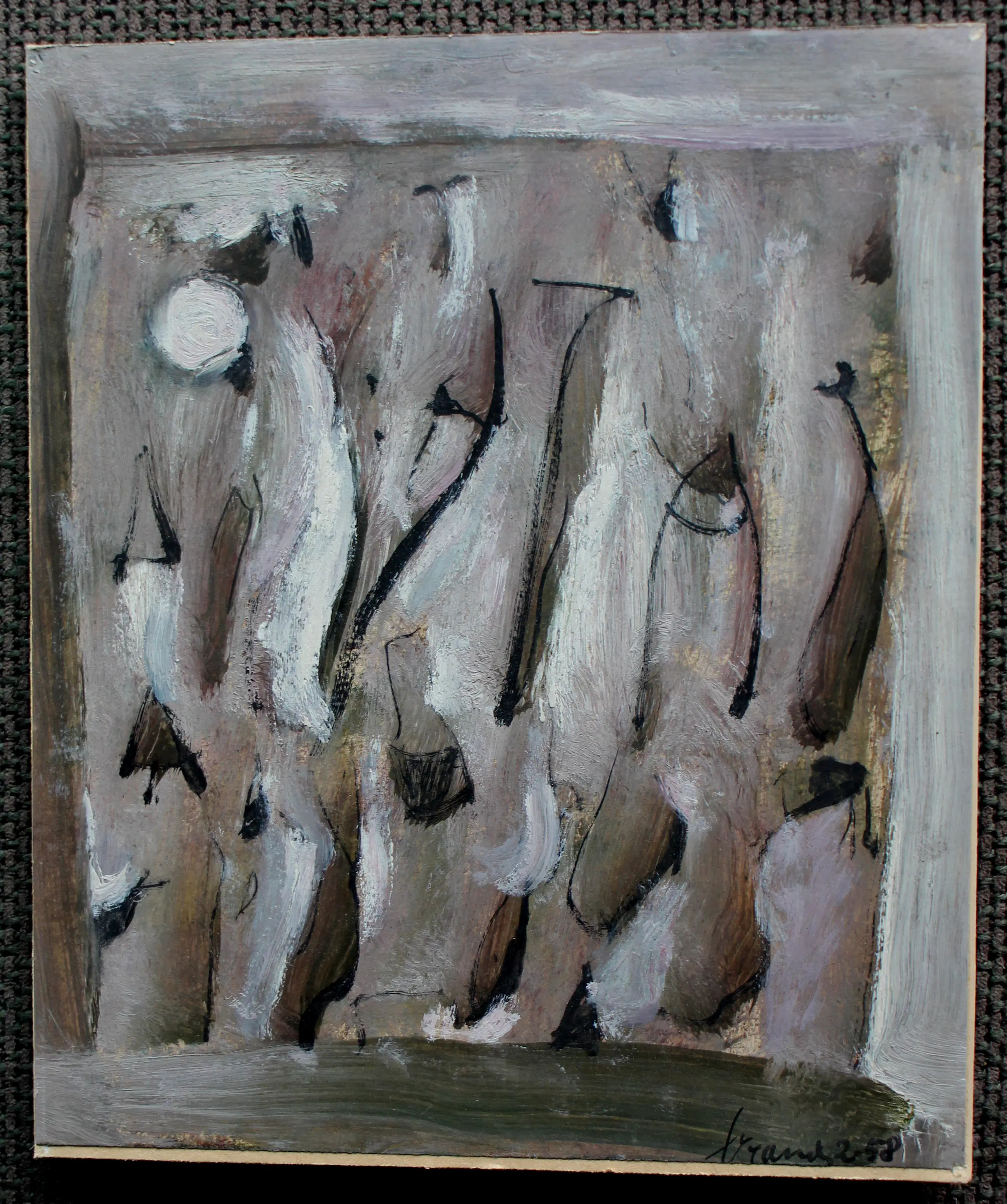 Olieverf op papier geplakt op board van Eugene Brands. Titel: "Moonlight". Jaar: 1958. Afmetingen incl lijst: H21 x b25cm. Het werk is rechts onderaan gesigneerd en gedateerd door de kunstenaar. Met de bekende punaisegaatjes in de hoeken. De authenticiteit van het aangeboden werk wordt volledig gegarandeerd. Een certificaat van echtheid kan, op aanvraag, worden gemaild.