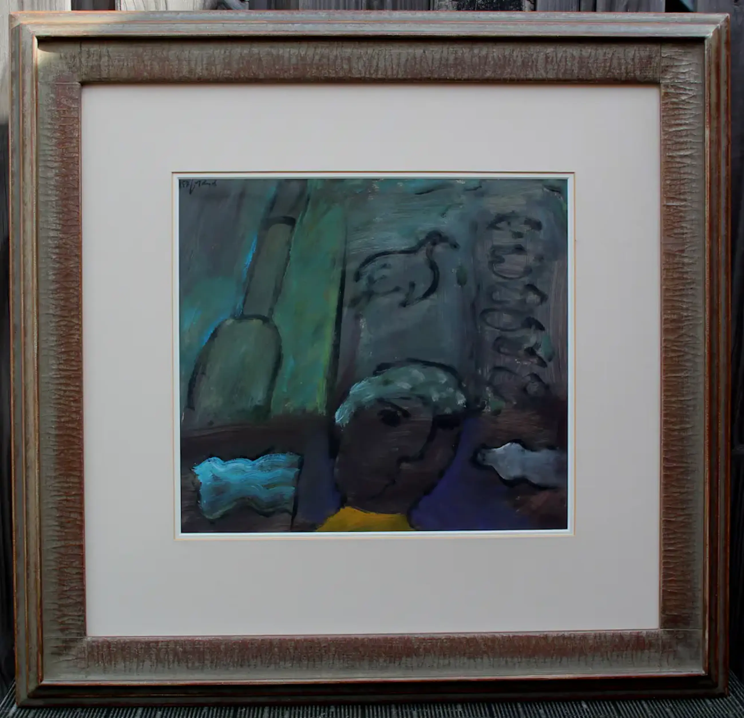 Ingelijste olieverf van Eugene Brands uit 1957. Voorstelling van een portret, met een vogel op de achtergrond. Het werk is links bovenin, gesigneerd en gedateerd door de kunstenaar. De authenticiteit van het aangeboden werk wordt volledig gegarandeerd. Een certificaat van echtheid kan, op aanvraag, worden gemaild.