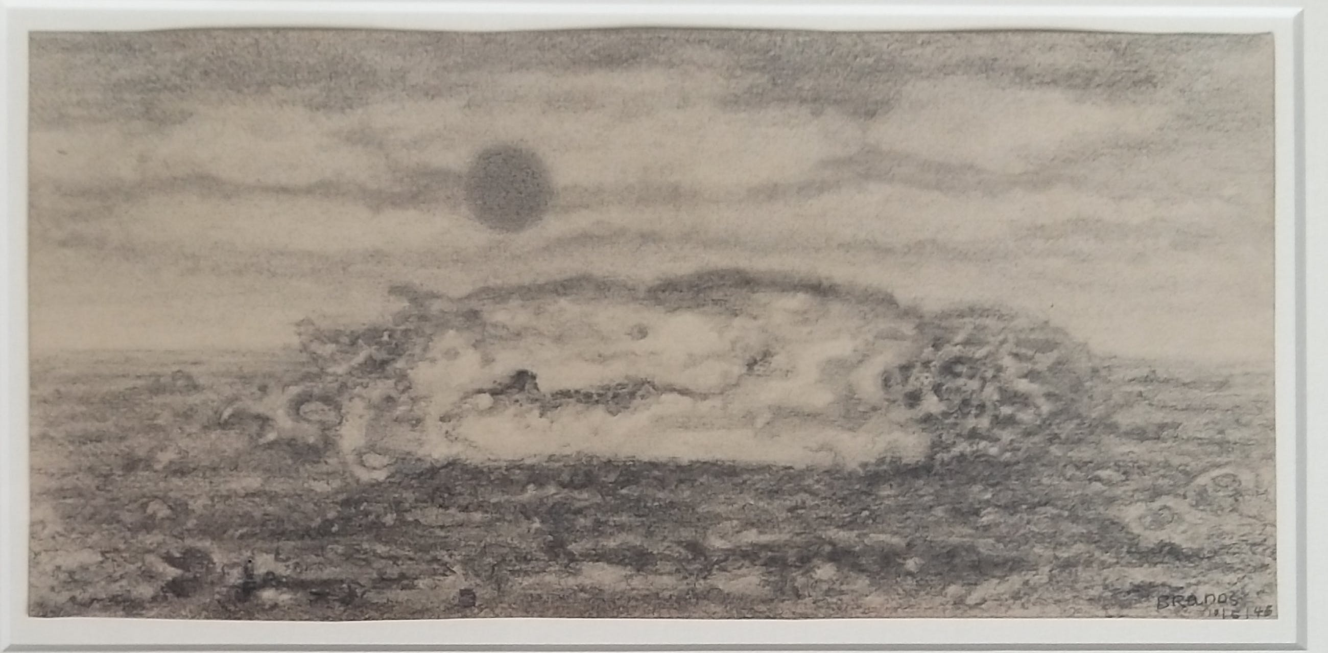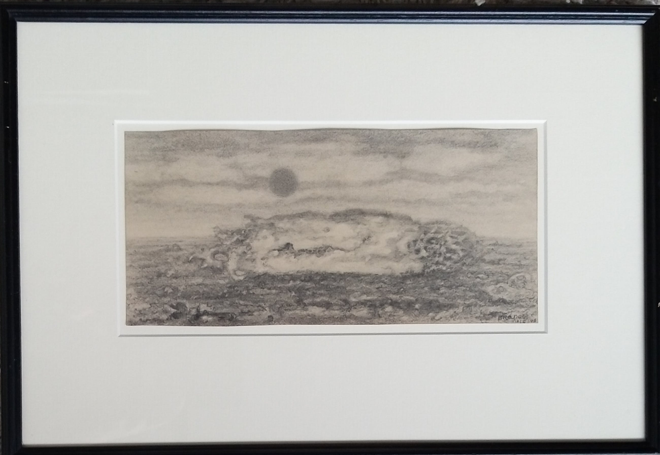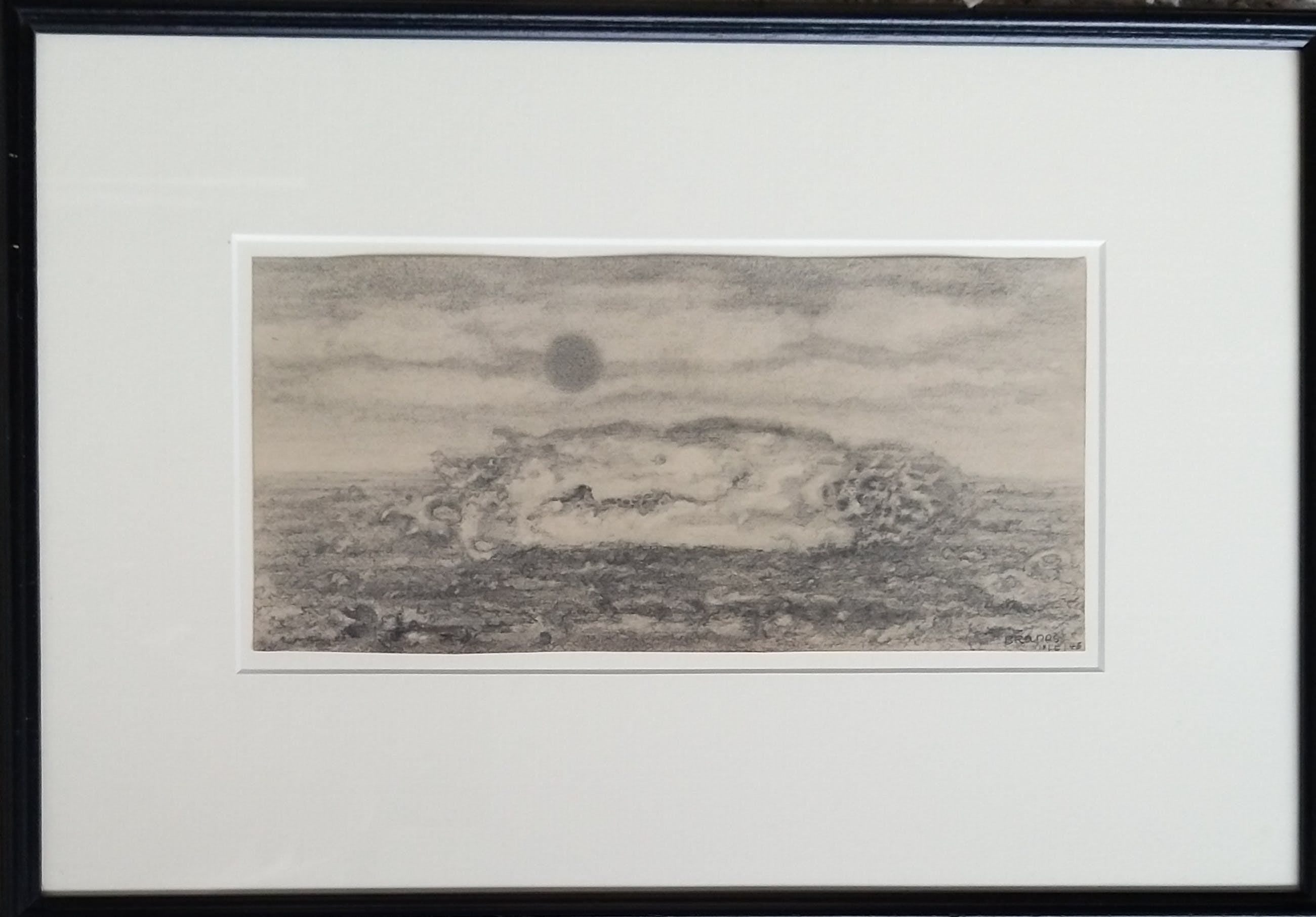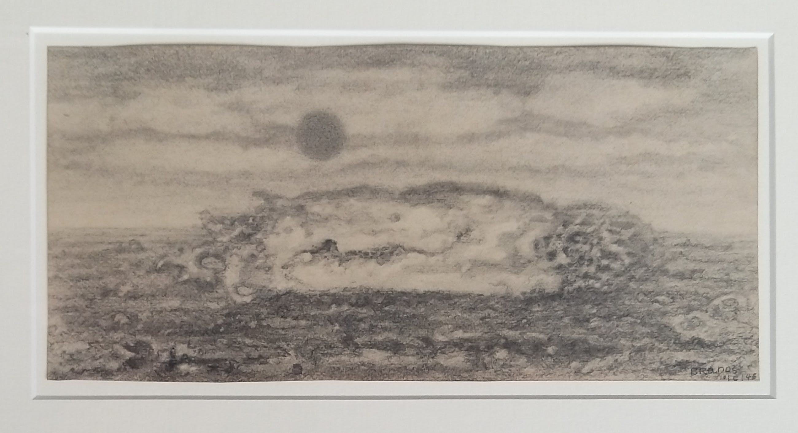 Prachtige sur-realistische voorstelling met ondergaande van Eugene Brands. Kenmerkend van Brands uit de periode 1940 - 1946